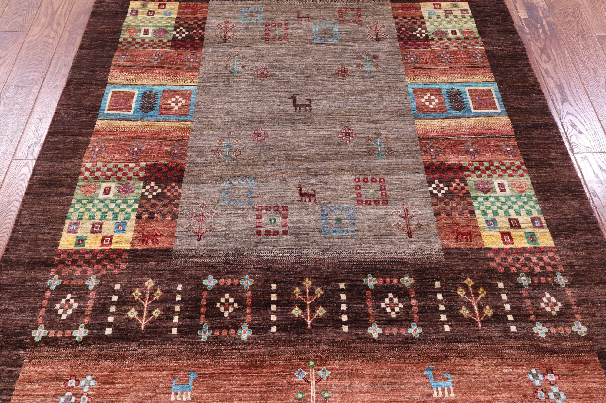 Persian Gabbeh Tribal Handmade Wool Rug 5' 6" X 8' 1" - Q17731 is backordered and will ship as soon as it is back in stock.