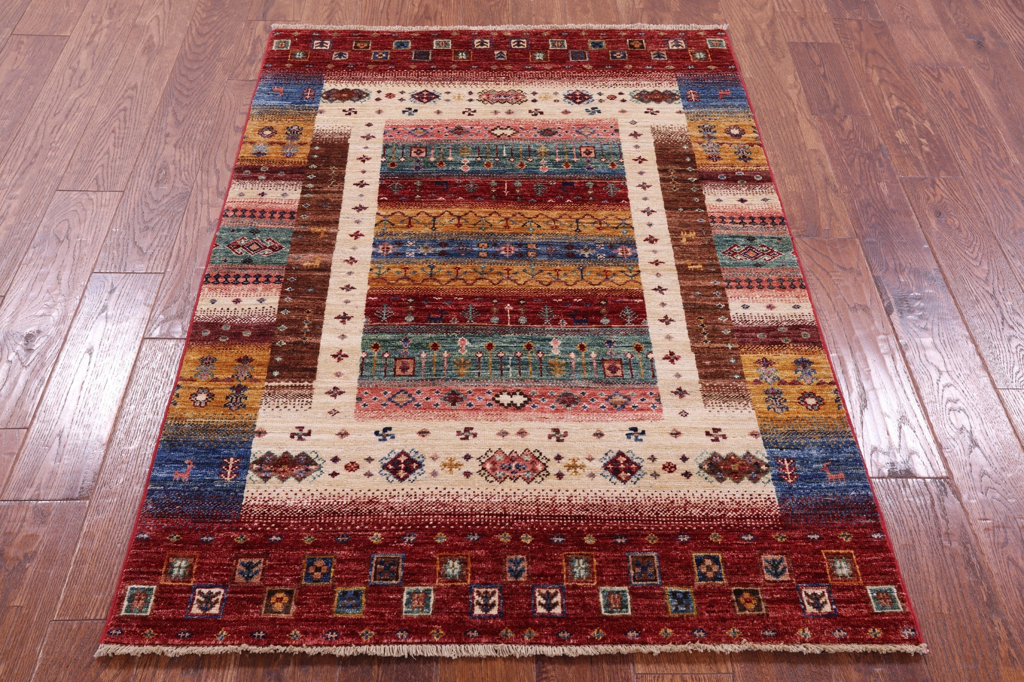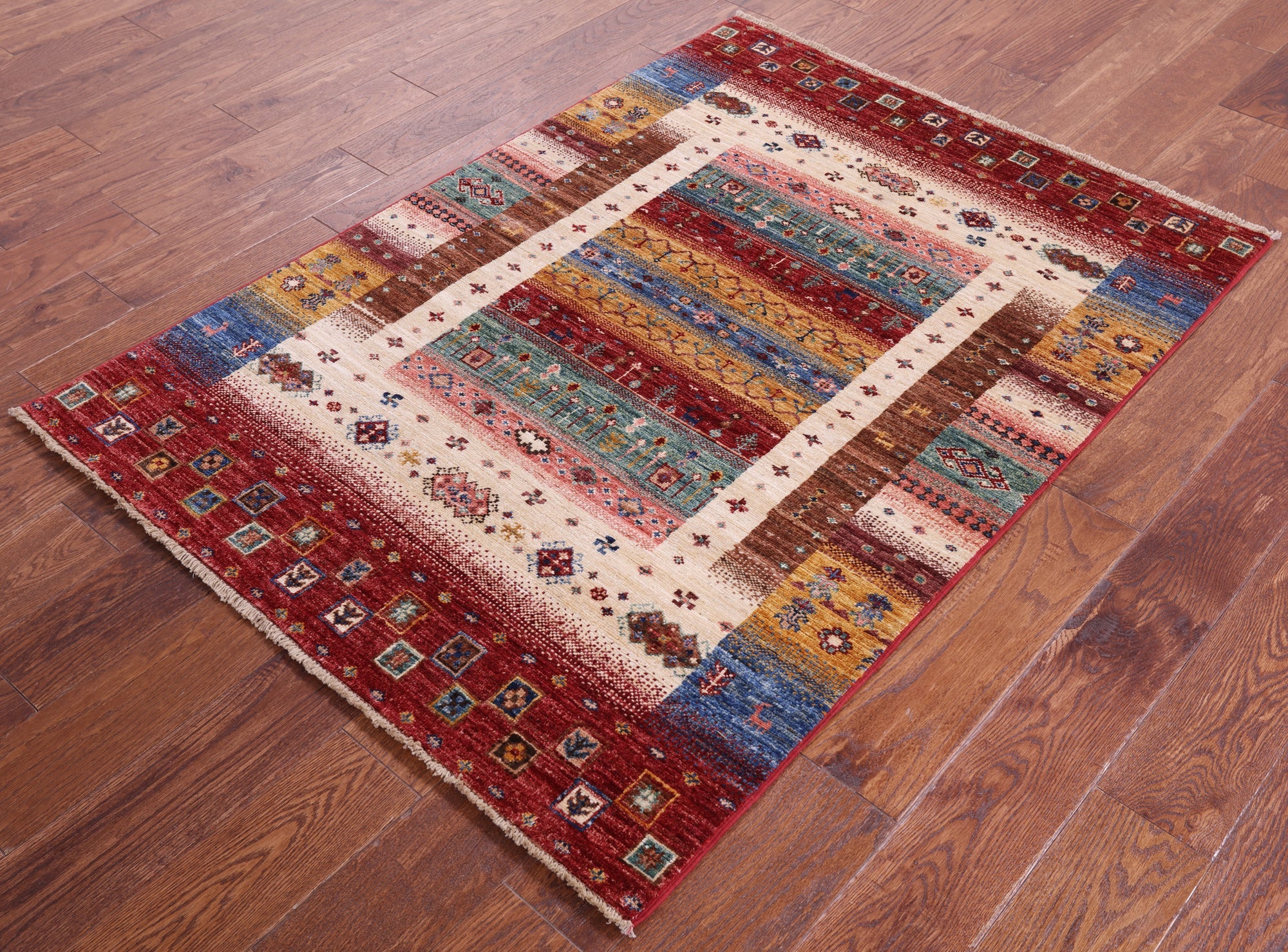 3' 7" X 4' 11" Persian Gabbeh Tribal Handmade Wool Rug - Q18340 is backordered and will ship as soon as it is back in stock.