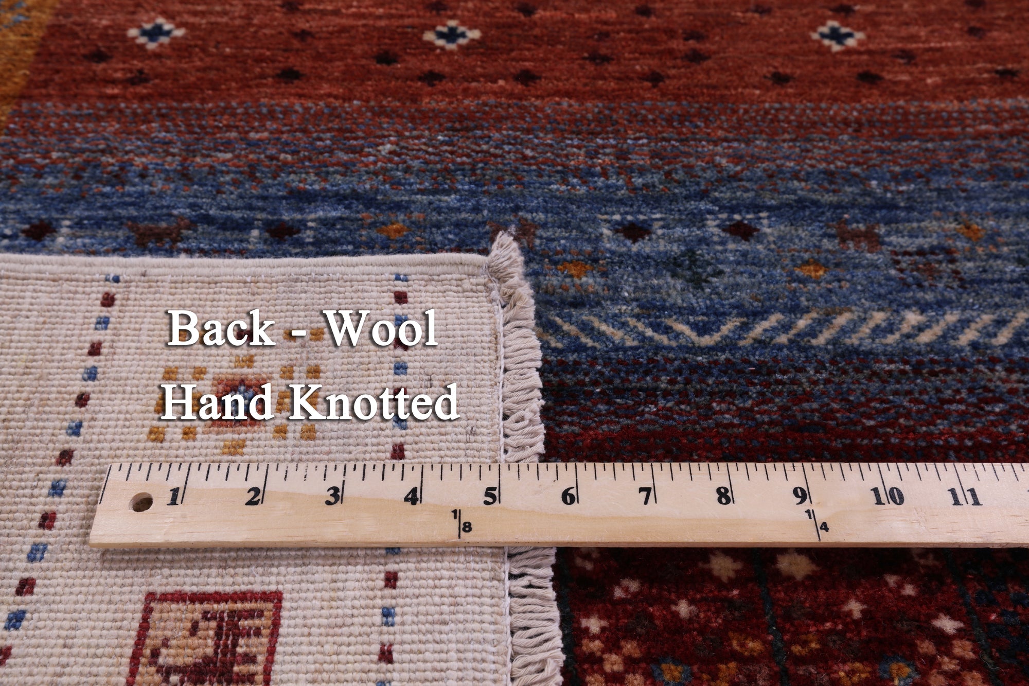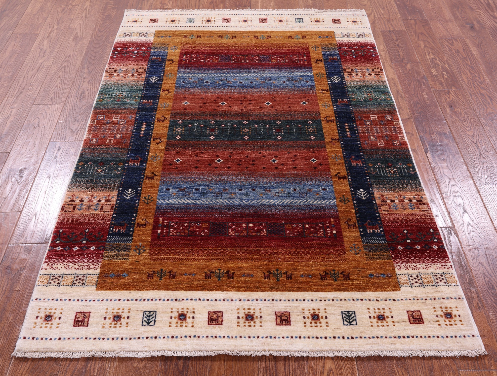 Gabbeh rugs are nothing short of simplistic and tribal, with designs consisting of primarily geometric shapes, animals, and plants. All done in a simplified way and based on the nomadic observation. Commonly brightly colored, these rugs are fun and beautiful and will add a warm touch to any home.