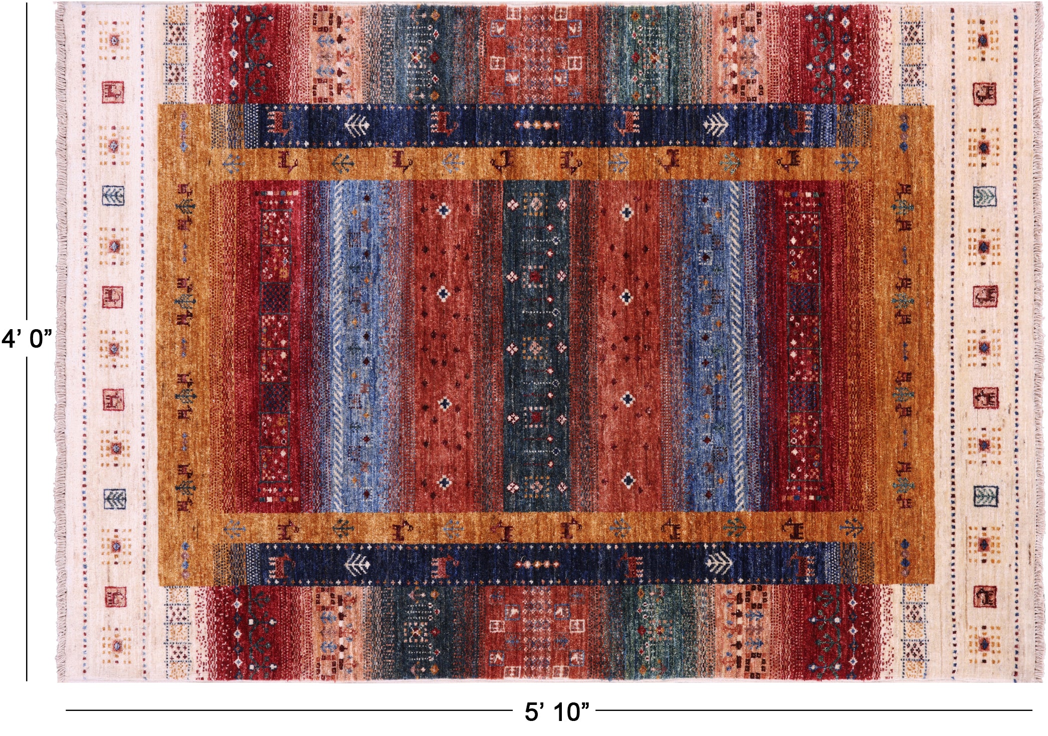 4' 0" X 5' 10" Persian Gabbeh Tribal Handmade Wool Rug - Q18350