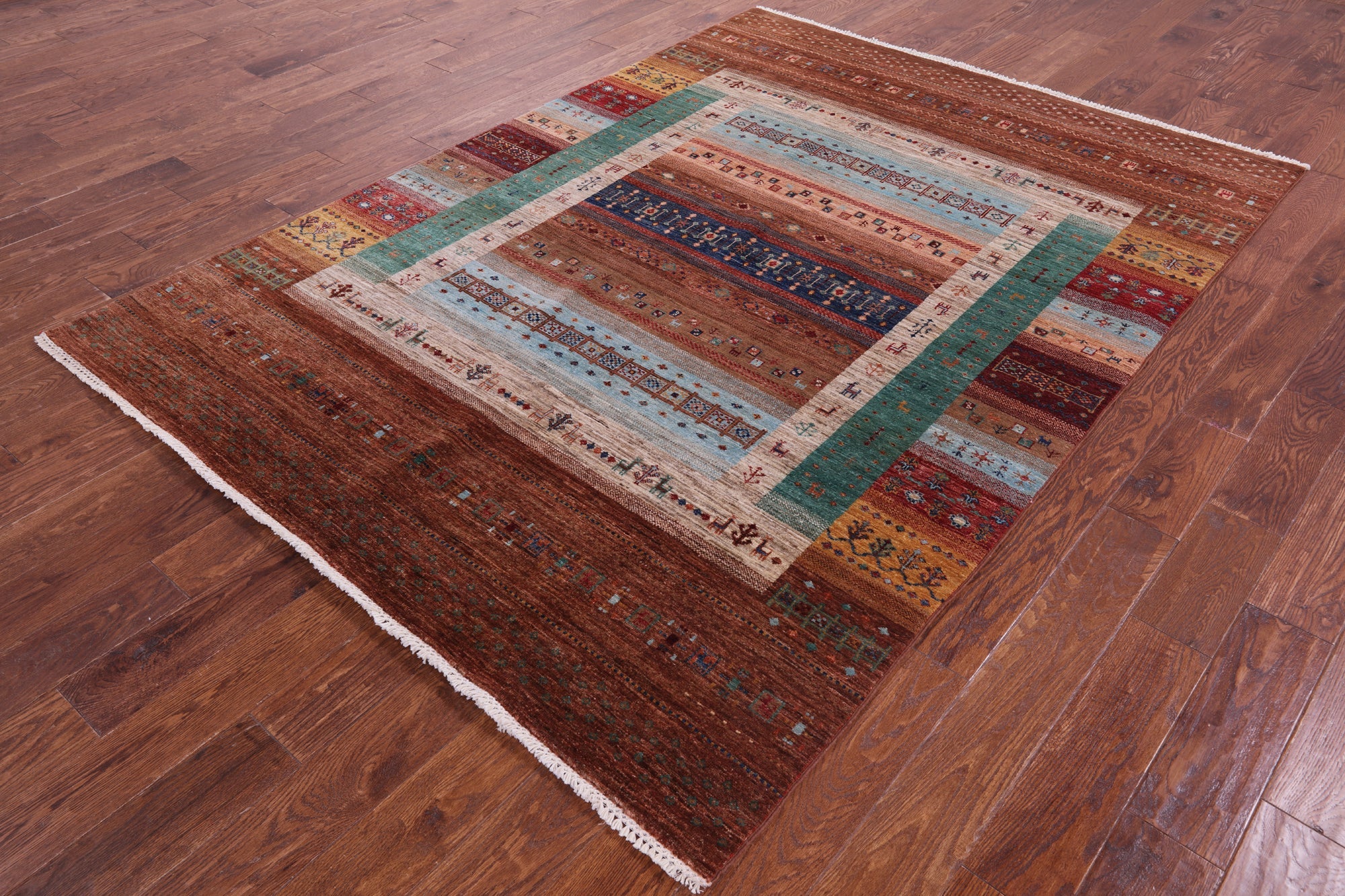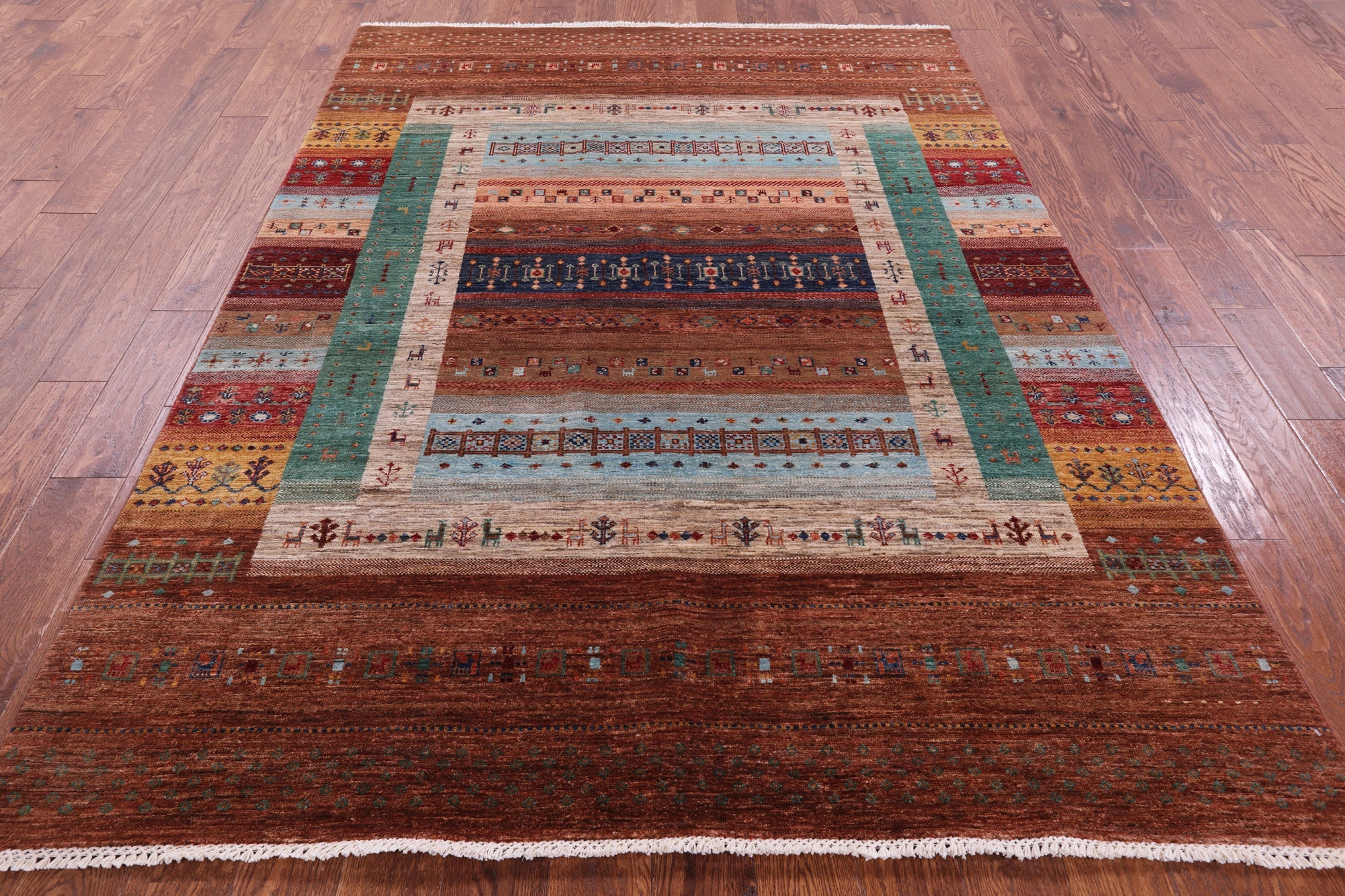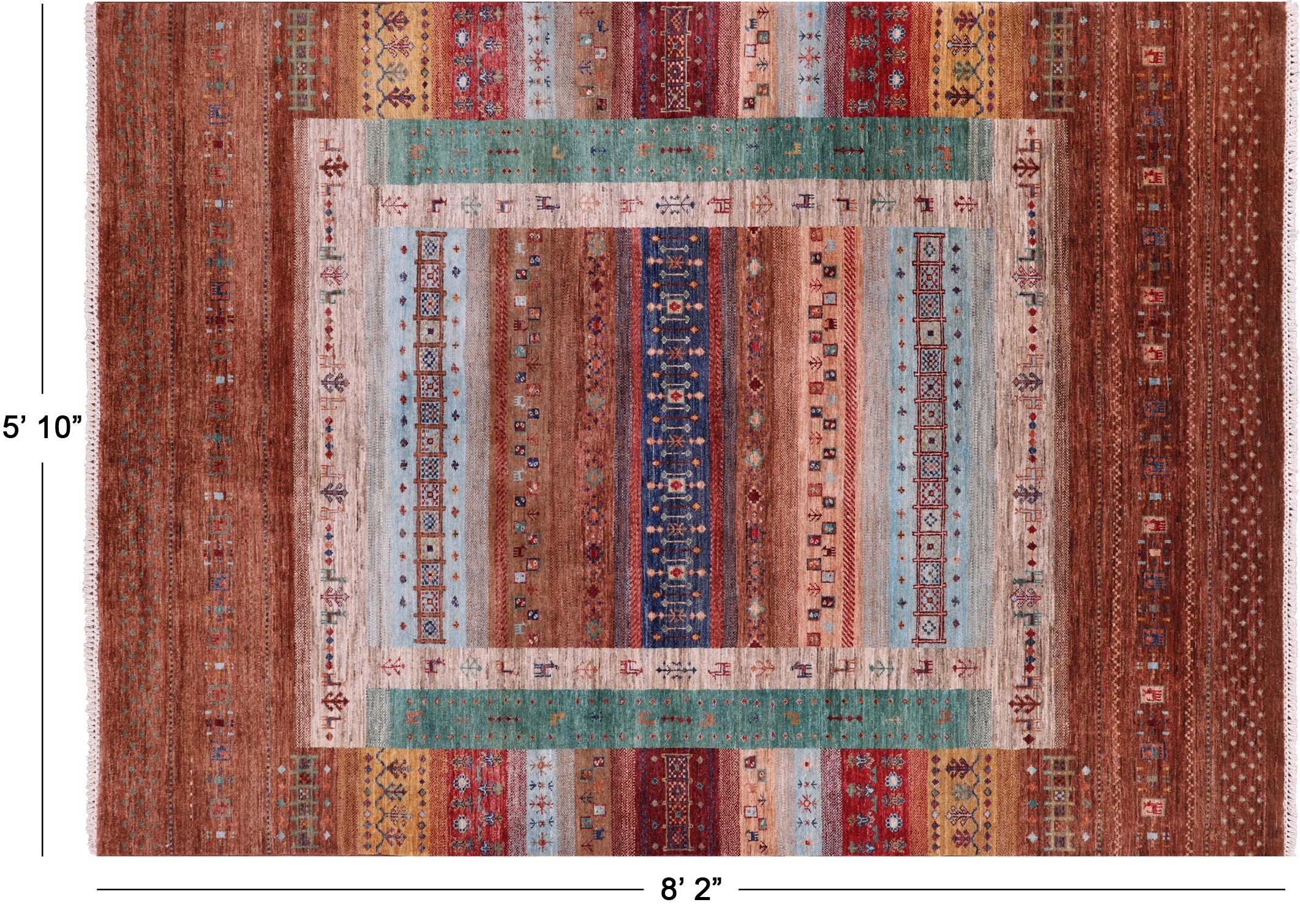 Persian Gabbeh Tribal Handmade Wool Rug 5' 10" X 8' 2" - Q18718