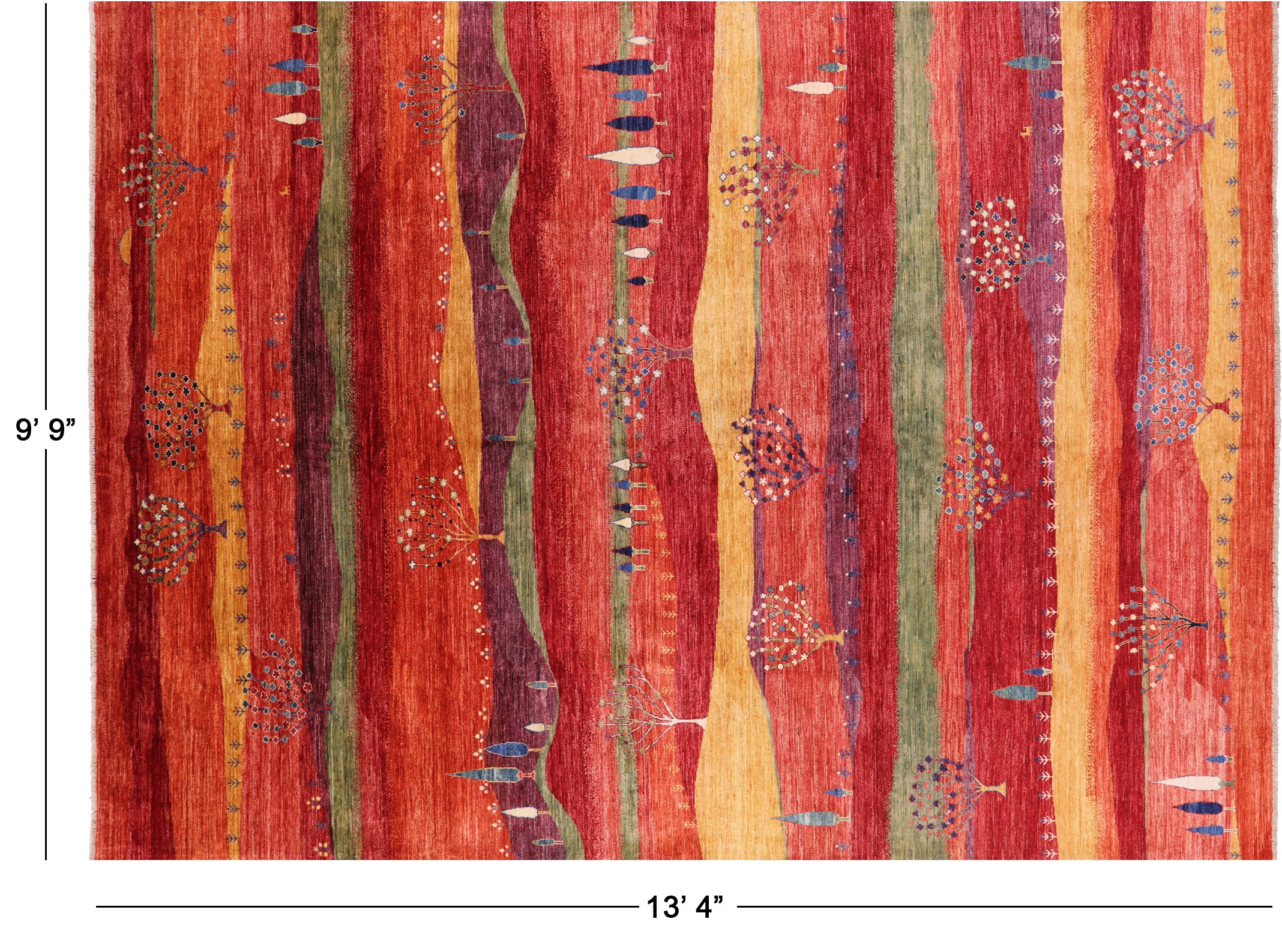 Persian Gabbeh Tribal Handmade Wool Rug 9' 9" X 13' 4" - Q20440