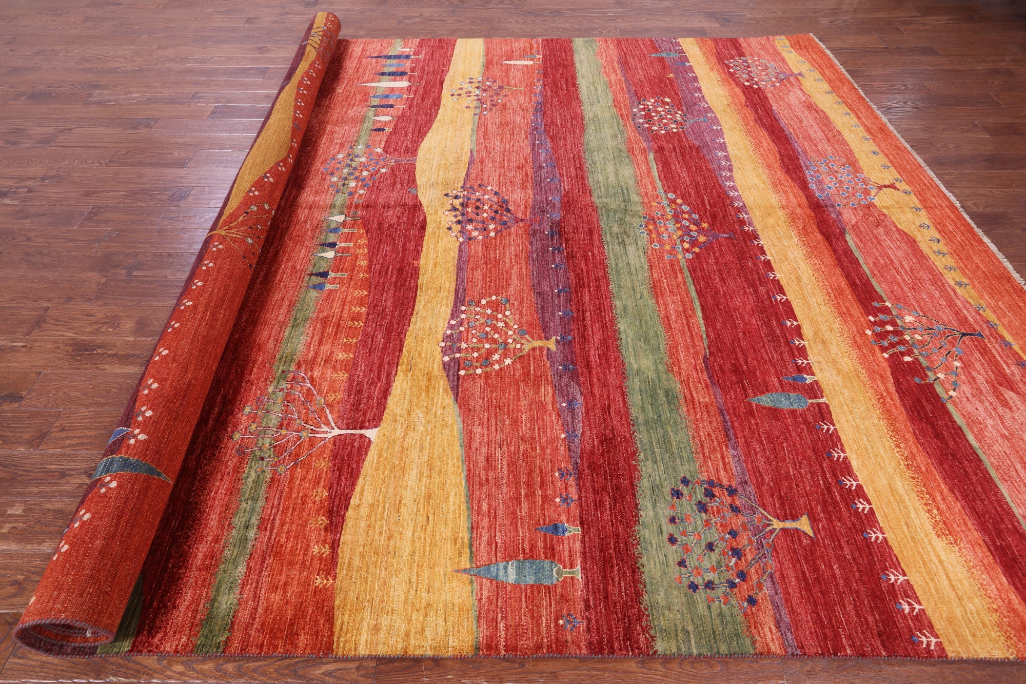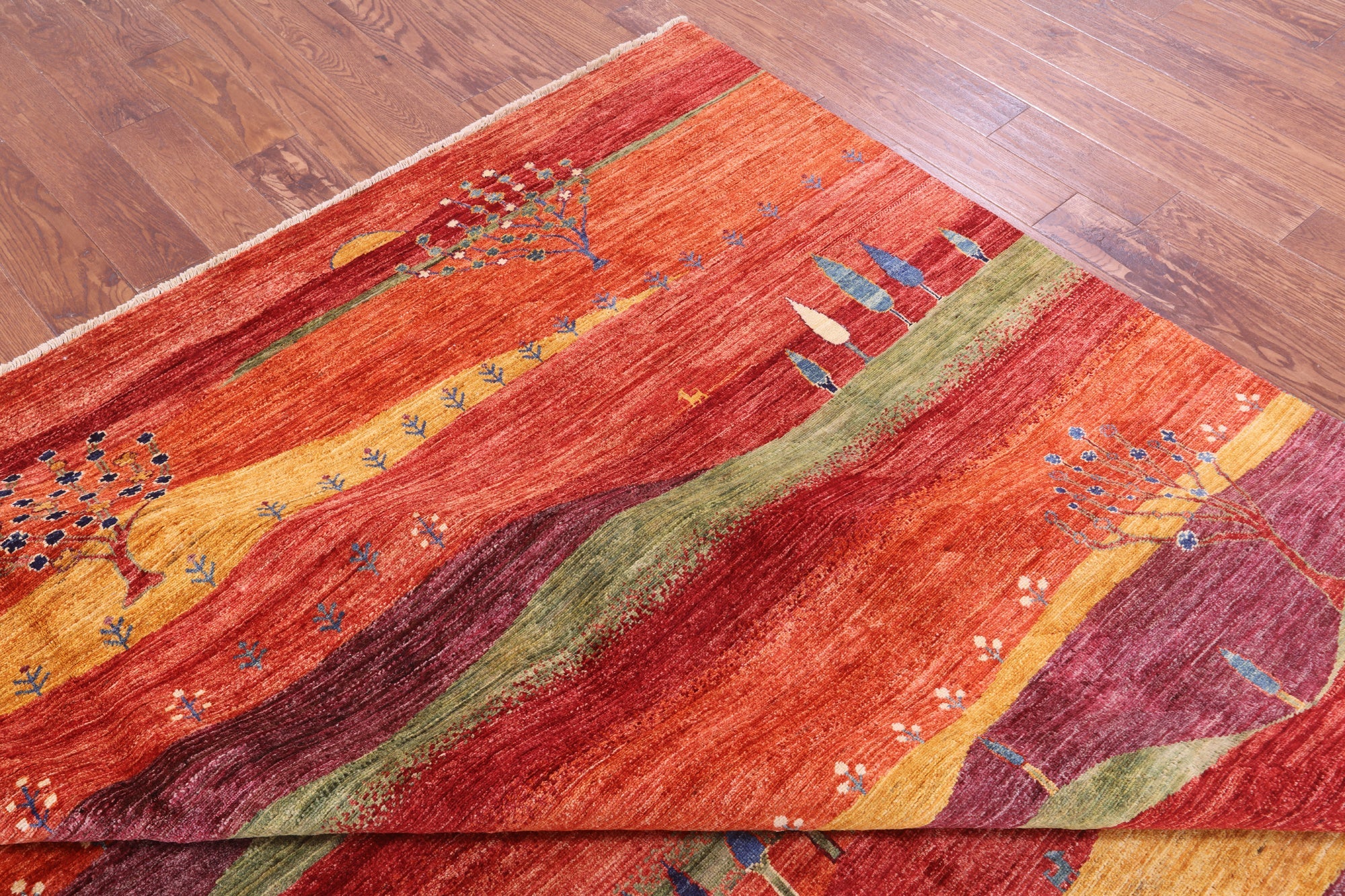 Gabbeh rugs are nothing short of simplistic and tribal, with designs consisting of primarily geometric shapes, animals, and plants. All done in a simplified way and based on the nomadic observation. Commonly brightly colored, these rugs are fun and beautiful and will add a warm touch to any home.