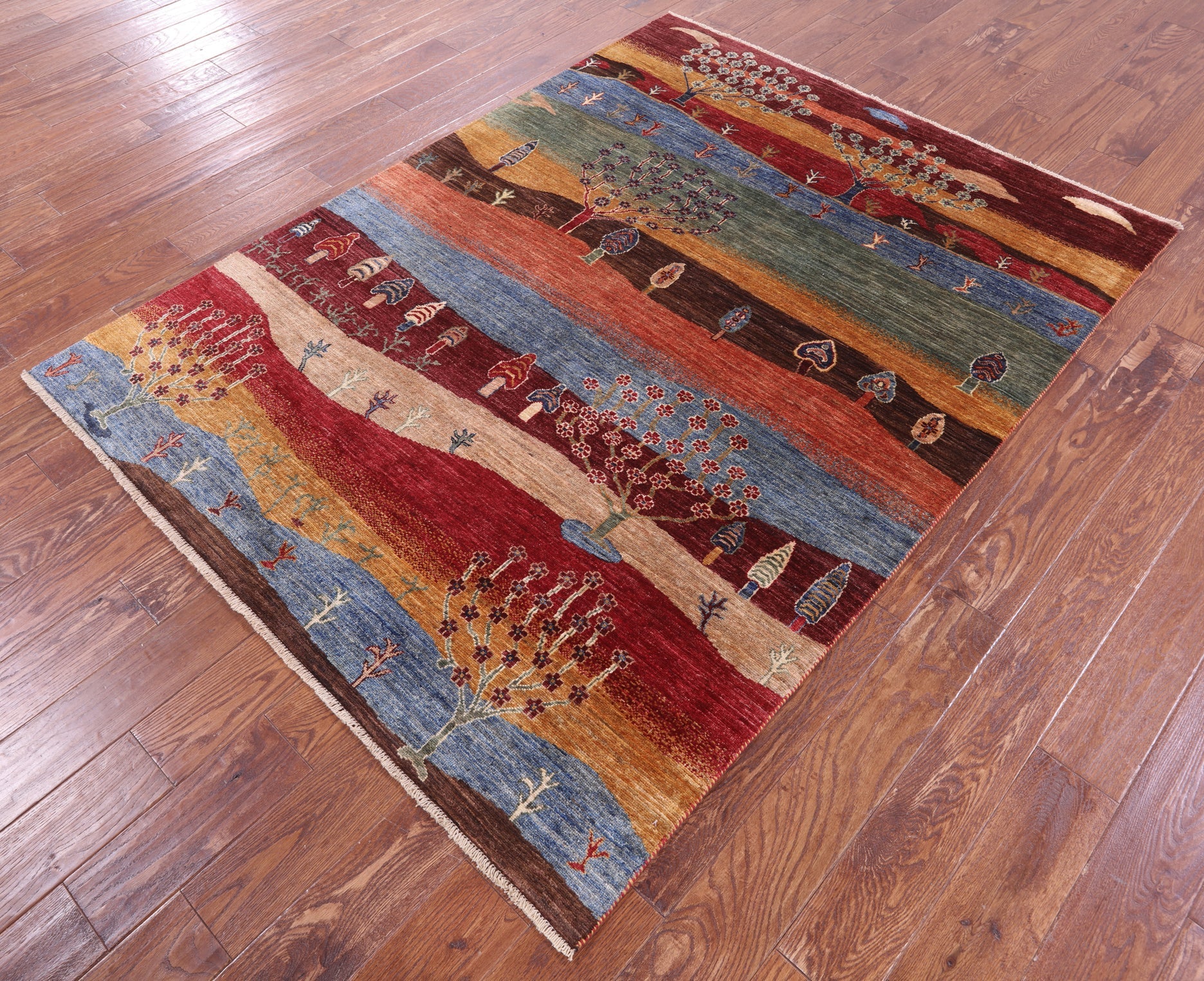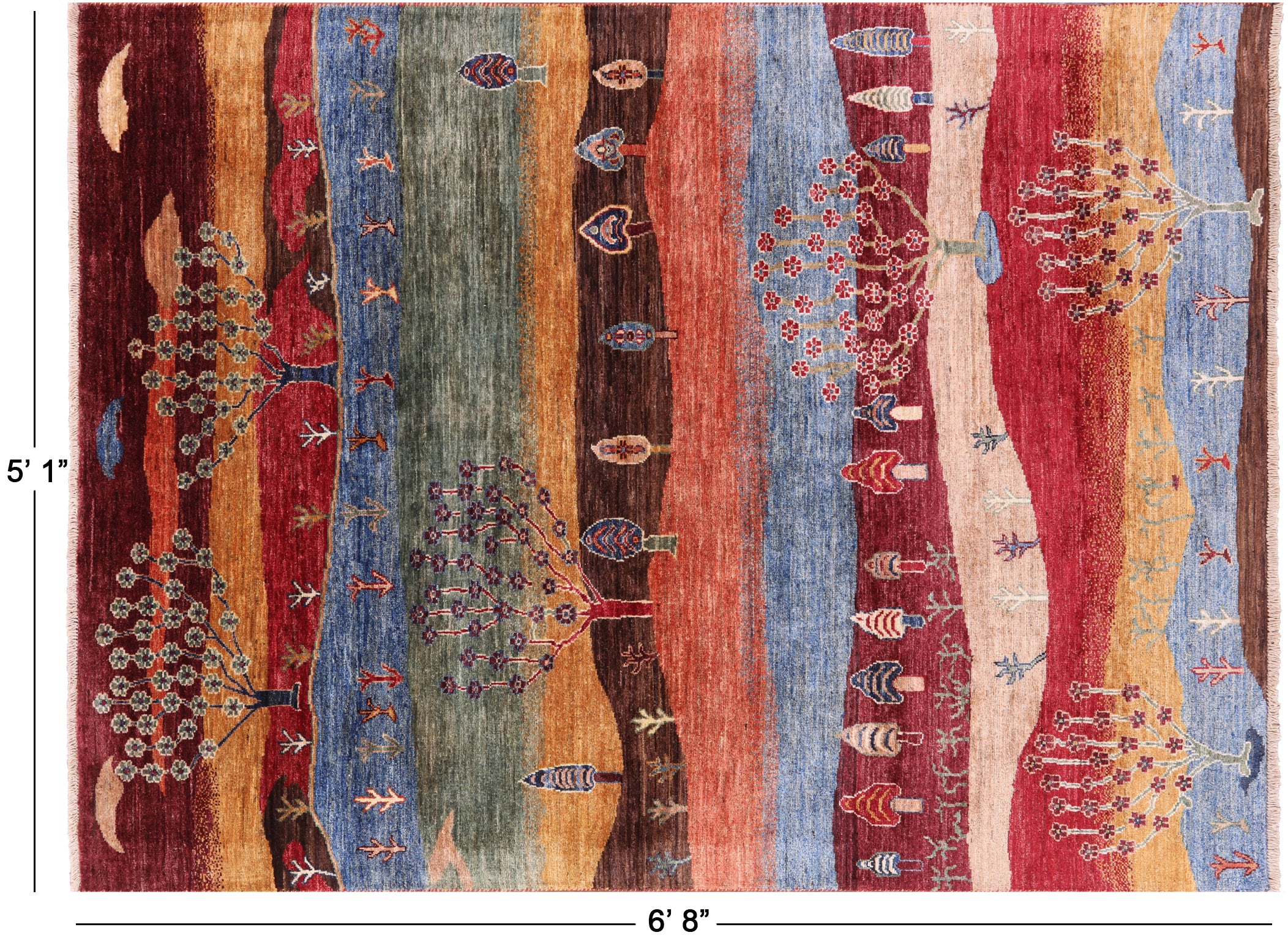 Persian Gabbeh Tribal Handmade Wool Rug 5' 1" X 6' 8" - Q20658