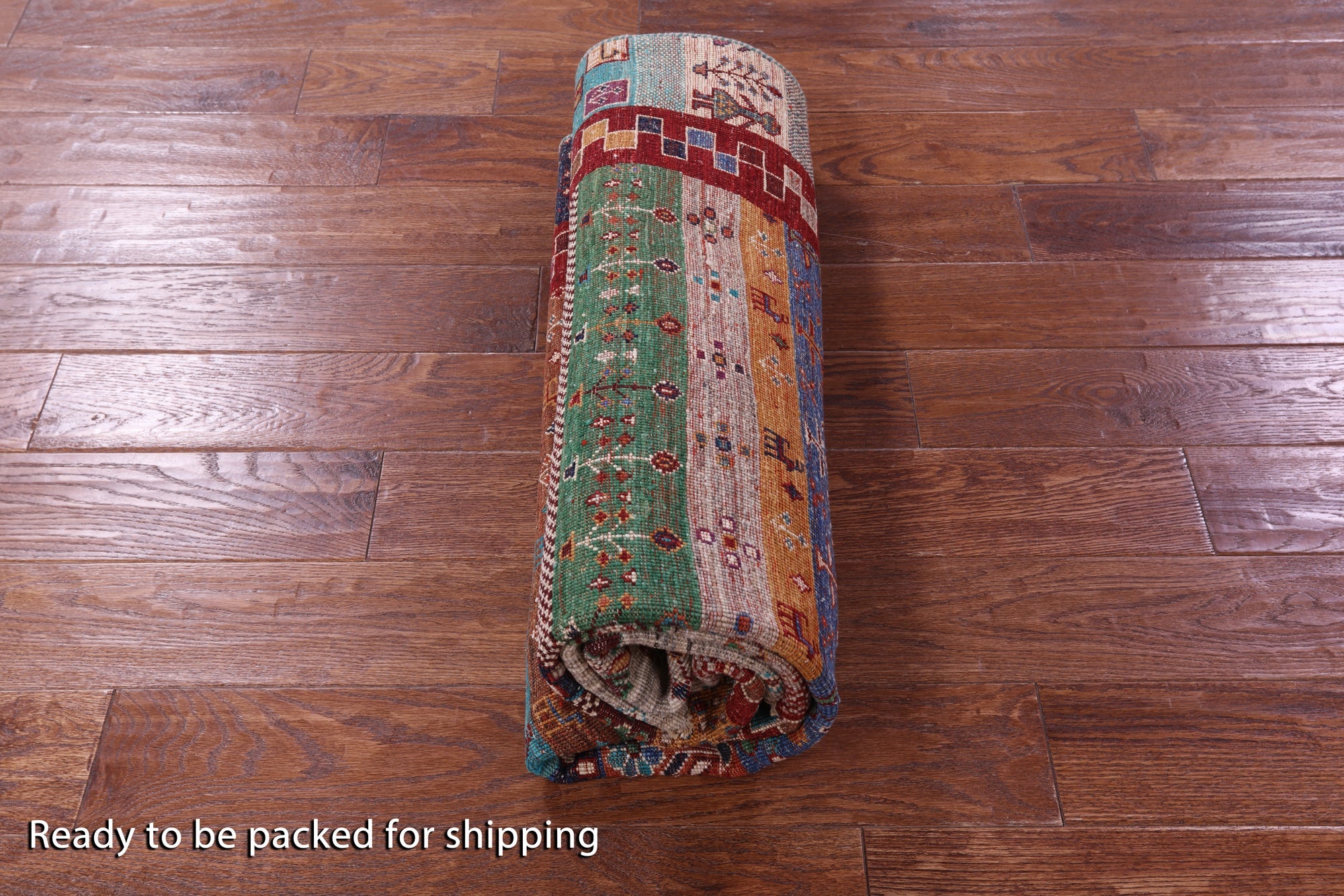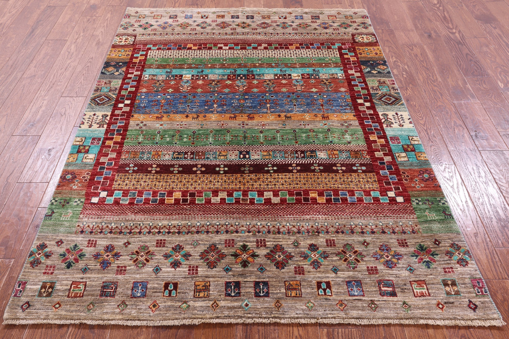 Persian Gabbeh Tribal Handmade Wool Rug 5' 0" X 6' 8" - Q20700 is backordered and will ship as soon as it is back in stock.