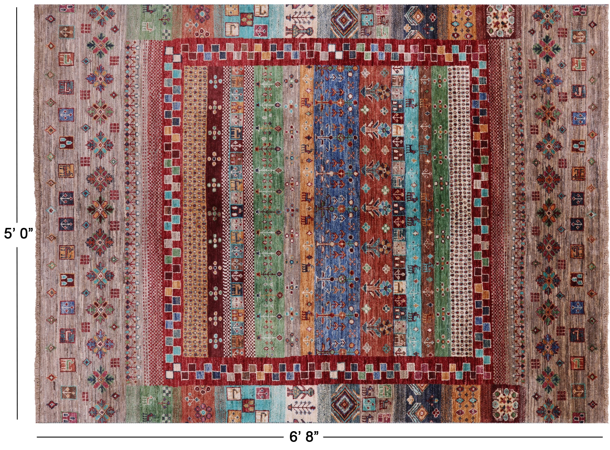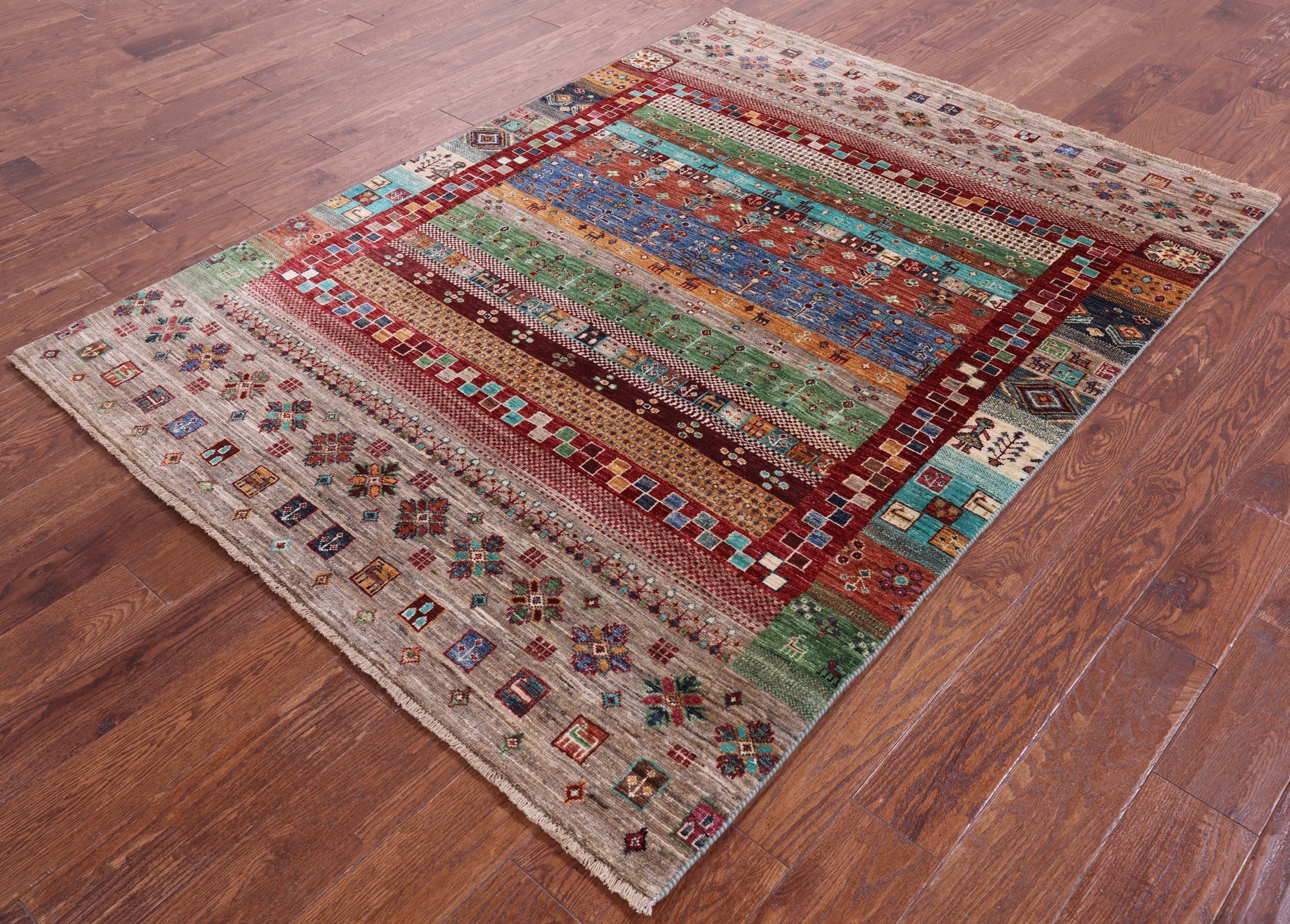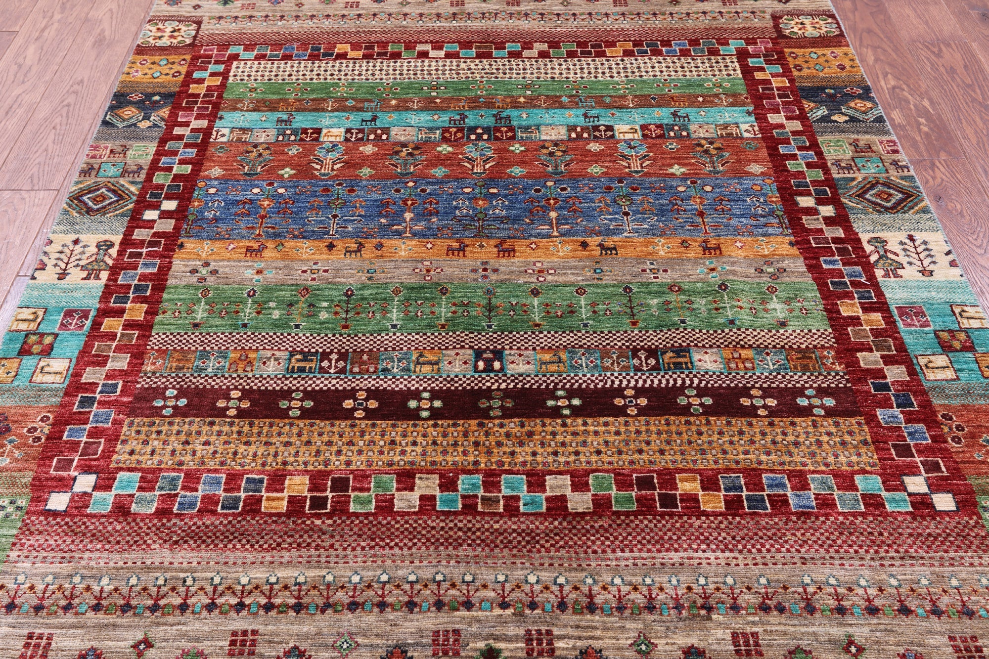 Persian Gabbeh Tribal Handmade Wool Rug 5' 0" X 6' 8" - Q20700
