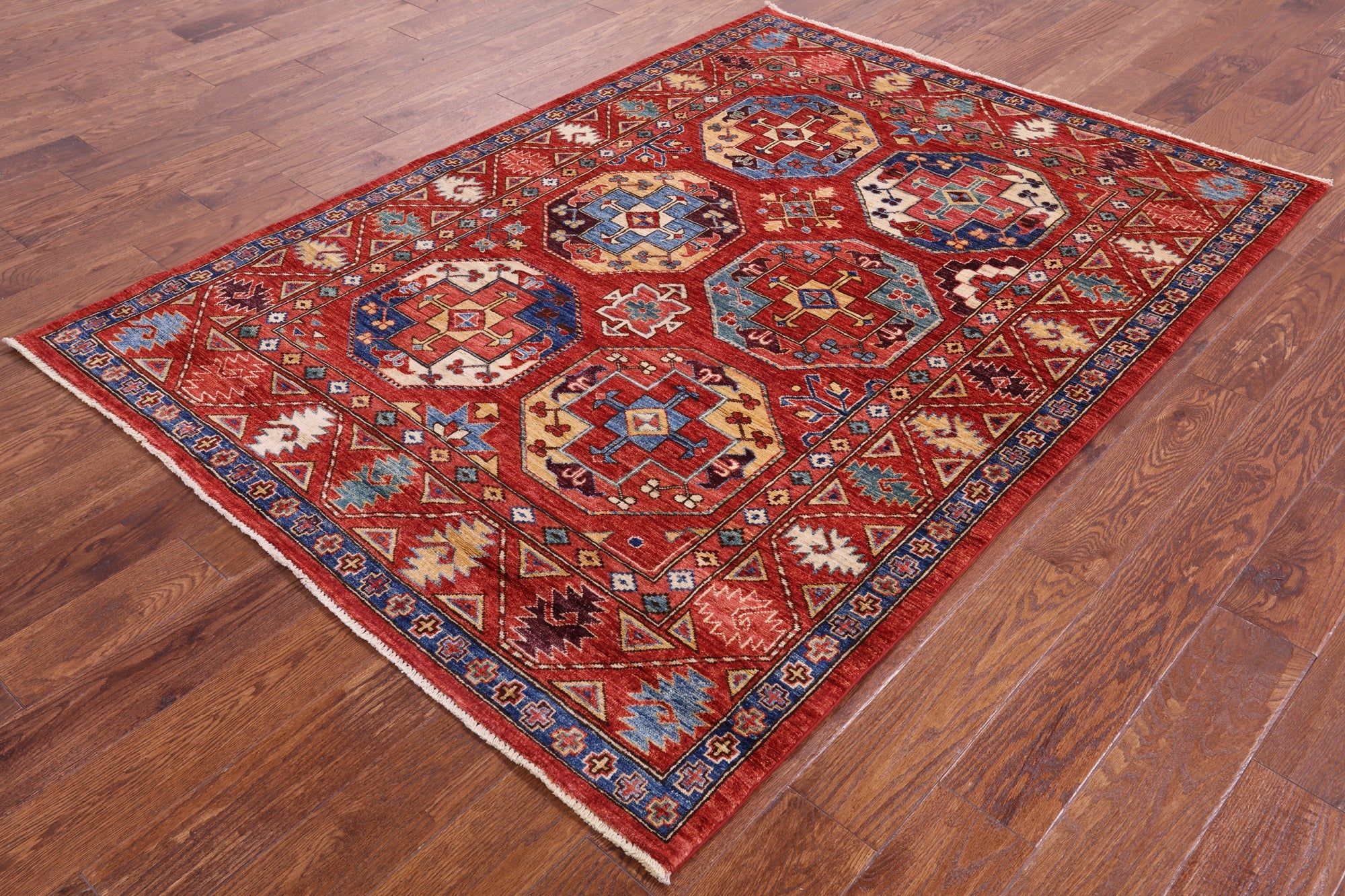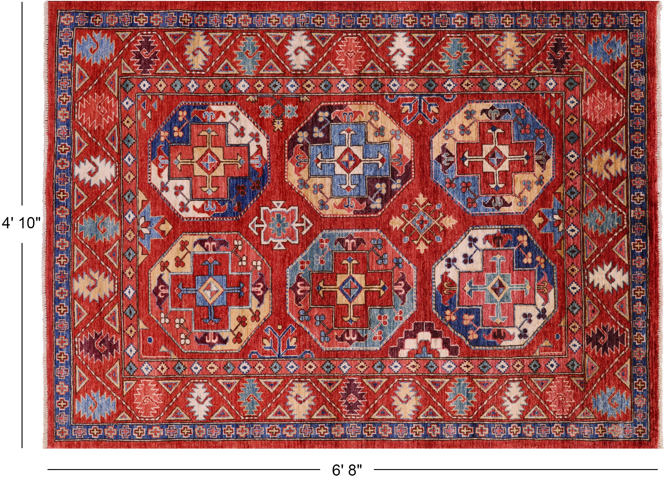 Red 4' 10" X 6' 8" Hand Knotted Bokhara Wool Rug - Q5802