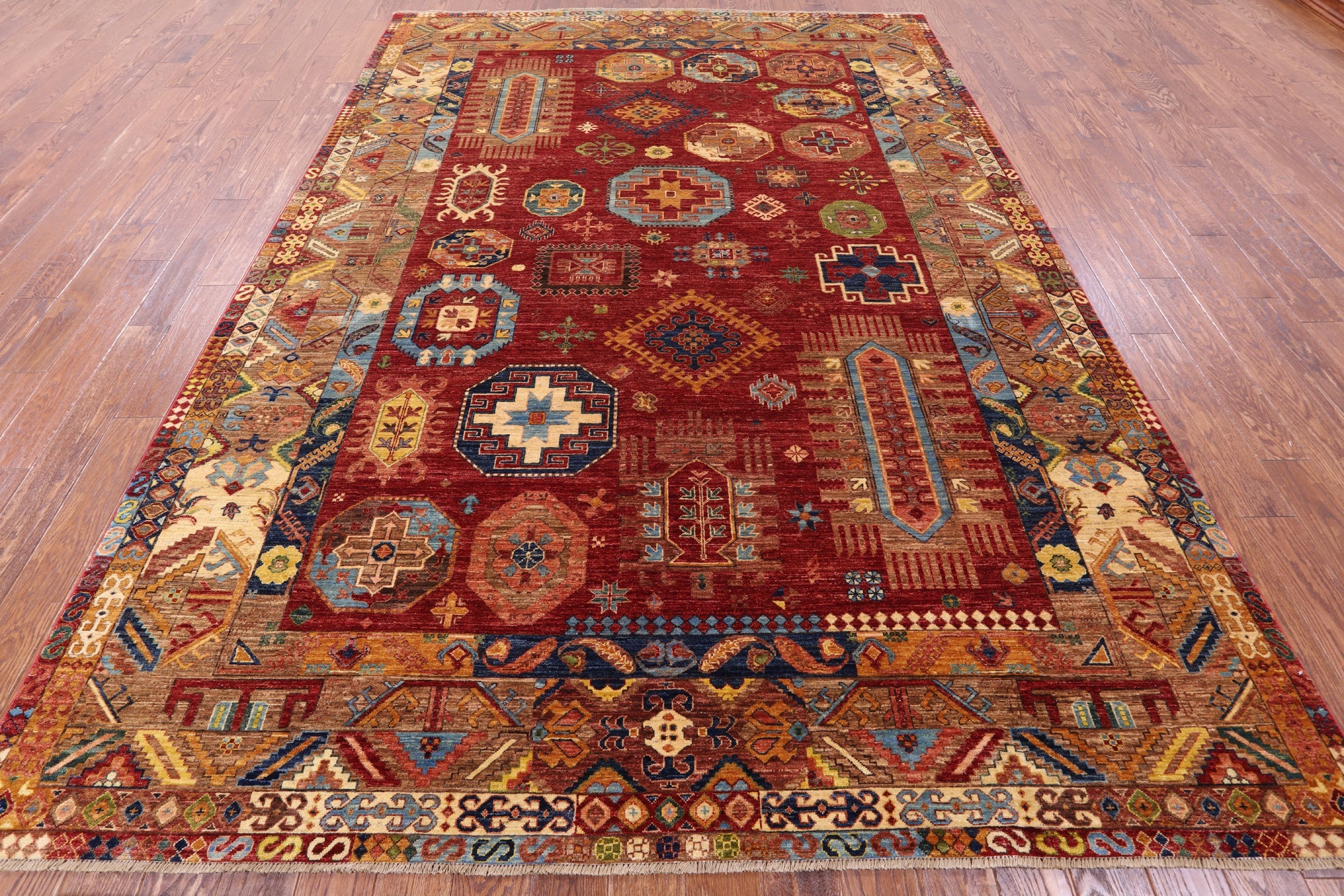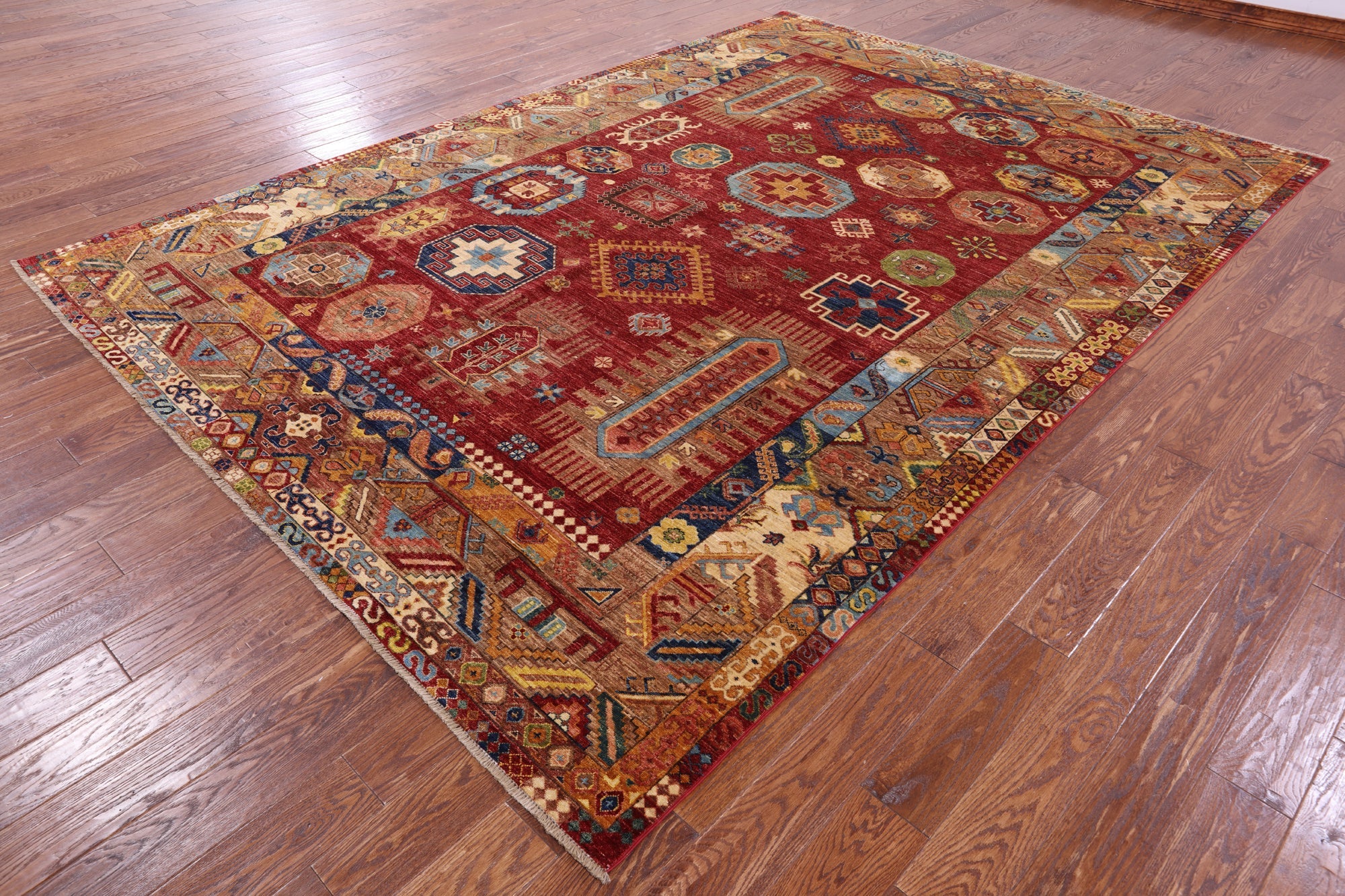 Red Hand Knotted Fine Turkmen Ersari Wool Rug 8' 2" X 11' 5" - Q14068 is backordered and will ship as soon as it is back in stock.