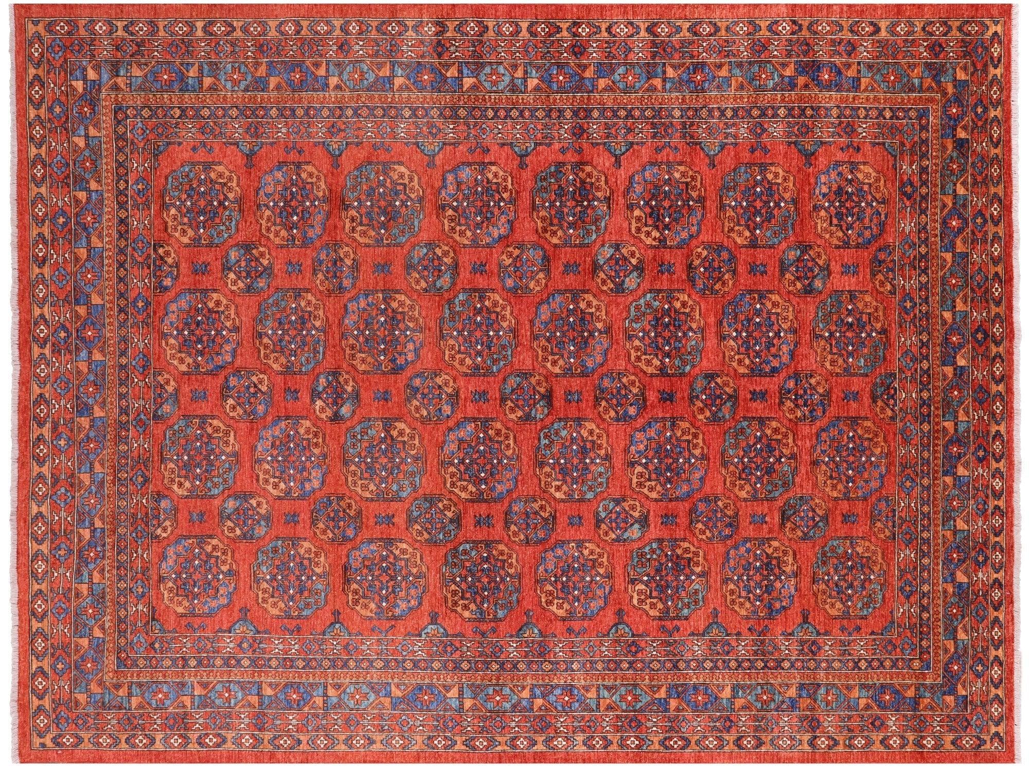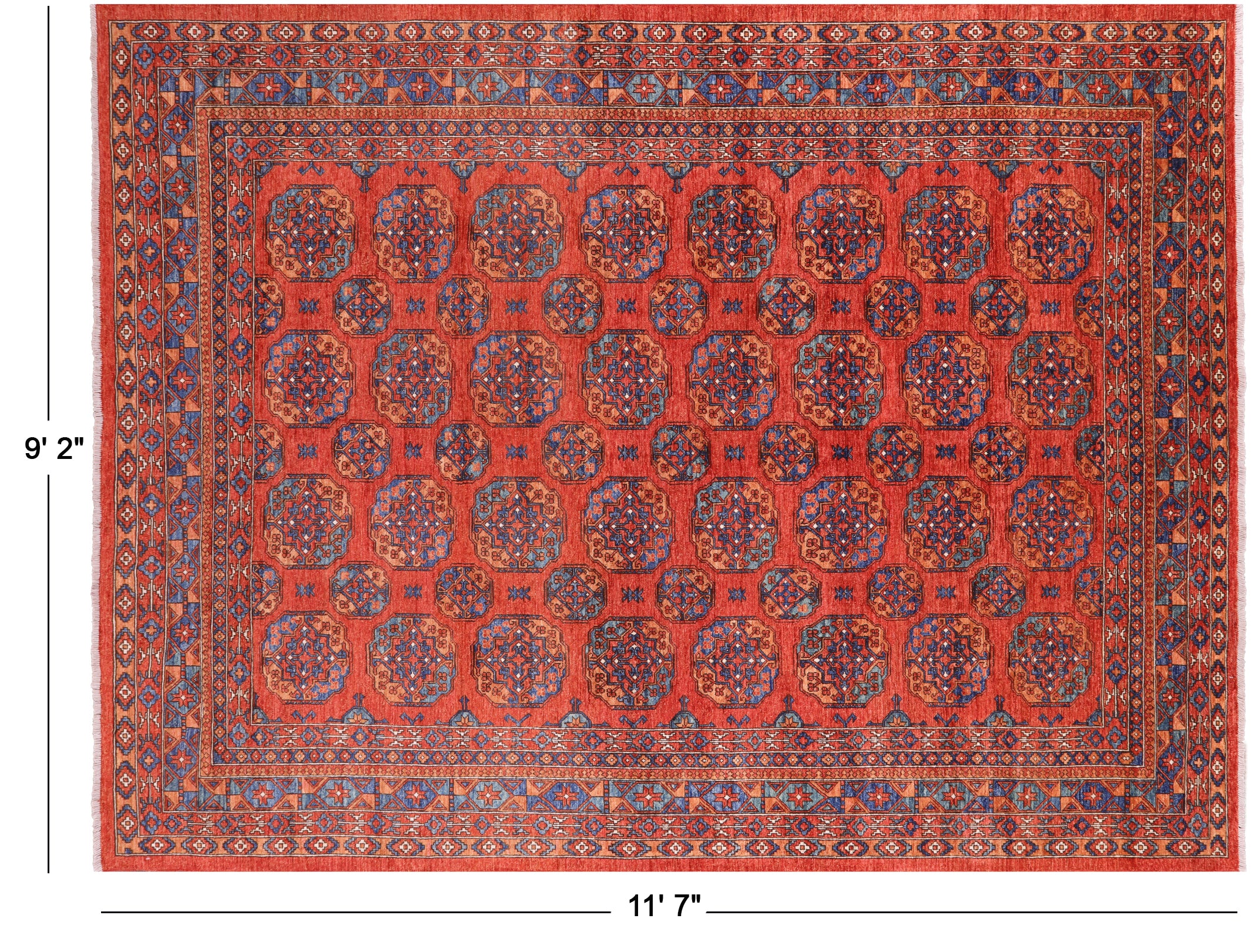 Red Hand Knotted Super Turkmen Ersari Rug 9' 2" X 11' 7" - Q21999