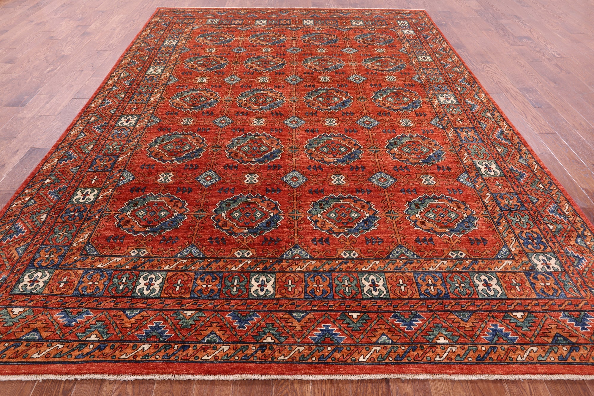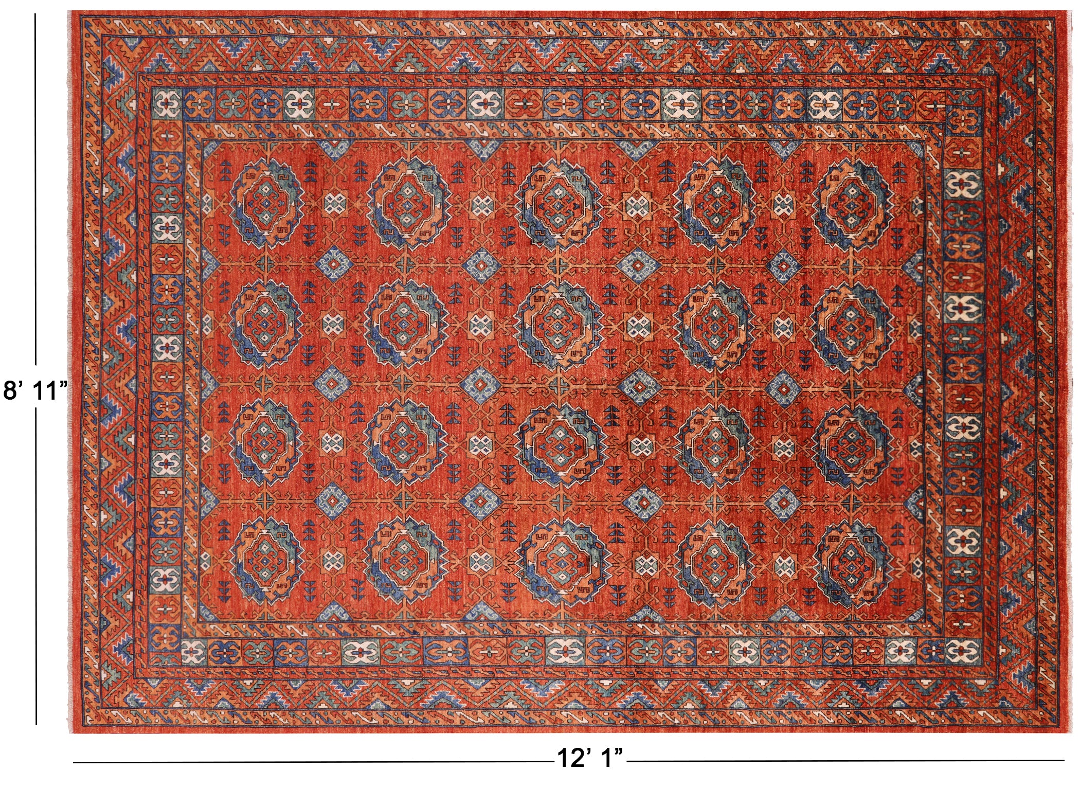 Red 8' 11" X 12' 1" Hand Knotted Super Turkmen Ersari Wool Rug - Q21988 is backordered and will ship as soon as it is back in stock.