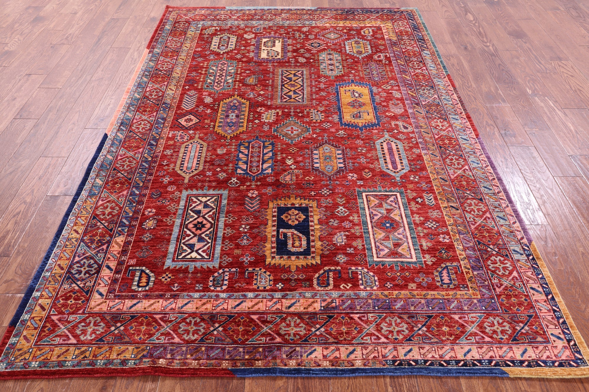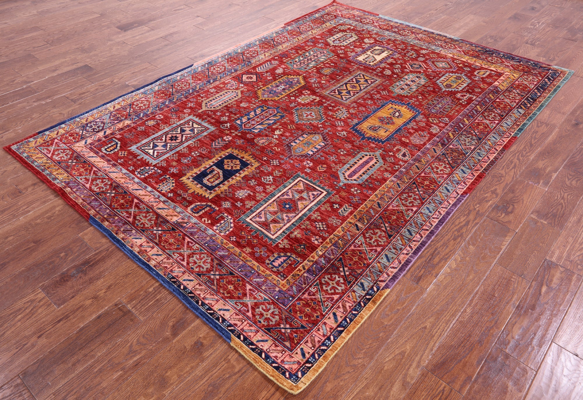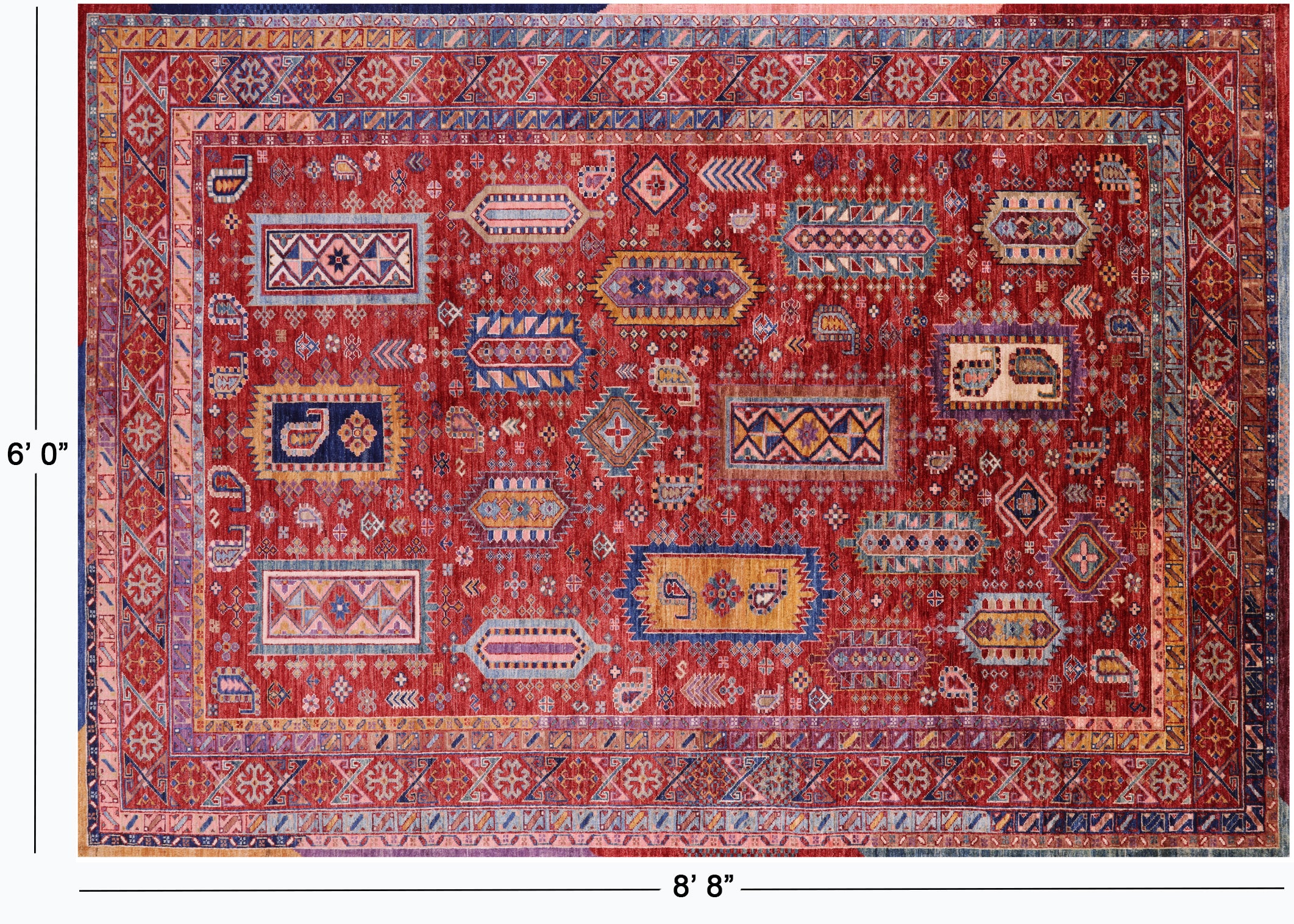 Red 6' 0" X 8' 8" Hand-Knotted Tribal Fine Serapi Rug - Q20876