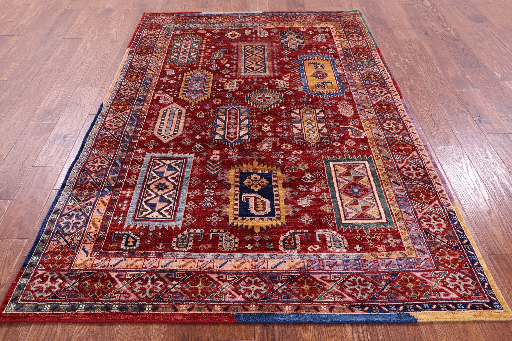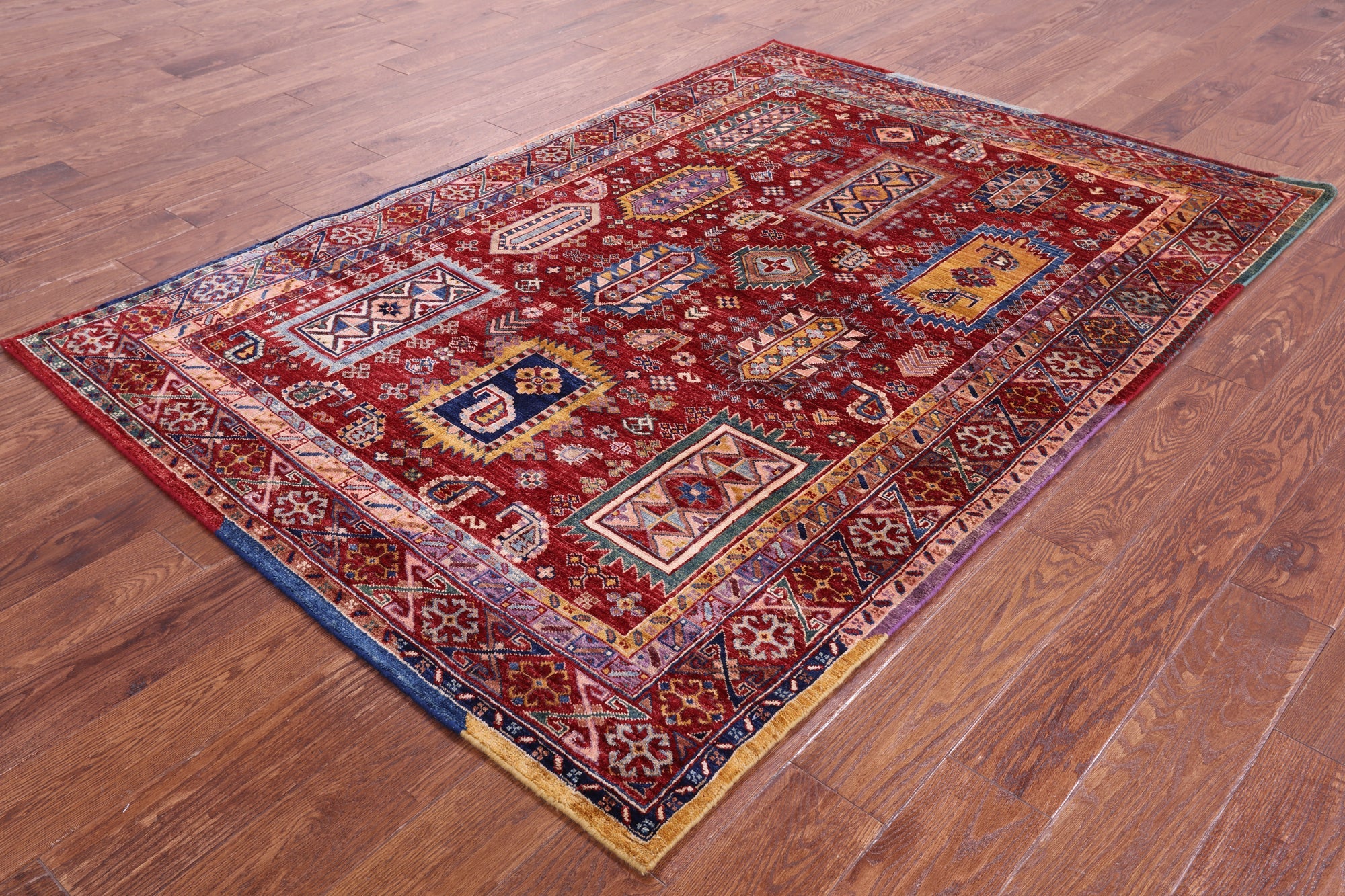 Red Hand-Knotted Tribal Fine Serapi Wool Rug 4' 10" X 6' 11" - Q16605 is backordered and will ship as soon as it is back in stock.