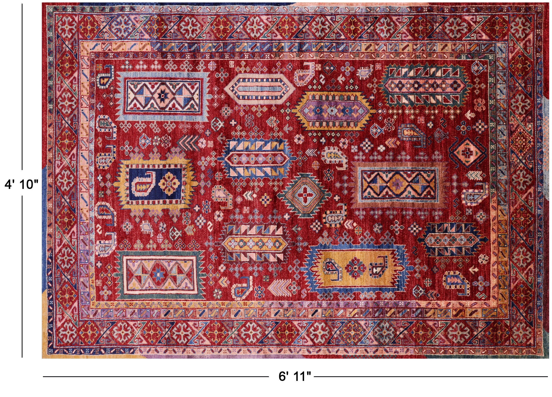 Red Hand-Knotted Tribal Fine Serapi Wool Rug 4' 10" X 6' 11" - Q16605