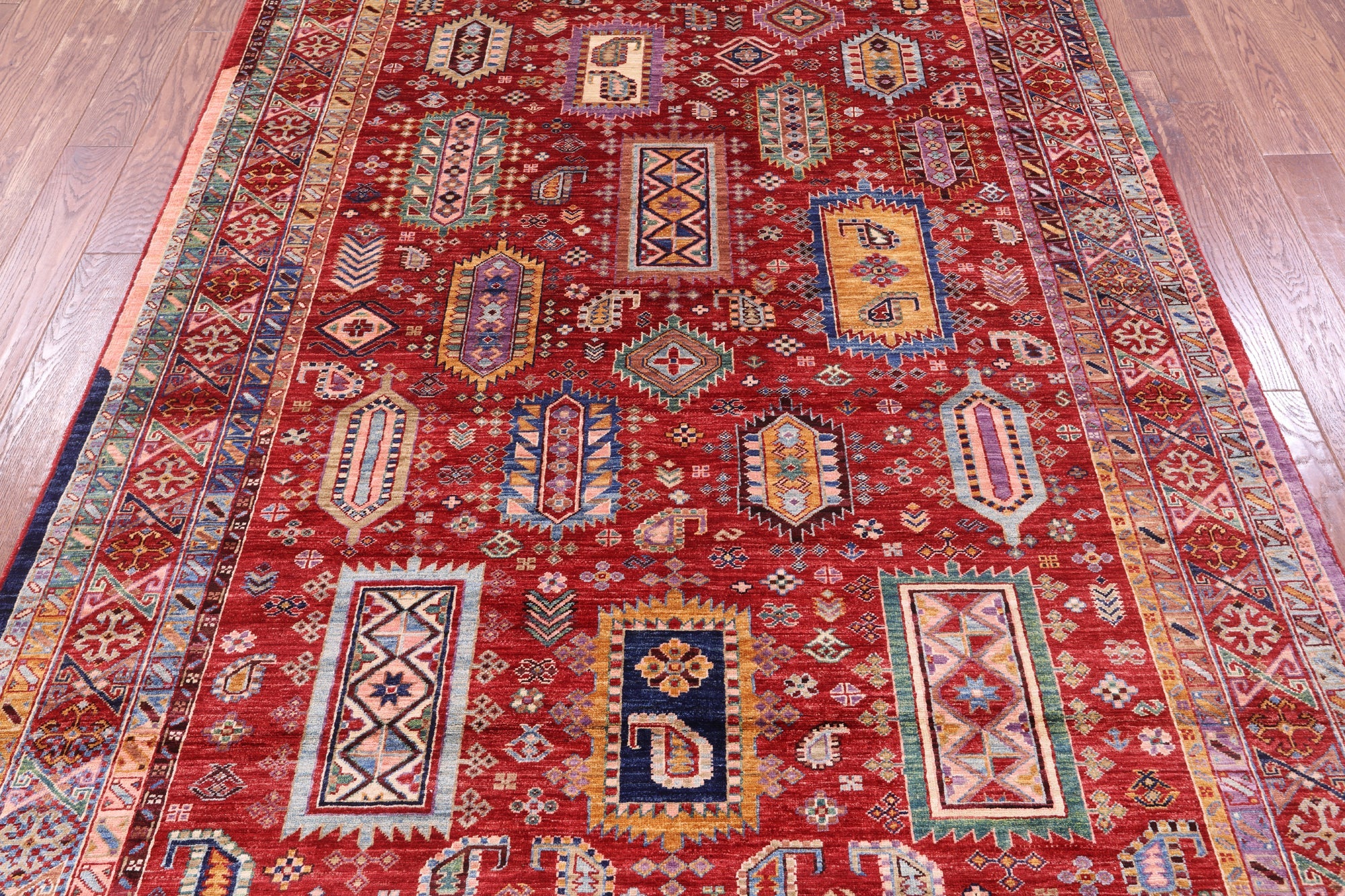 Red 6' 1" X 8' 6" Hand-Knotted Tribal Fine Serapi Wool Rug - Q17239 is backordered and will ship as soon as it is back in stock.