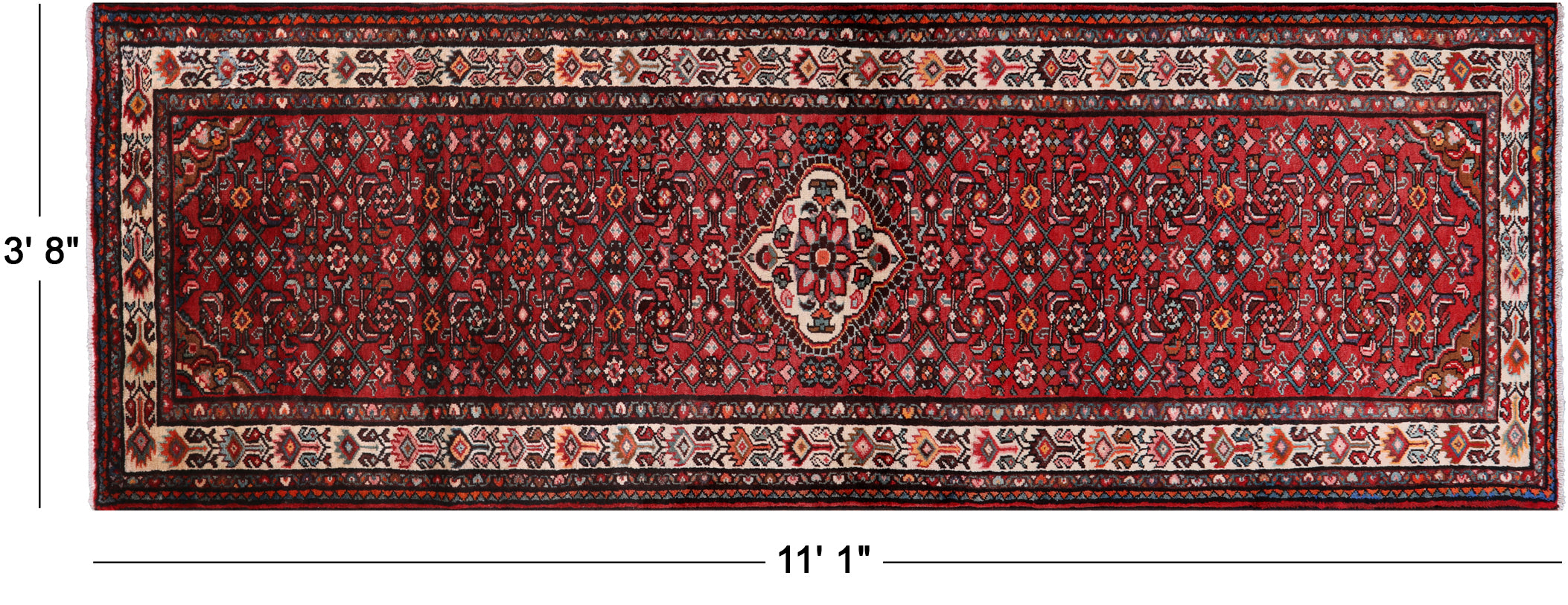 Red 3' 8" X 11' 1" New Runner Persian Hamadan Hand Knotted Full Pile Wool Rug - S1720 is backordered and will ship as soon as it is back in stock.