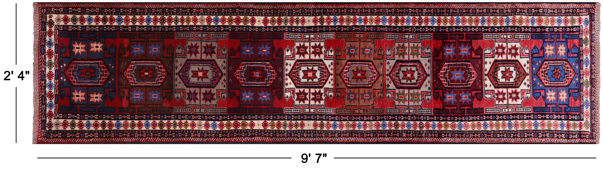 Red Persian Tribal Handmade Wool on Wool Runner Rug 2' 4" X 9' 7" - Q23514