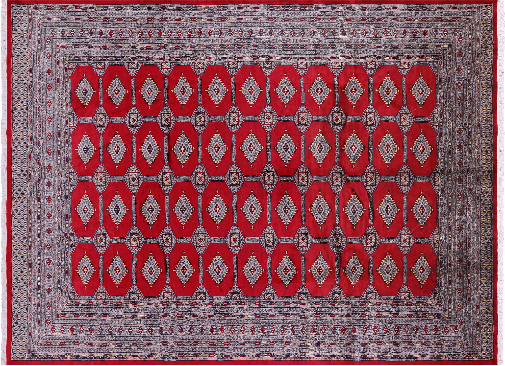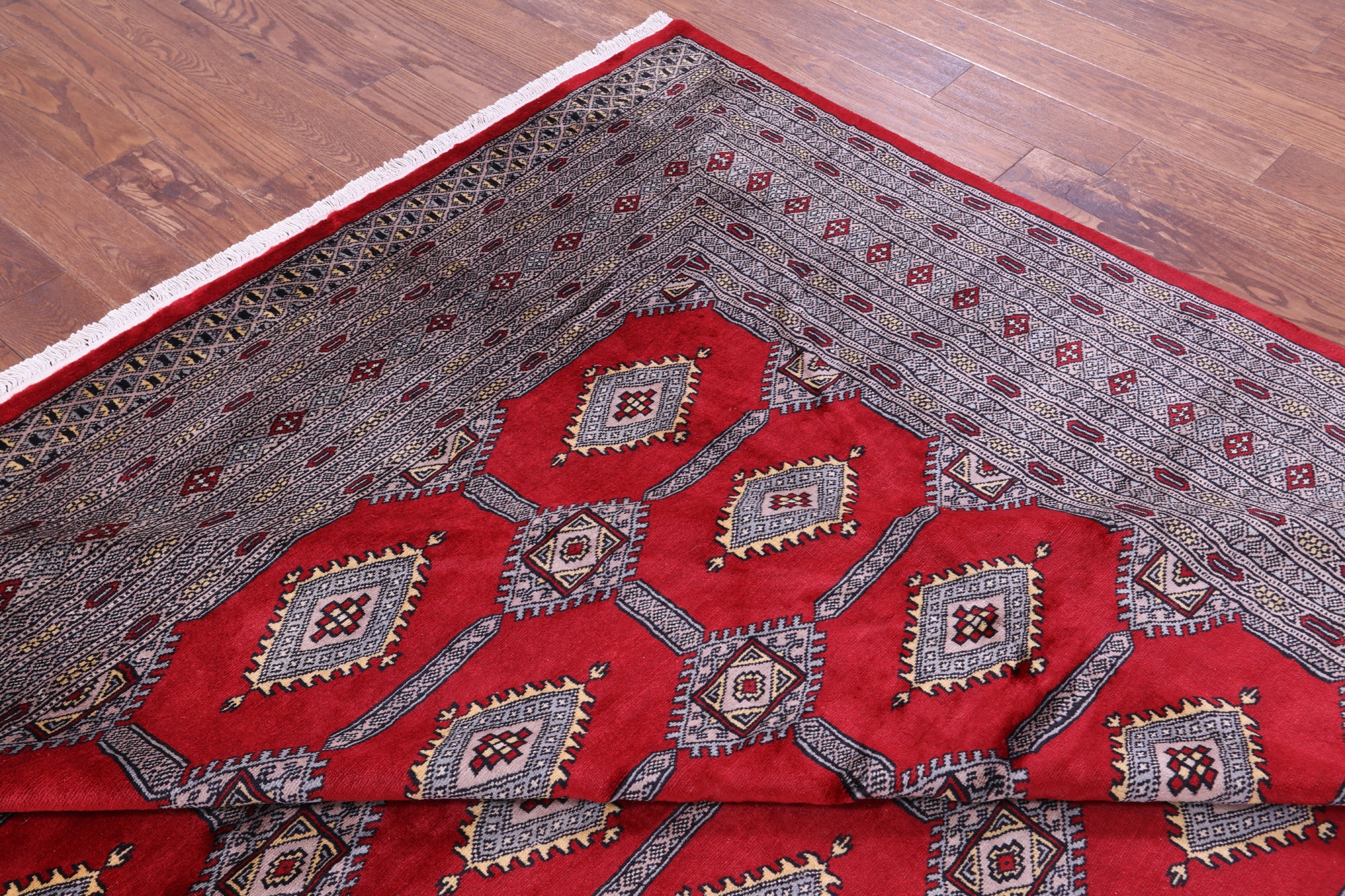 Bokharas are a type of handmade Pakistani rug; also known as Bukharas or Bokaras. Most are based on Turkmen prototypes called Tekkes. Pakistani Bokhara rugs are among the most popular handmade rugs in the world. They are popular for their soft, luxurious feel, heavy pile, attractive colors and appearance that consist of repeating octagonal figures called guls, usually on fields of burgundy red, gray blue, or sometimes green.