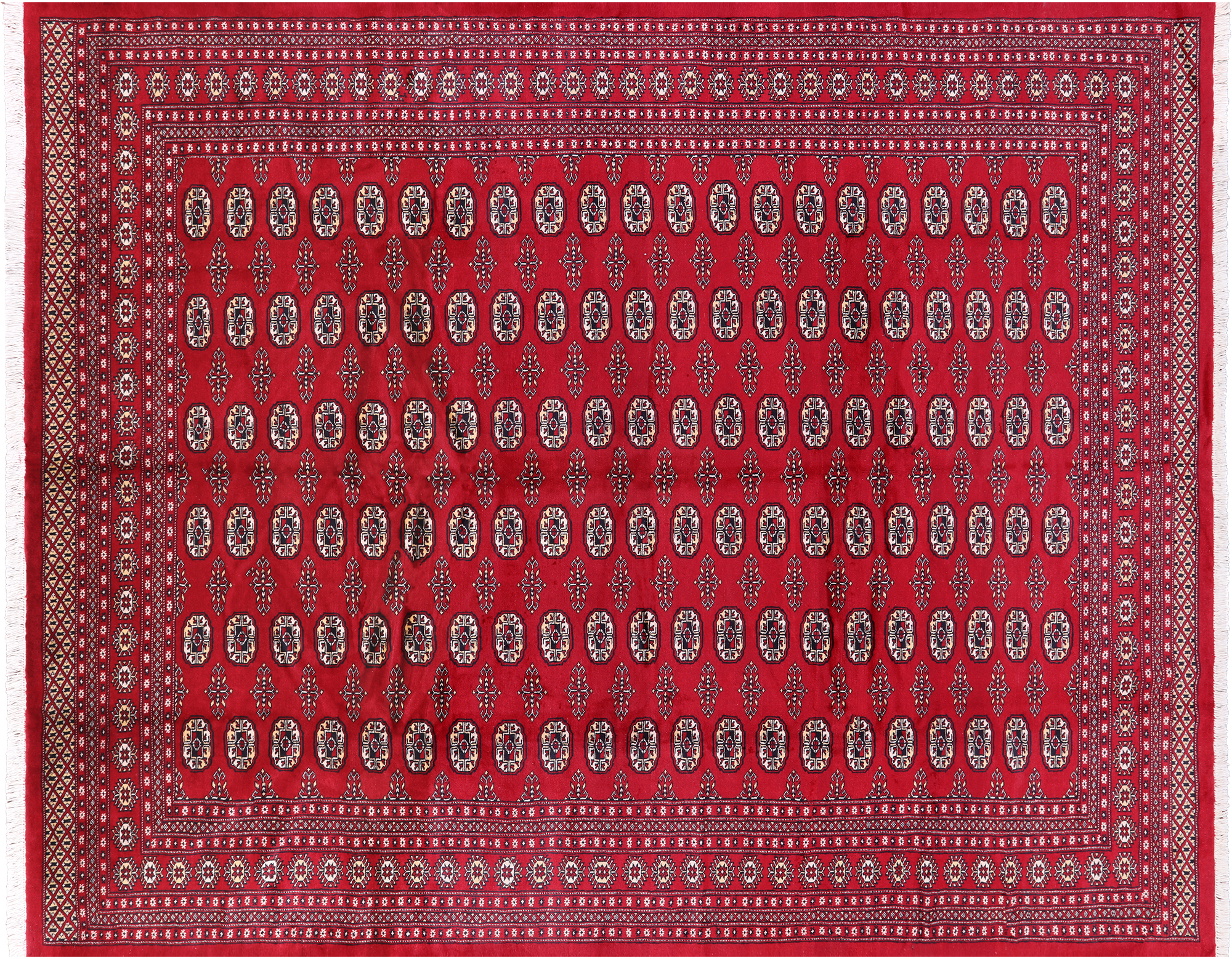 Bokharas are a type of handmade Pakistani rug; also known as Bukharas or Bokaras. Most are based on Turkmen prototypes called Tekkes. Pakistani Bokhara rugs are among the most popular handmade rugs in the world. They are popular for their soft, luxurious feel, heavy pile, attractive colors and appearance that consist of repeating octagonal figures called guls, usually on fields of burgundy red, gray blue, or sometimes green.