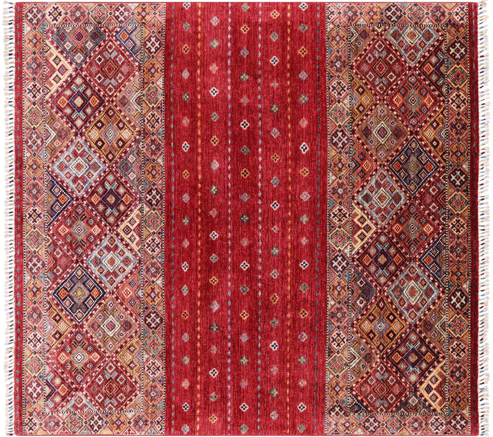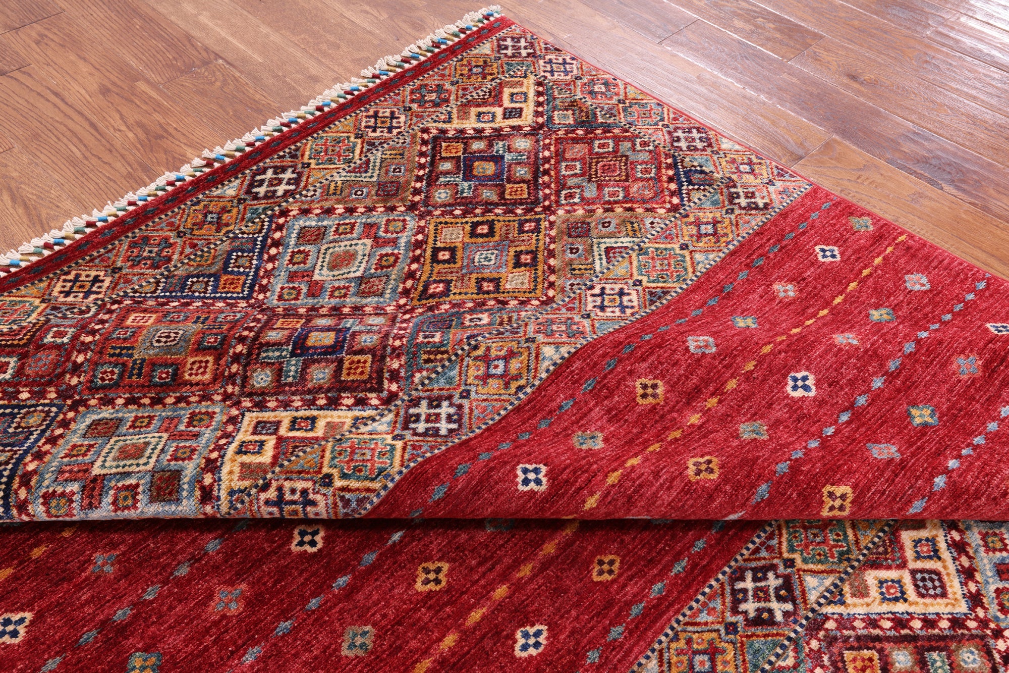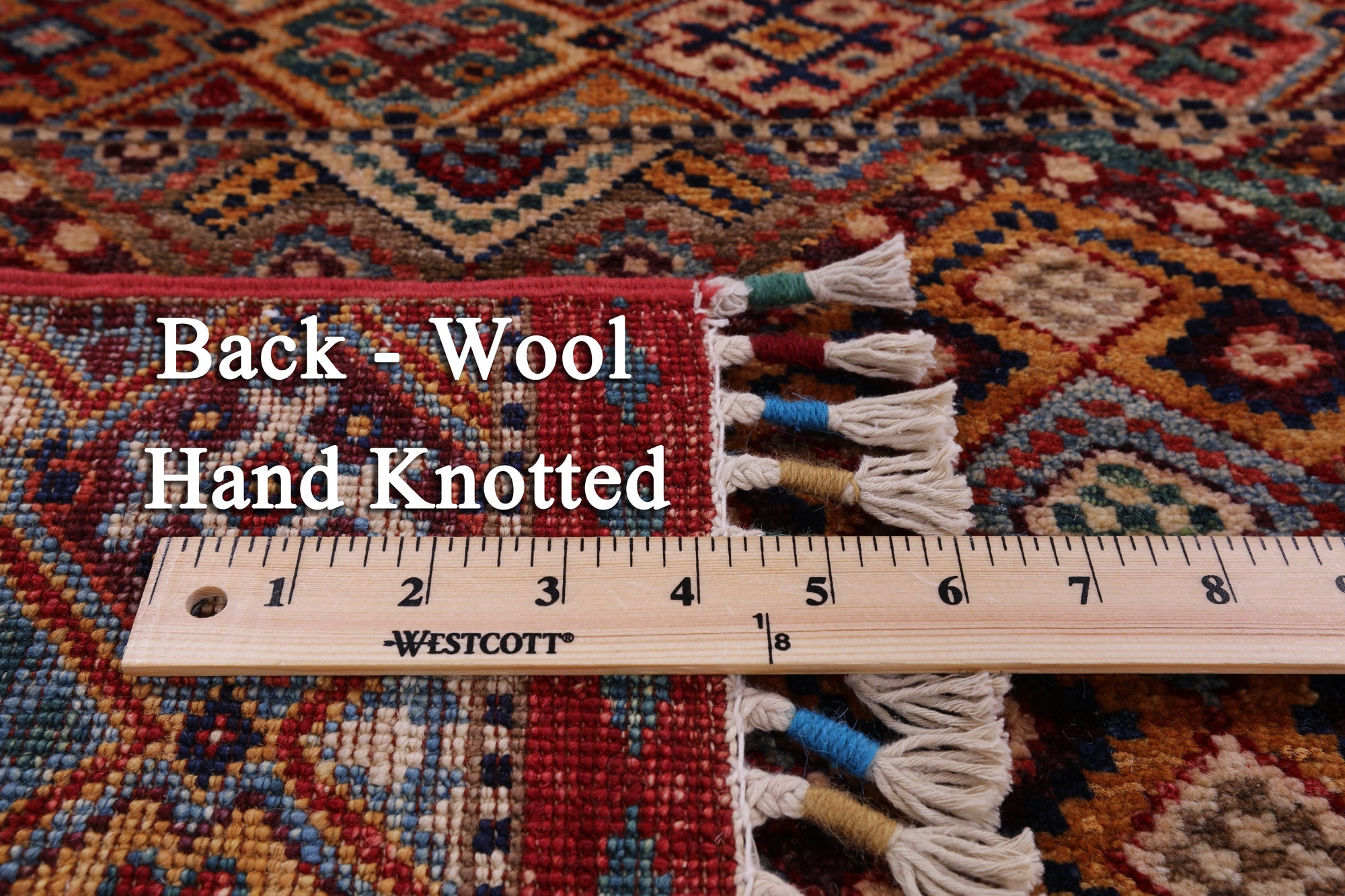 Red Super Kazak Khorjin Hand Knotted Rug 6' 4" X 6' 11" - Q2971 is backordered and will ship as soon as it is back in stock.
