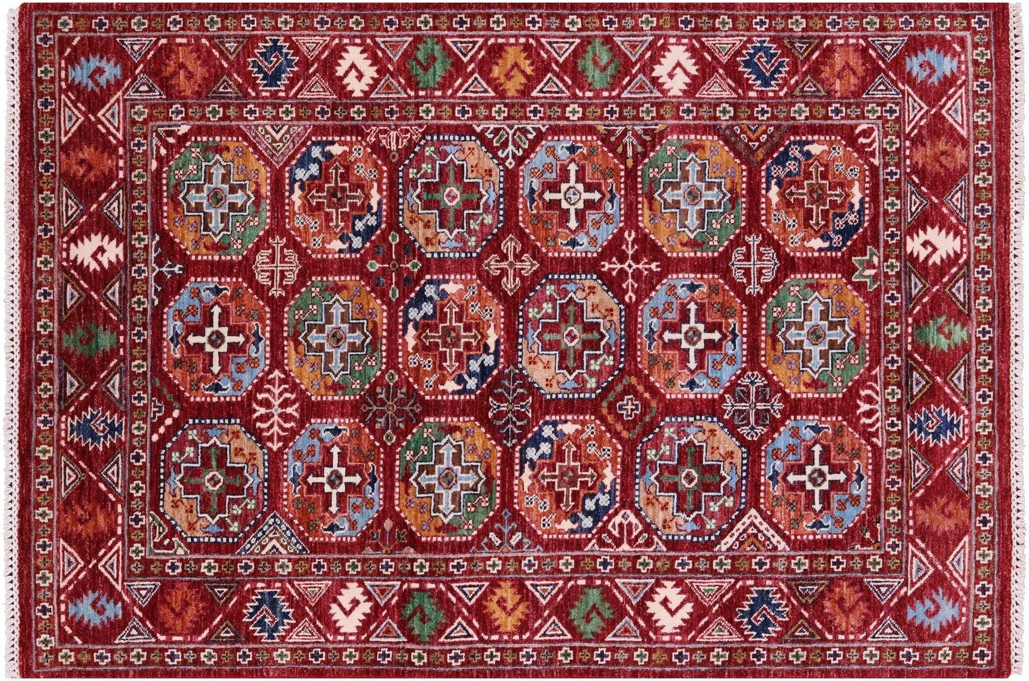 Red 4' 1" X 6' 1" Super Turkmen Ersari Hand Knotted Rug - Q18693