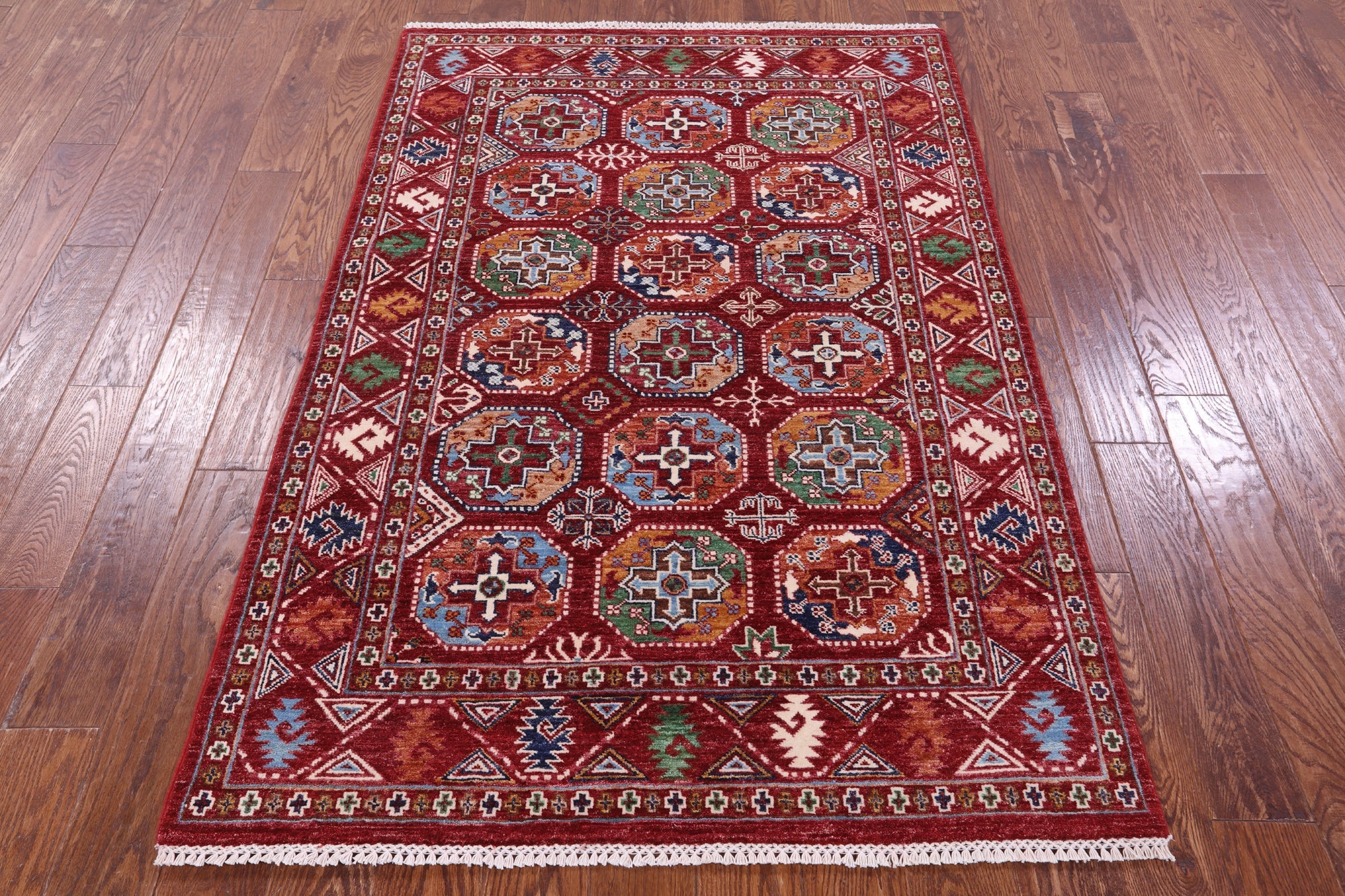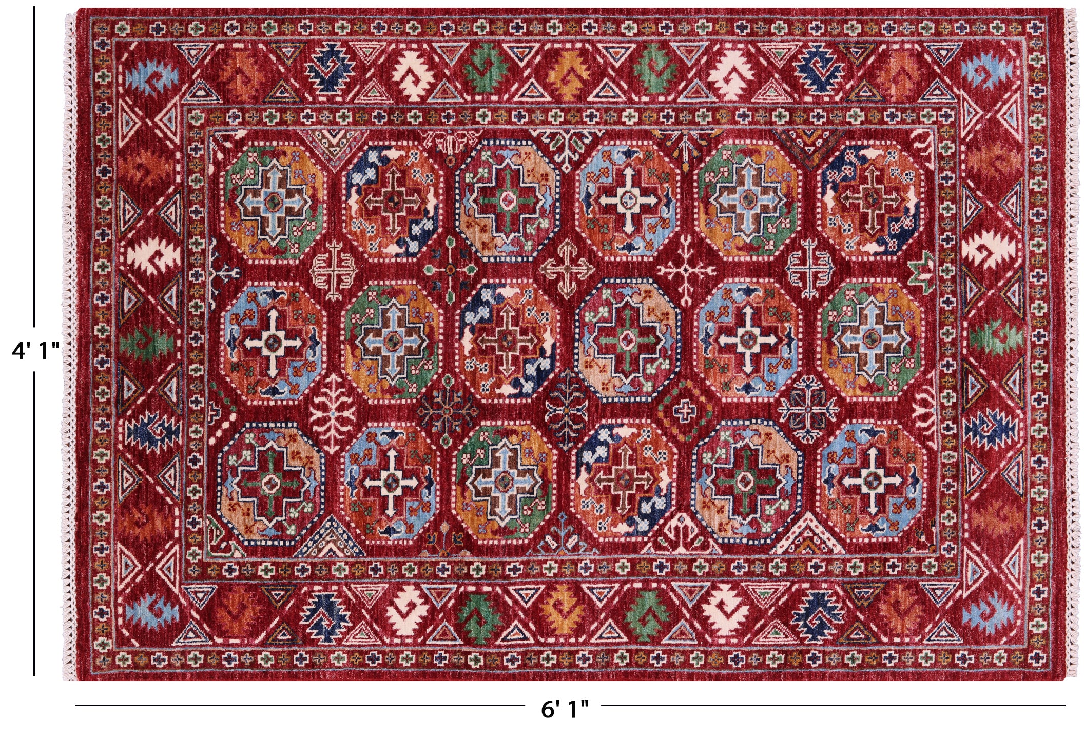 Red 4' 1" X 6' 1" Super Turkmen Ersari Hand Knotted Rug - Q18693 is backordered and will ship as soon as it is back in stock.
