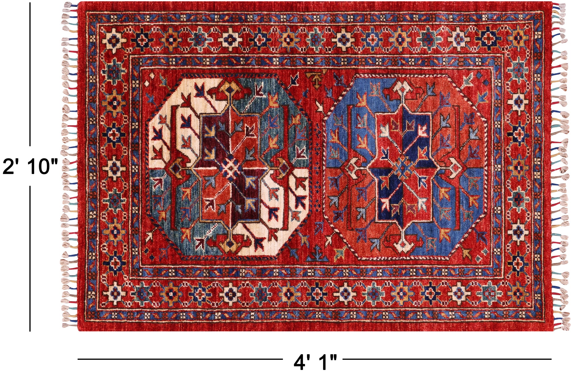 Red 2' 10" X 4' 1" Super Turkmen Ersari Hand-Knotted Rug - Q23244