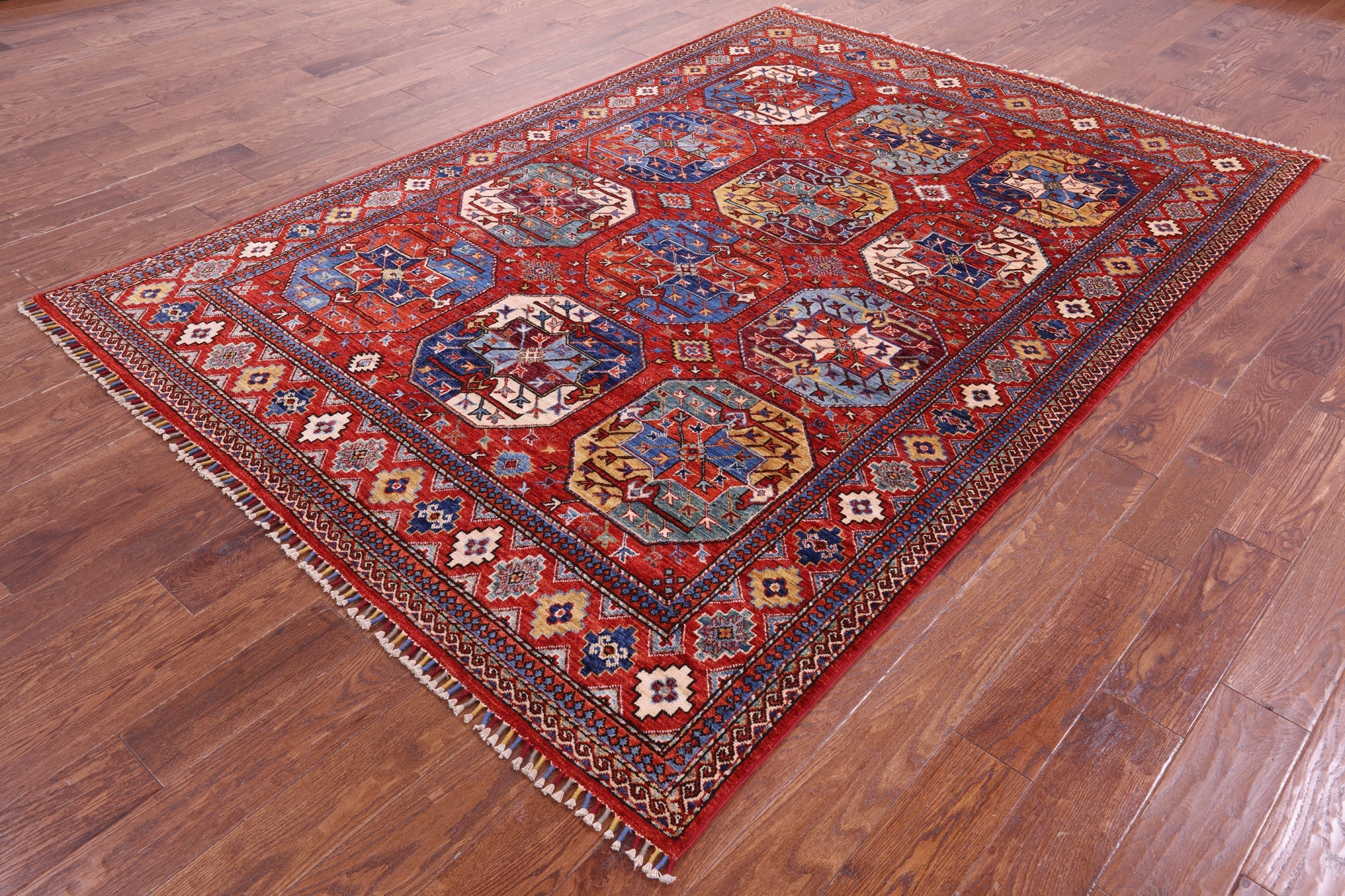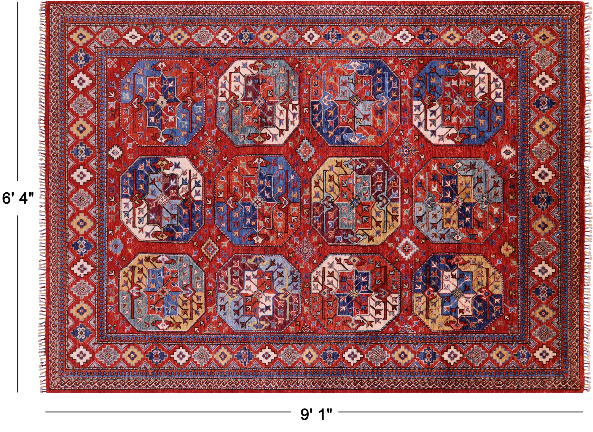 Red Super Turkmen Ersari Hand Knotted Wool Rug 6' 4" X 9' 1" - Q23262