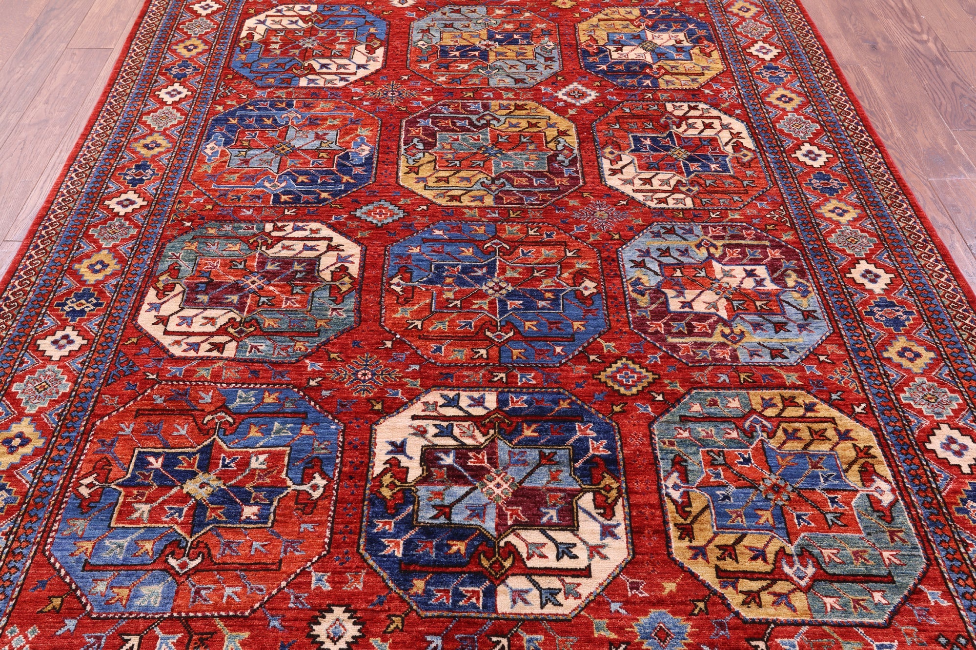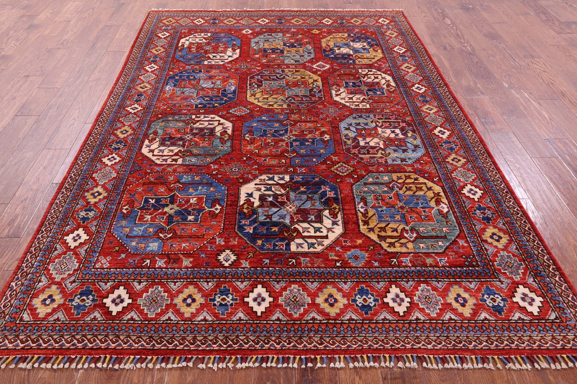 Red Super Turkmen Ersari Hand Knotted Wool Rug 6' 4" X 9' 1" - Q23262 is backordered and will ship as soon as it is back in stock.