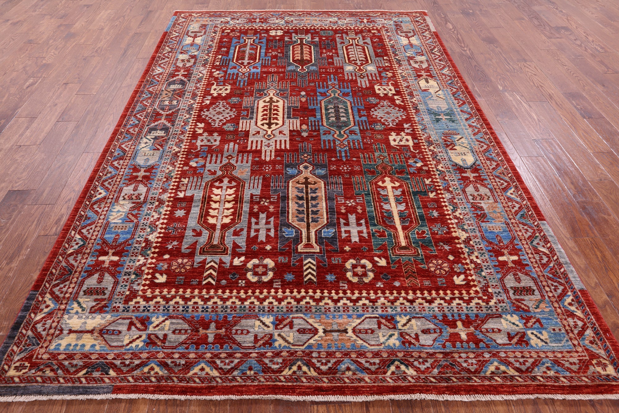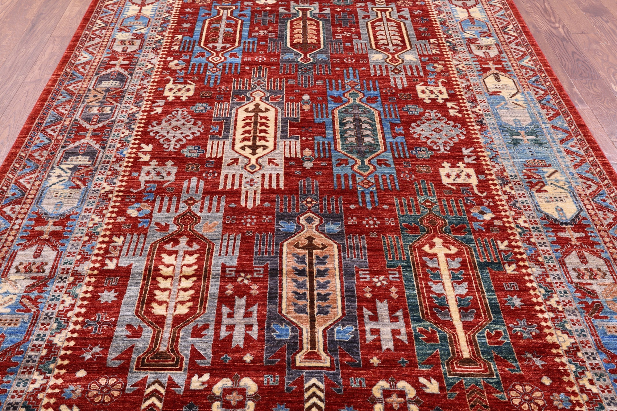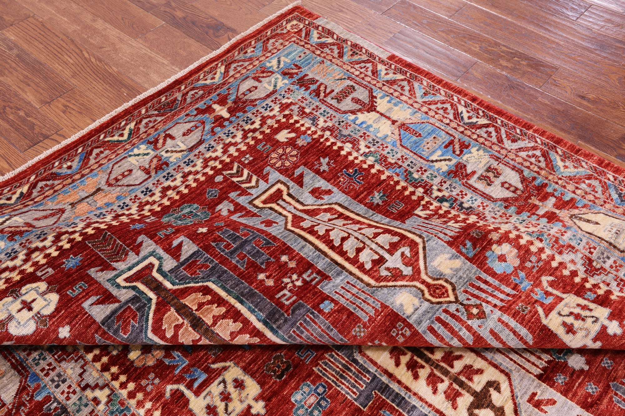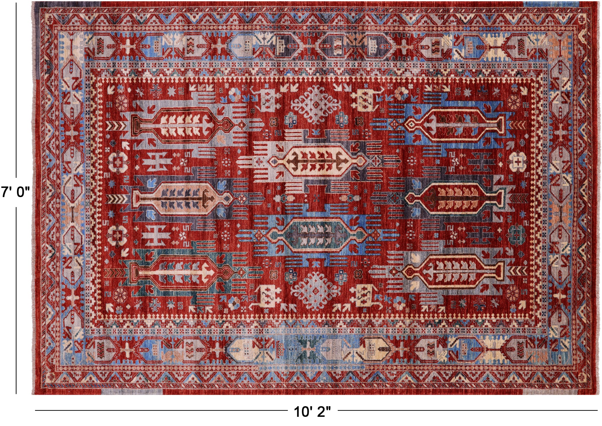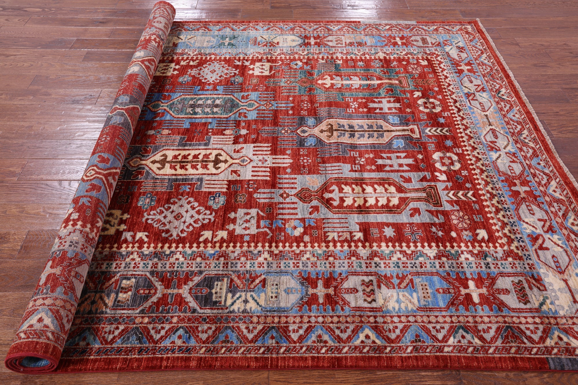 Red 7' 0" X 10' 2" Tribal Fine Serapi Hand-Knotted Wool Rug - Q12206 is backordered and will ship as soon as it is back in stock.