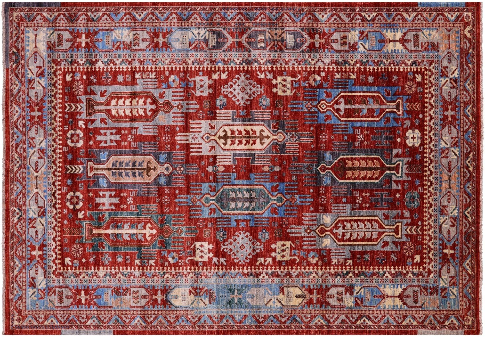 Red 7' 0" X 10' 2" Tribal Fine Serapi Hand-Knotted Wool Rug - Q12206