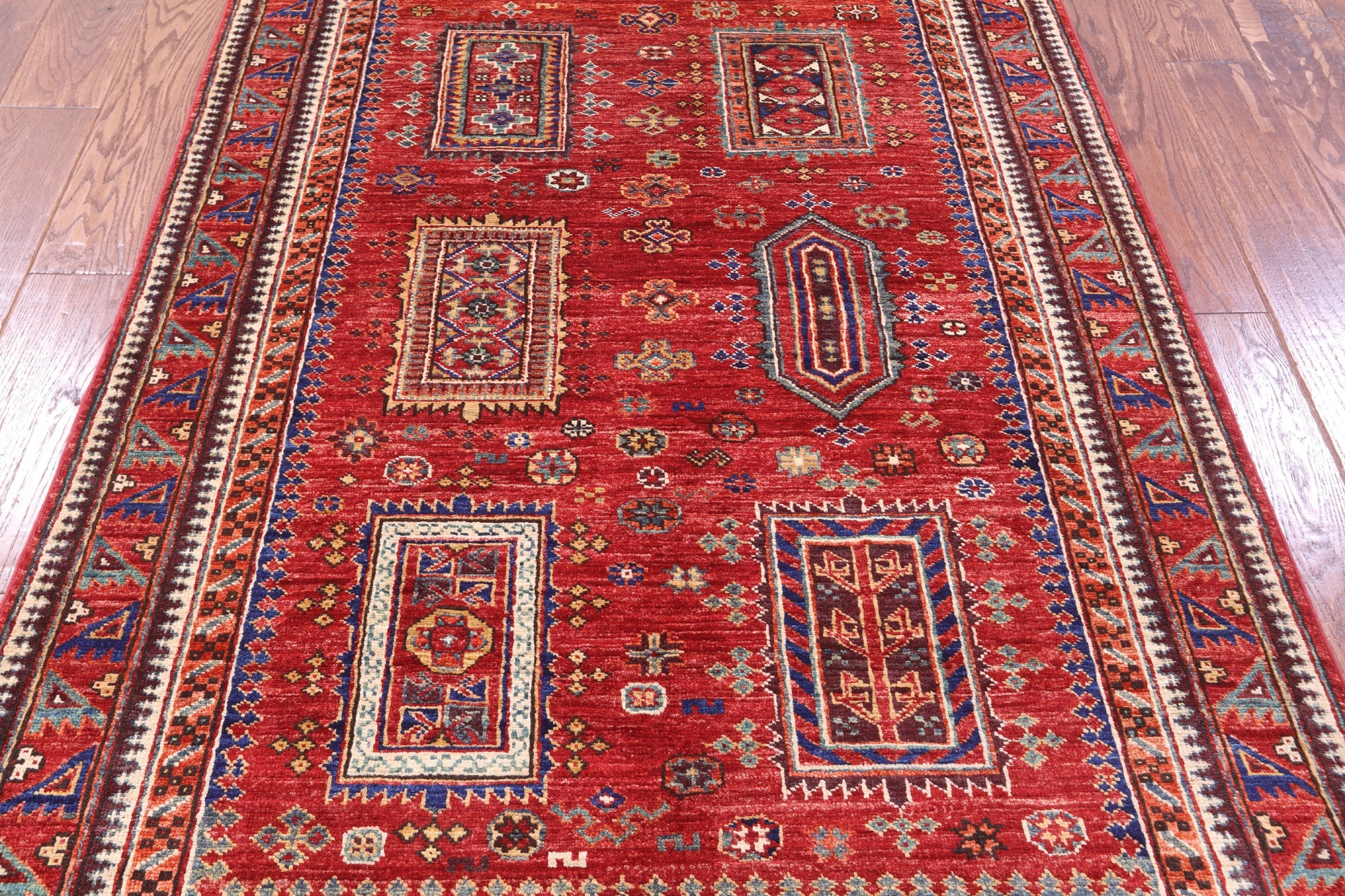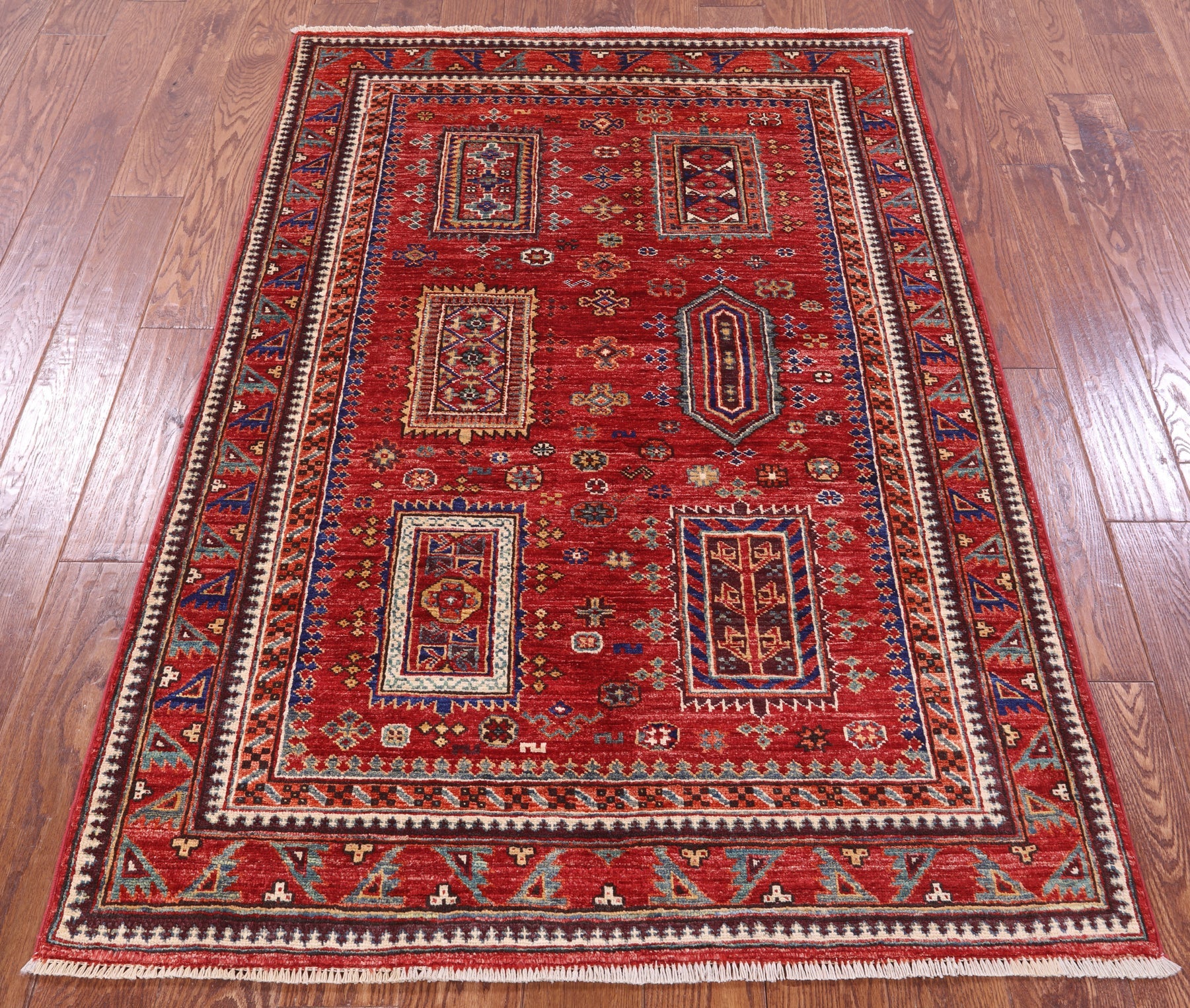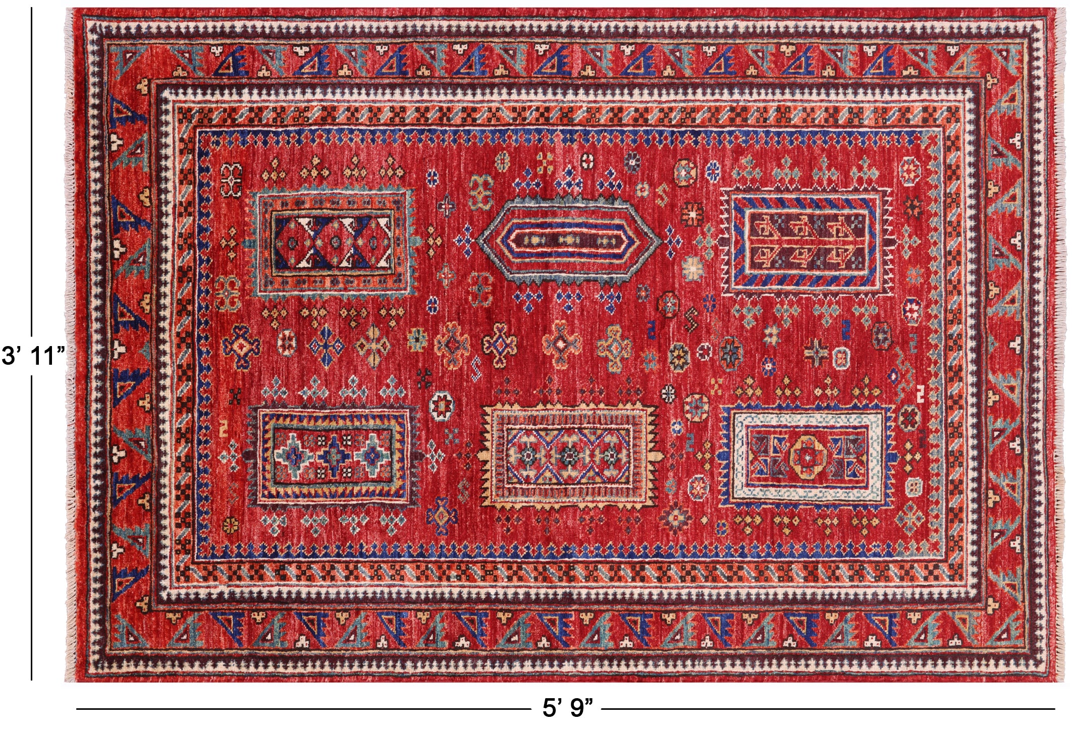 Red Tribal Fine Serapi Handmade Rug 3' 11" X 5' 9" - Q20574