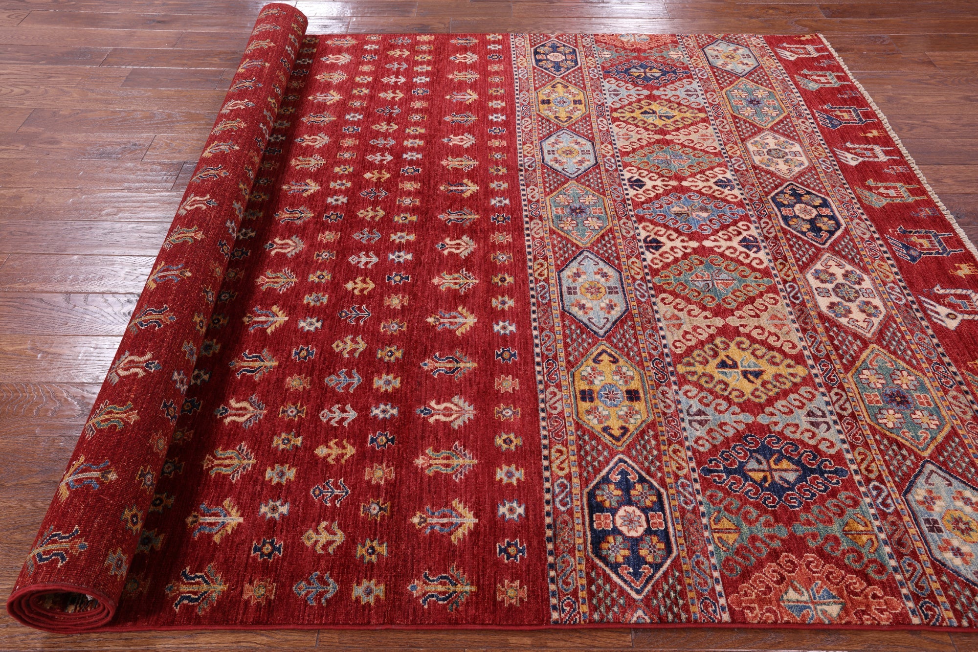 Red 6' 7" X 9' 9" Tribal Persian Gabbeh Handmade Rug - Q5359 is backordered and will ship as soon as it is back in stock.
