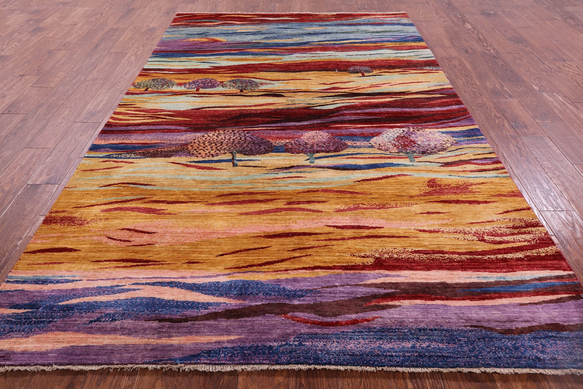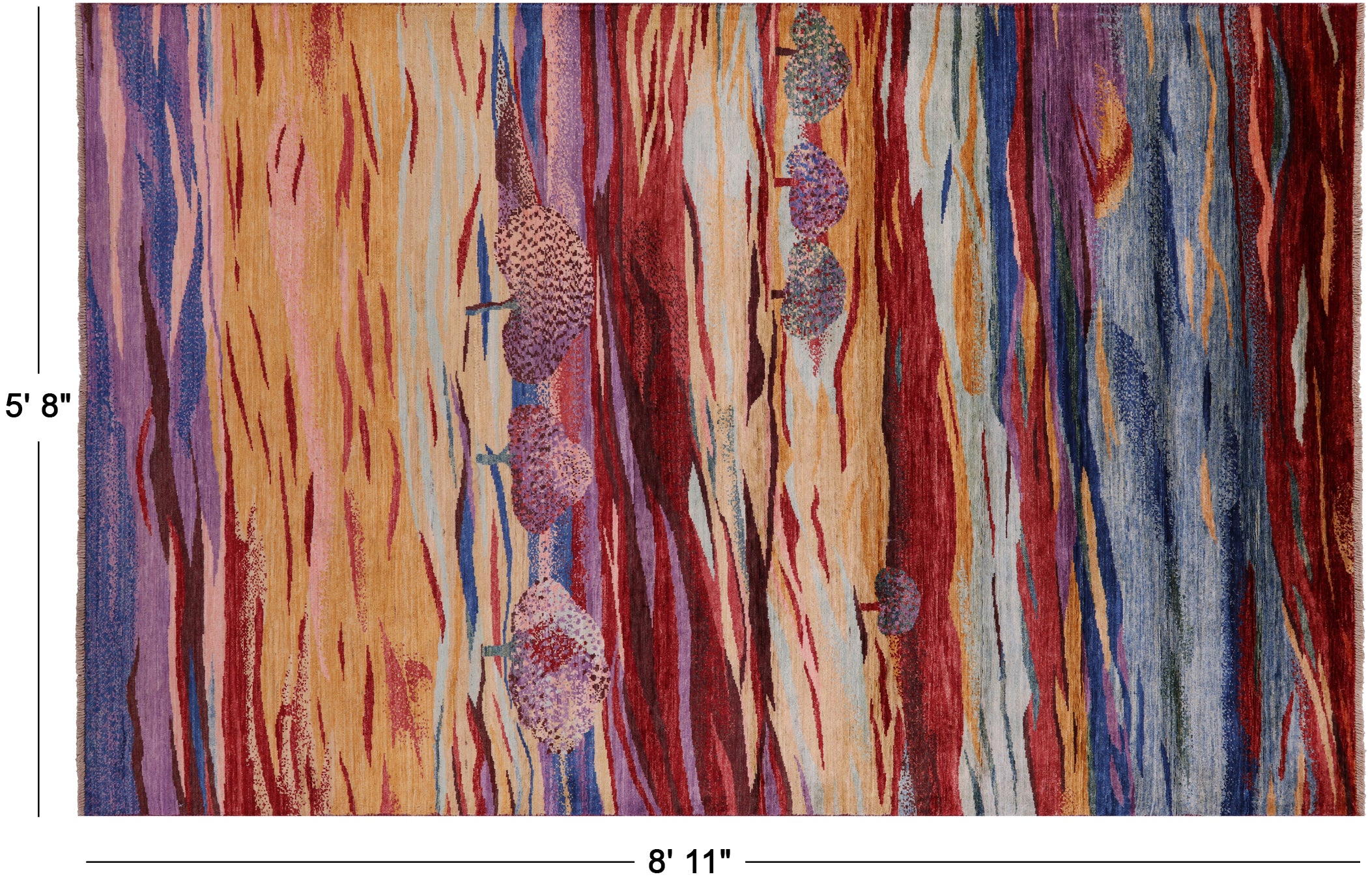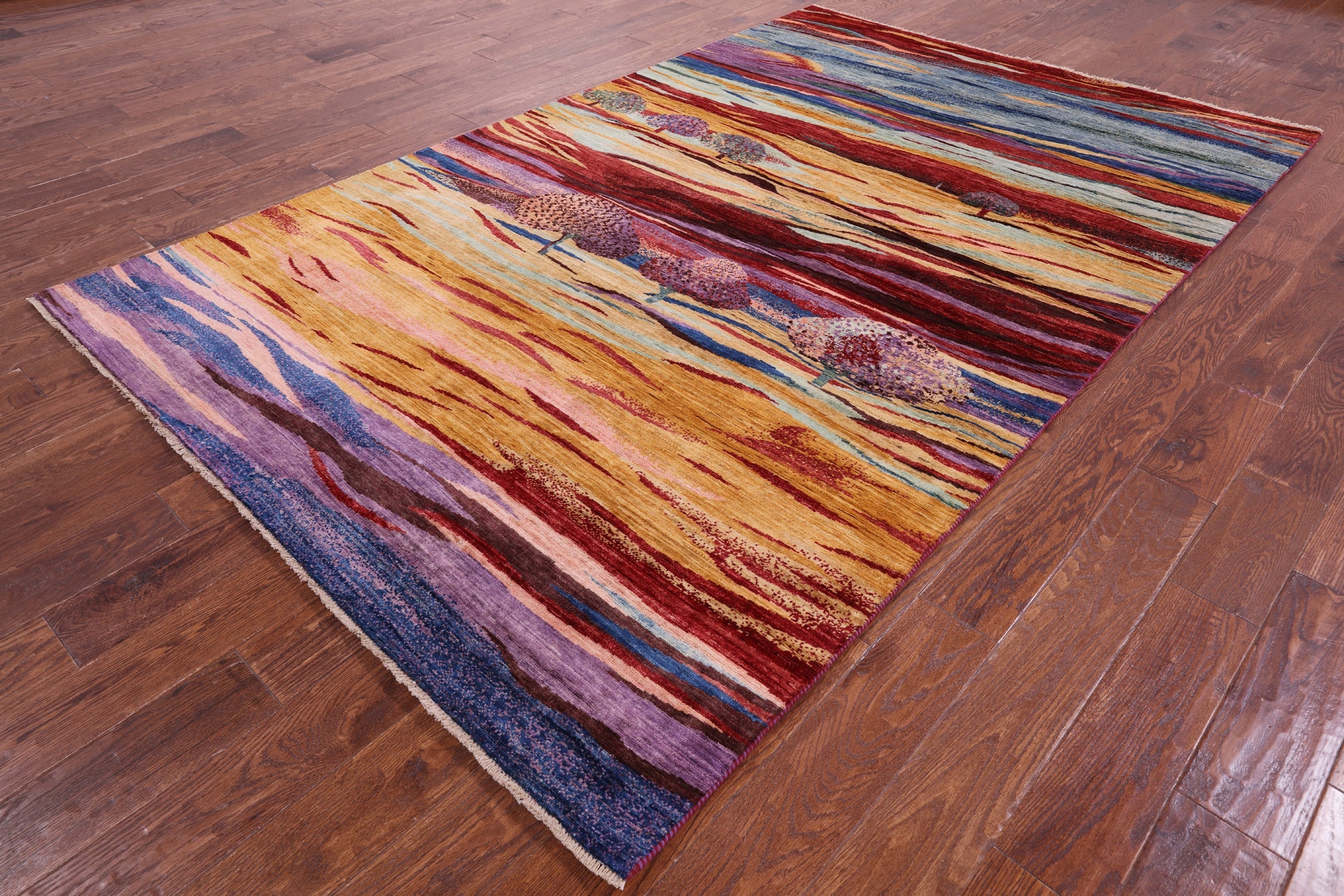5' 8" X 8' 11" Rolling Hills Design Handmade Tribal Persian Gabbeh Wool Rug - Q16812