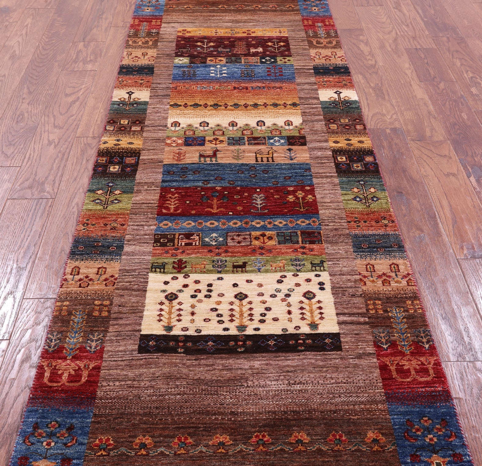Runner Hand-Knotted Persian Gabbeh Tribal Wool Rug 2' 9" X 9' 7" - Q16528 is backordered and will ship as soon as it is back in stock.