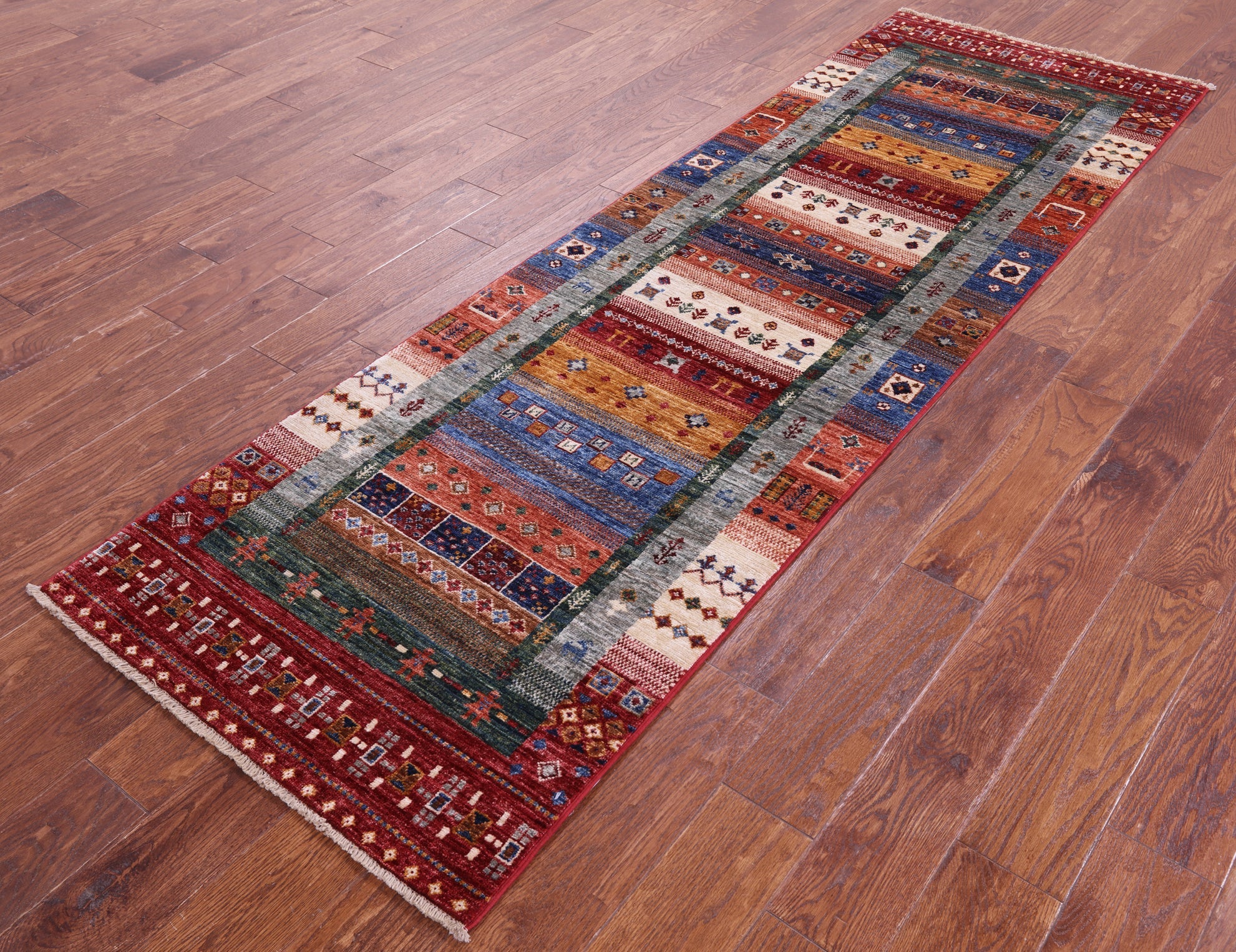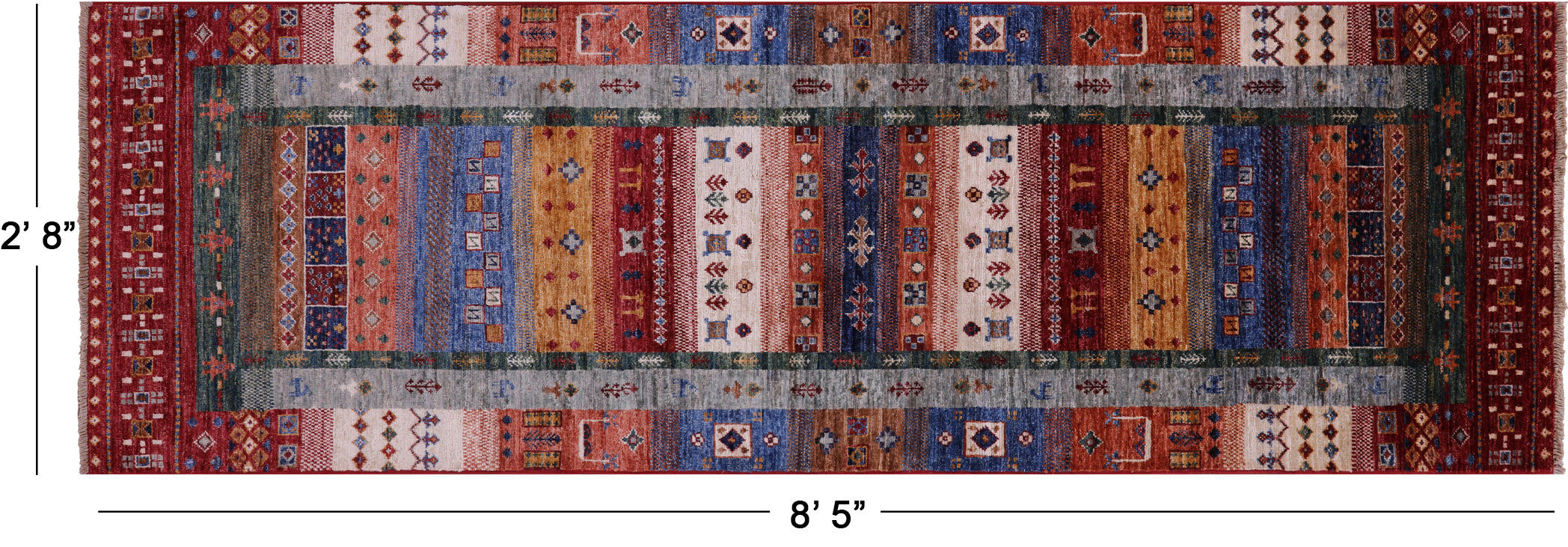2' 8" X 8' 5" Runner Tribal Persian Gabbeh Hand Knotted Wool Rug - Q18360 is backordered and will ship as soon as it is back in stock.