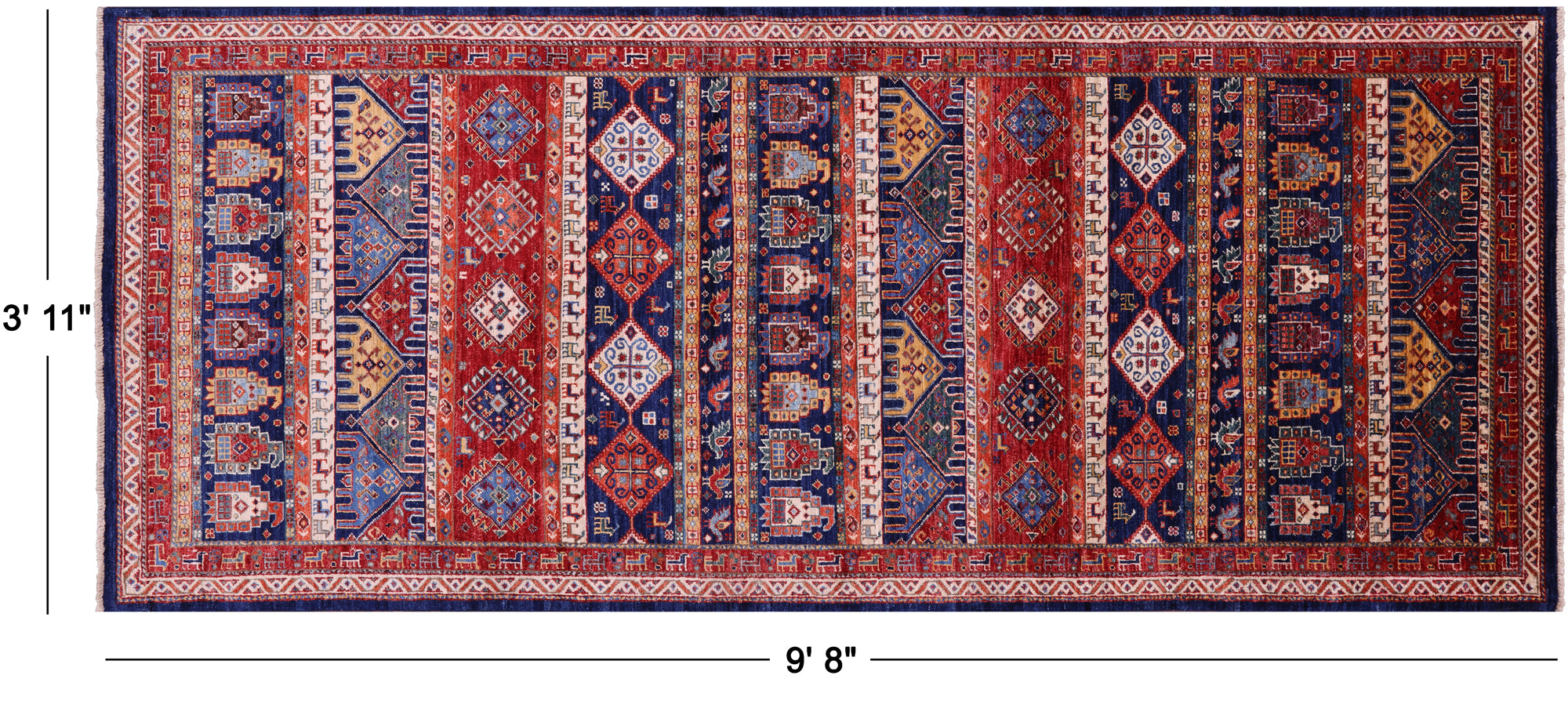 Runner Tribal Persian Gabbeh Hand Knotted Wool Rug 3' 11" X 9' 8" - Q22822