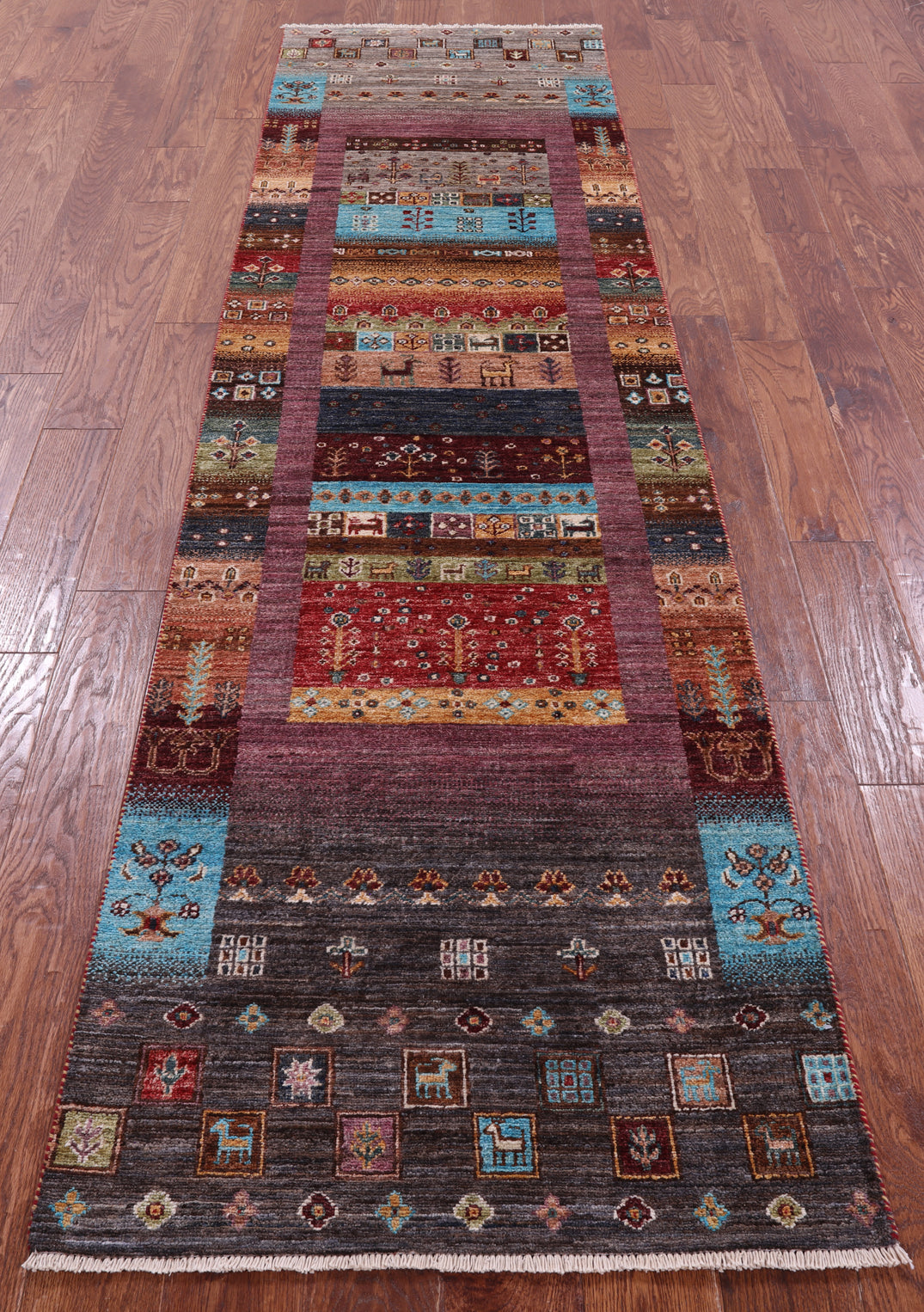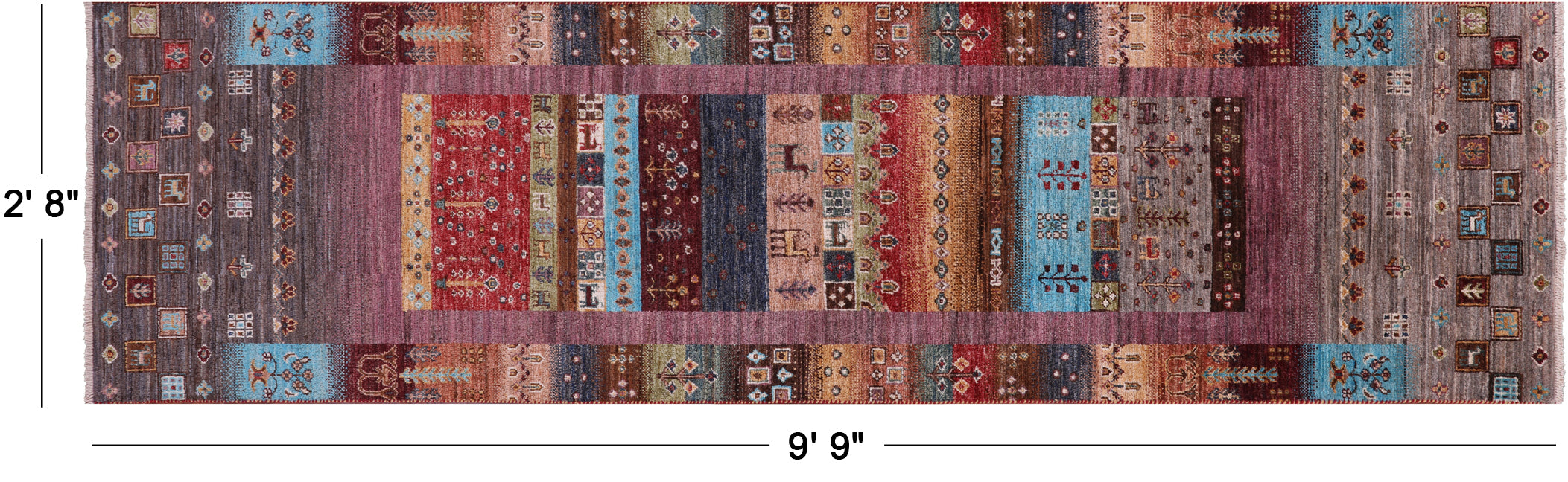 Runner Tribal Persian Gabbeh Handmade Wool Rug 2' 8" X 9' 9" - Q16850
