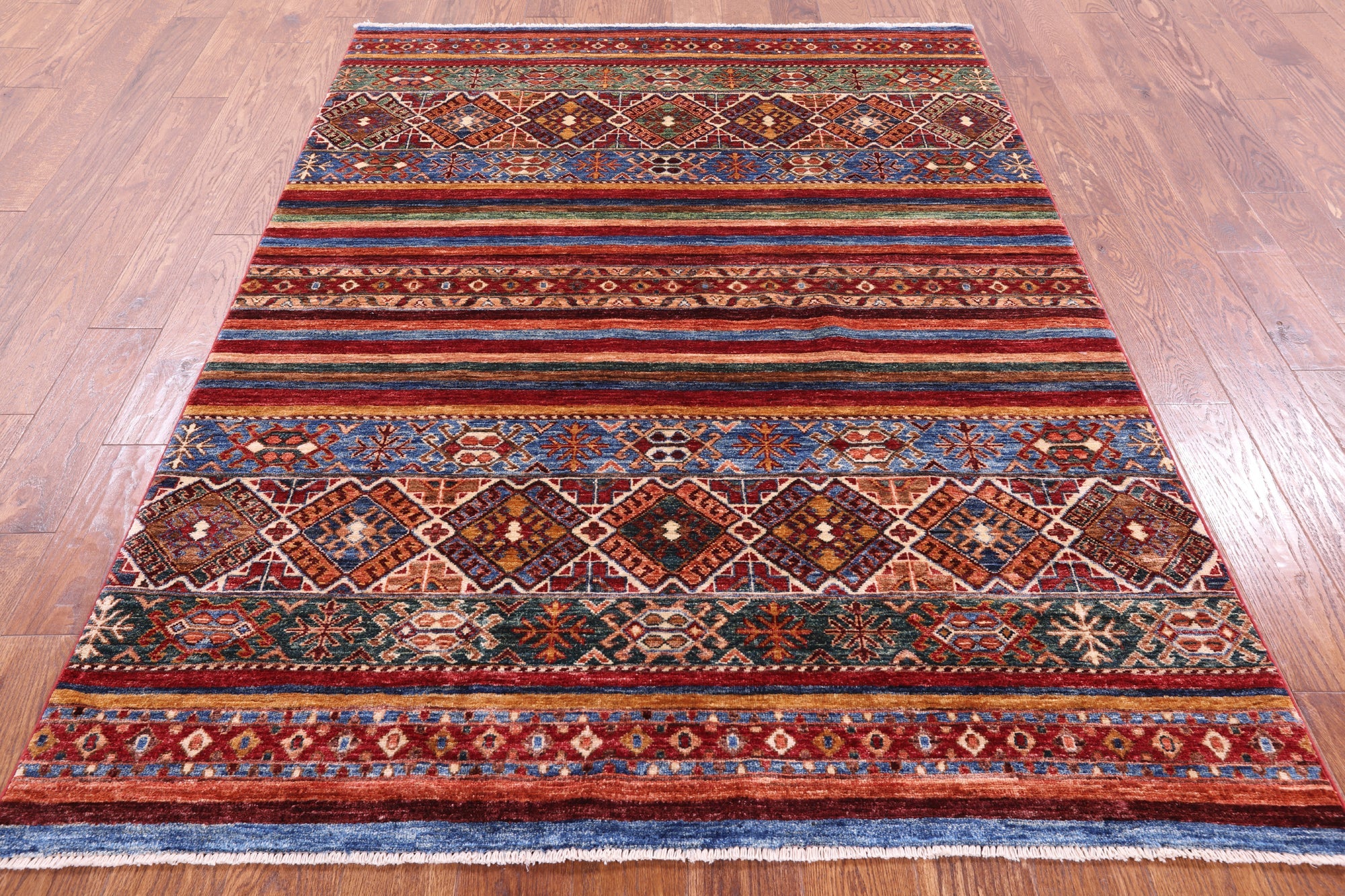 Super Kazak Khorjin Hand Knotted Rug 5' 1" X 6' 11" - Q5670 is backordered and will ship as soon as it is back in stock.