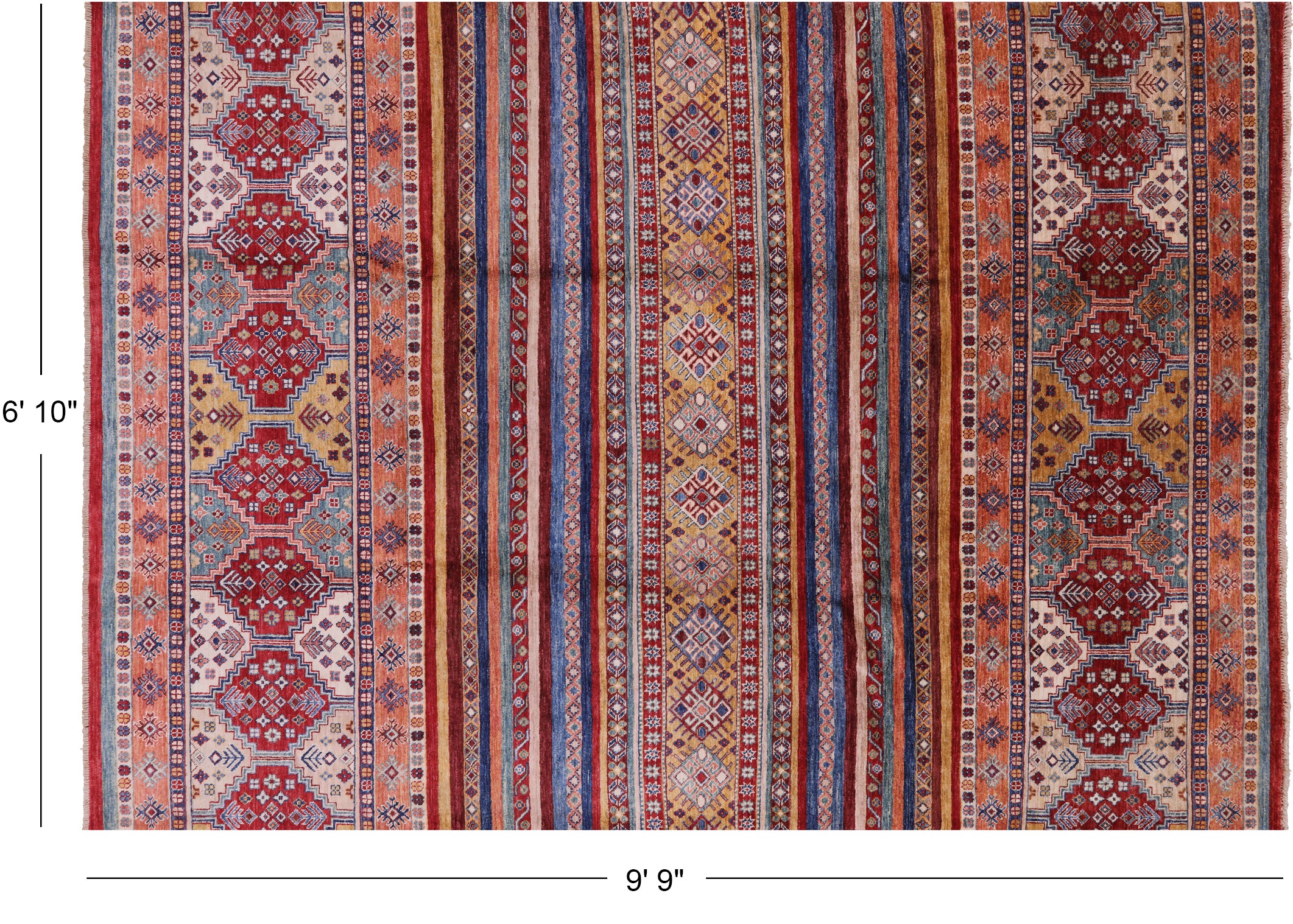6' 10" X 9' 9" Super Kazak Khorjin Handmade Wool Rug - P4568