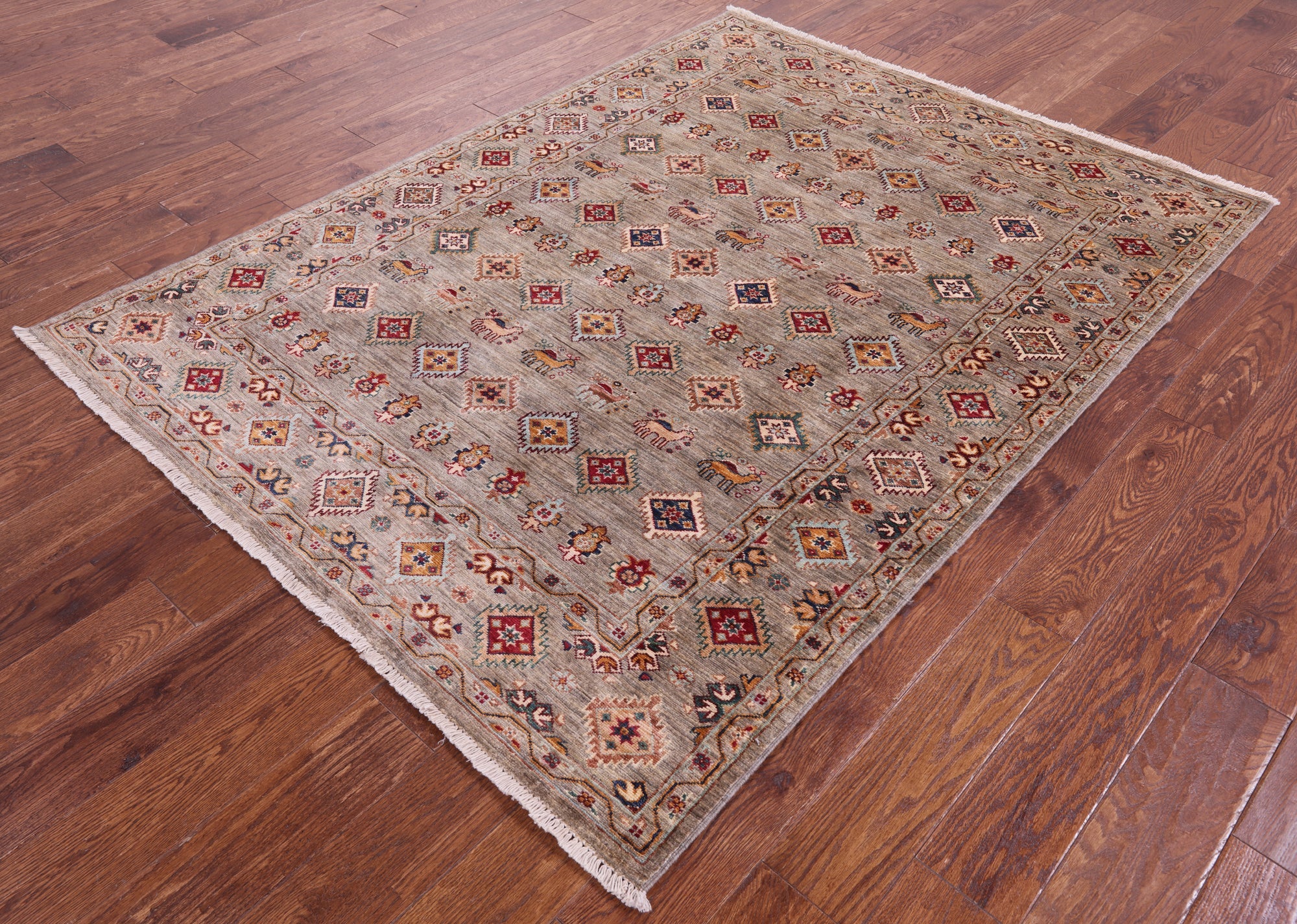 4' 10" X 6' 6" Tribal Persian Gabbeh Hand Knotted Rug - Q13955 is backordered and will ship as soon as it is back in stock.