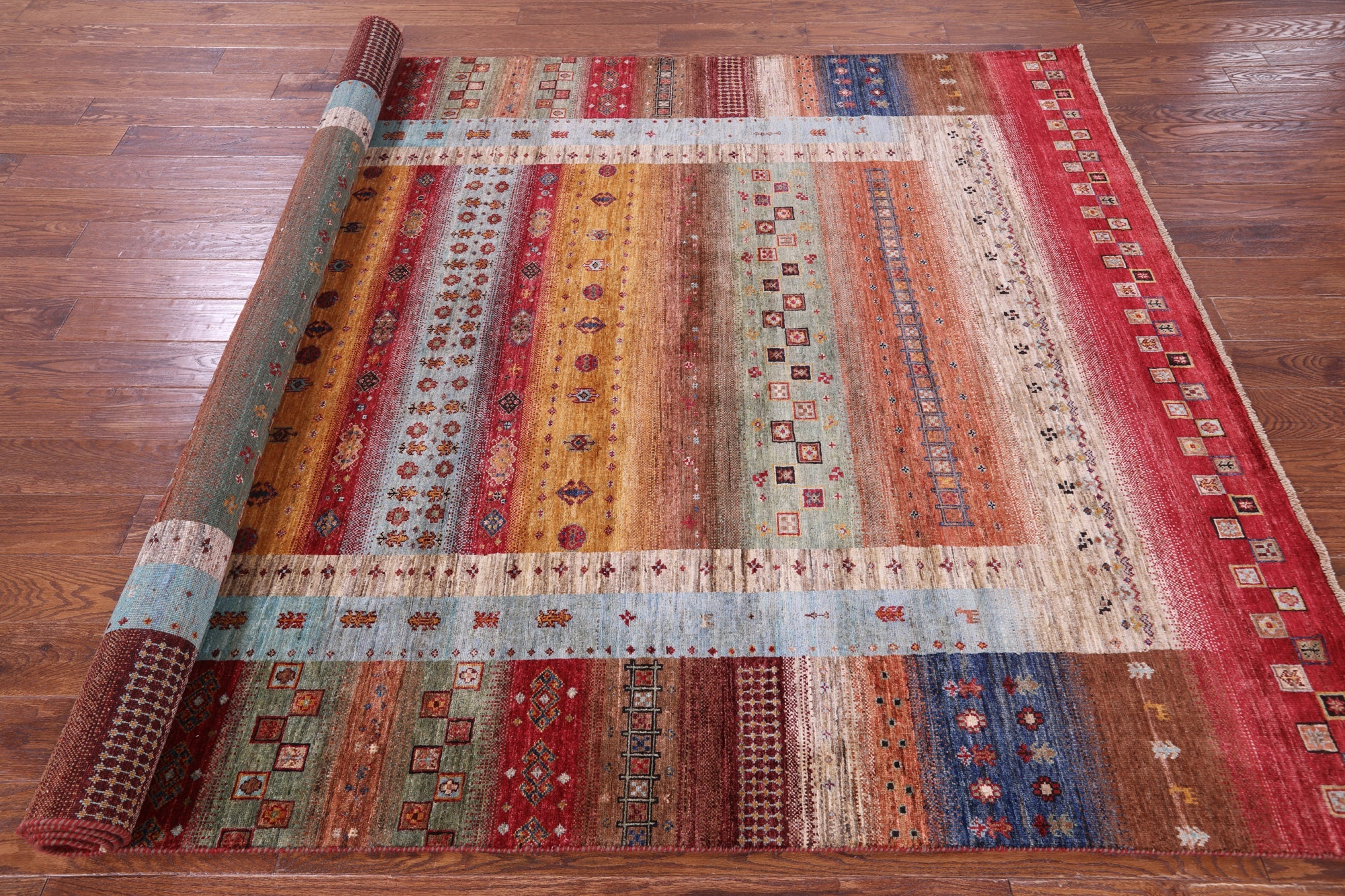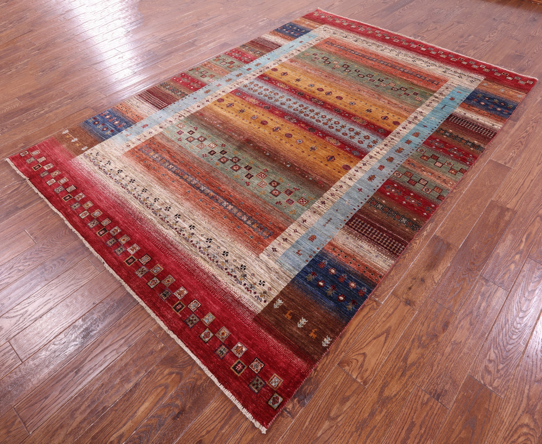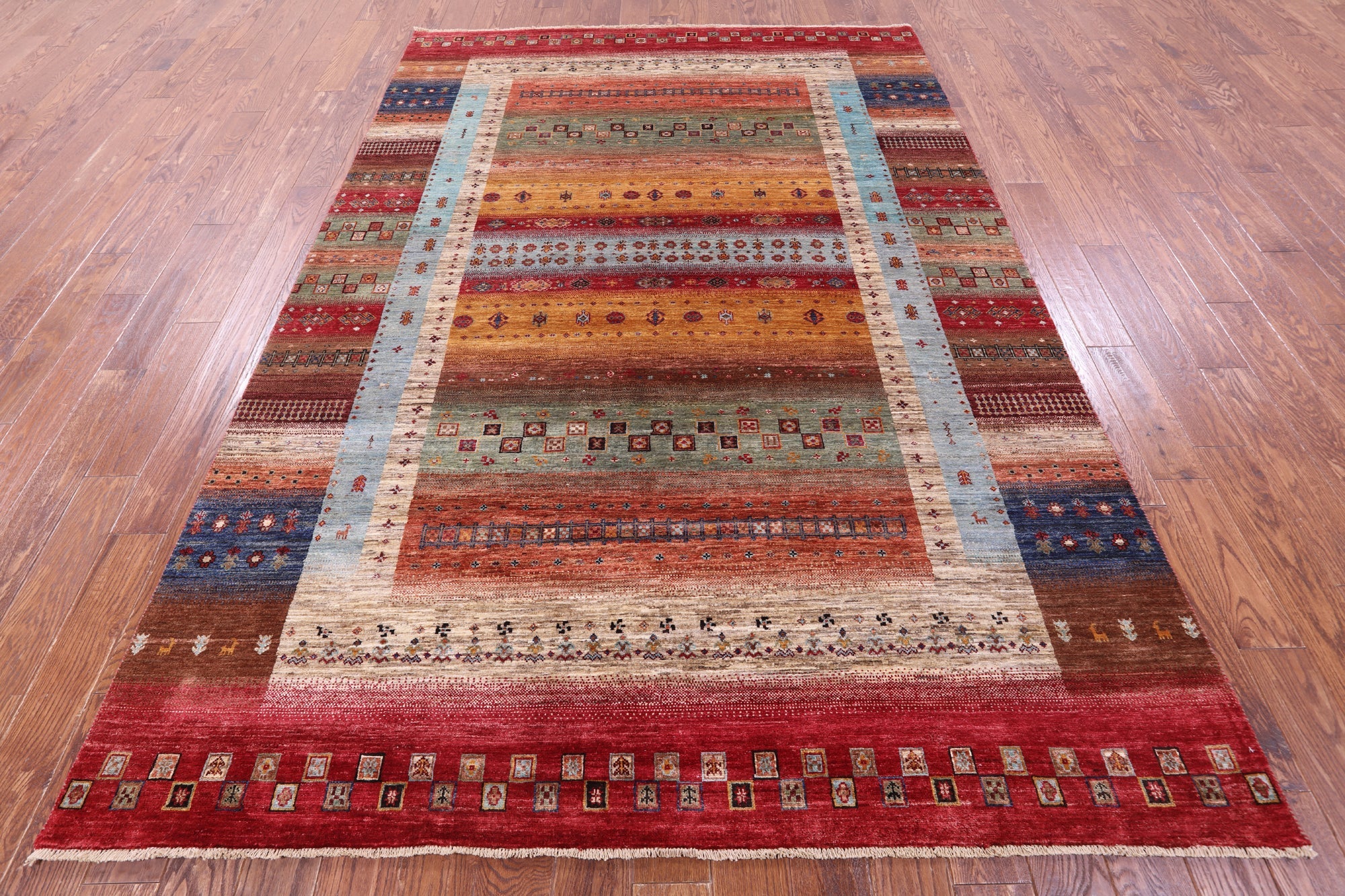 Gabbeh rugs are nothing short of simplistic and tribal, with designs consisting of primarily geometric shapes, animals, and plants. All done in a simplified way and based on the nomadic observation. Commonly brightly colored, these rugs are fun and beautiful and will add a warm touch to any home.