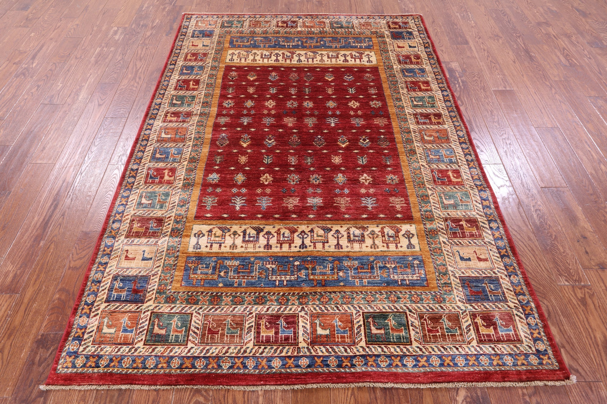 Gabbeh rugs are nothing short of simplistic and tribal, with designs consisting of primarily geometric shapes, animals, and plants. All done in a simplified way and based on the nomadic observation. Commonly brightly colored, these rugs are fun and beautiful and will add a warm touch to any home.
