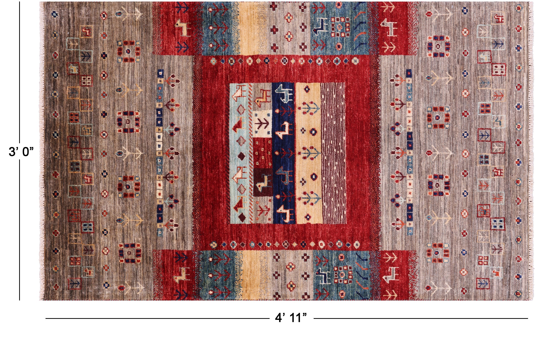 3' 0" X 4' 11" Tribal Persian Gabbeh Hand Knotted Rug - Q20450