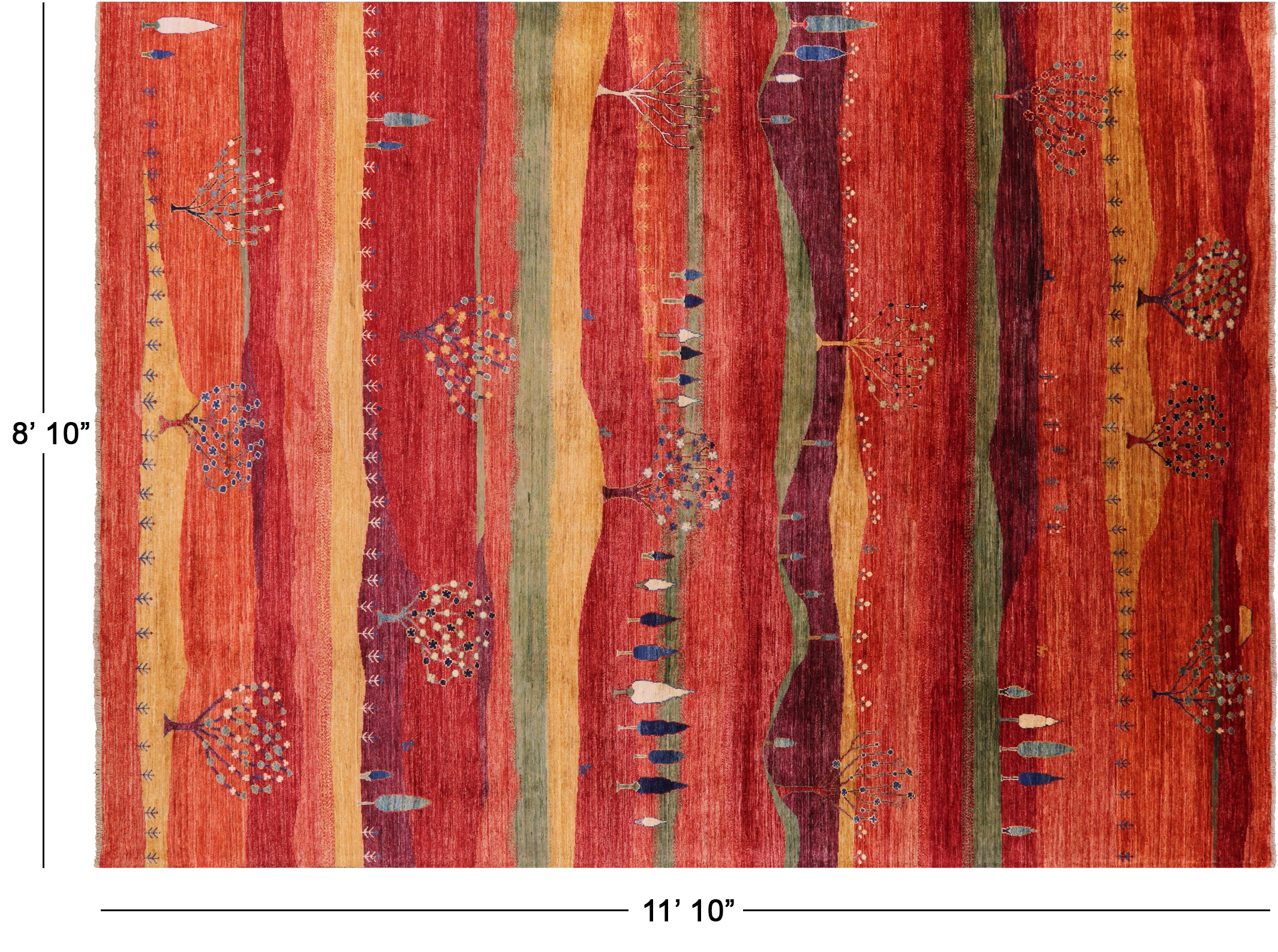 Tribal Persian Gabbeh Hand Knotted Rug 8' 10" X 11' 10" - Q20480
