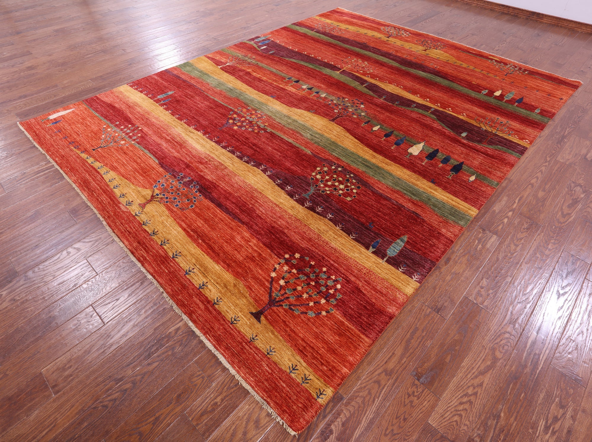 Gabbeh rugs are nothing short of simplistic and tribal, with designs consisting of primarily geometric shapes, animals, and plants. All done in a simplified way and based on the nomadic observation. Commonly brightly colored, these rugs are fun and beautiful and will add a warm touch to any home.