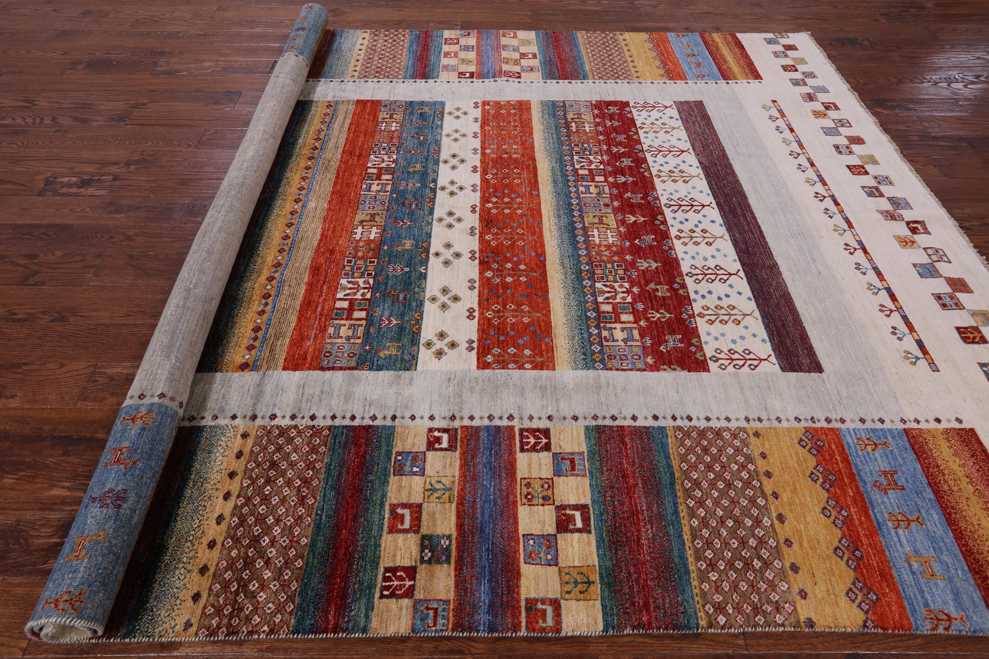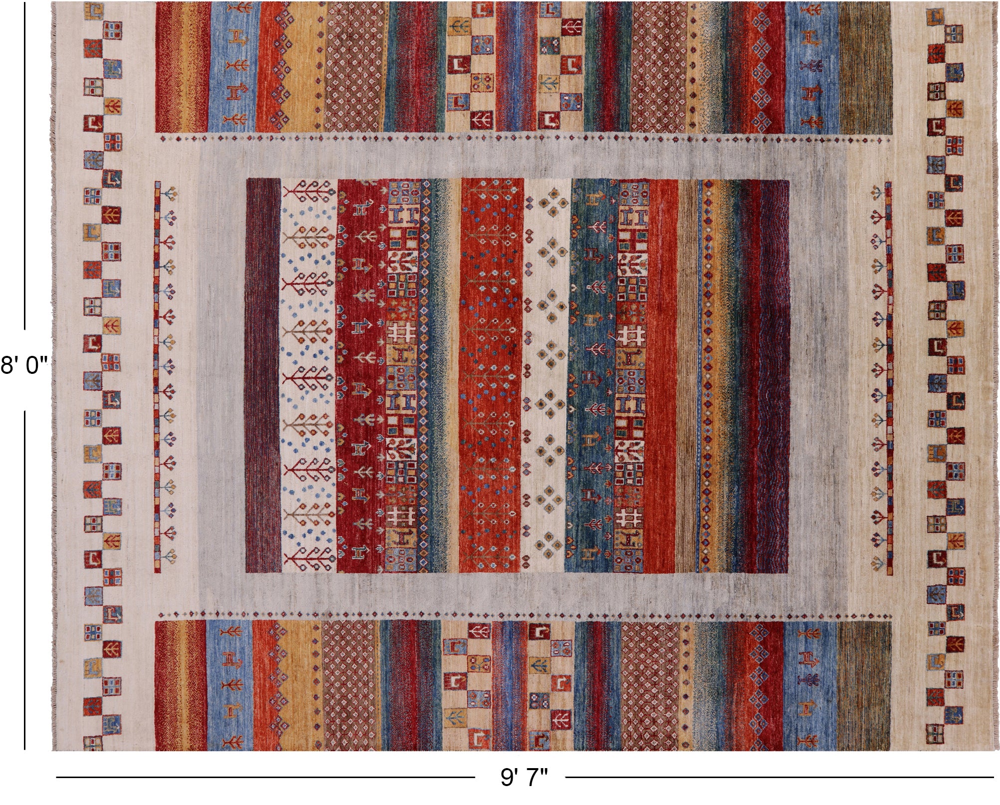Tribal Persian Gabbeh Hand-Knotted Rug 8' 0" X 9' 7" - Q9612