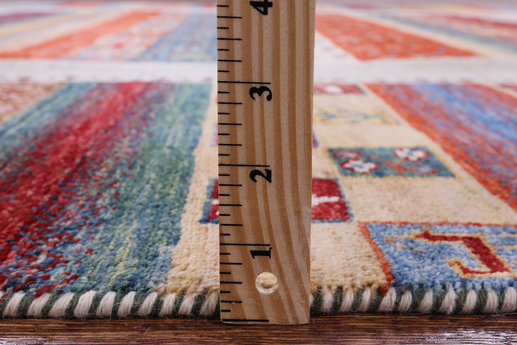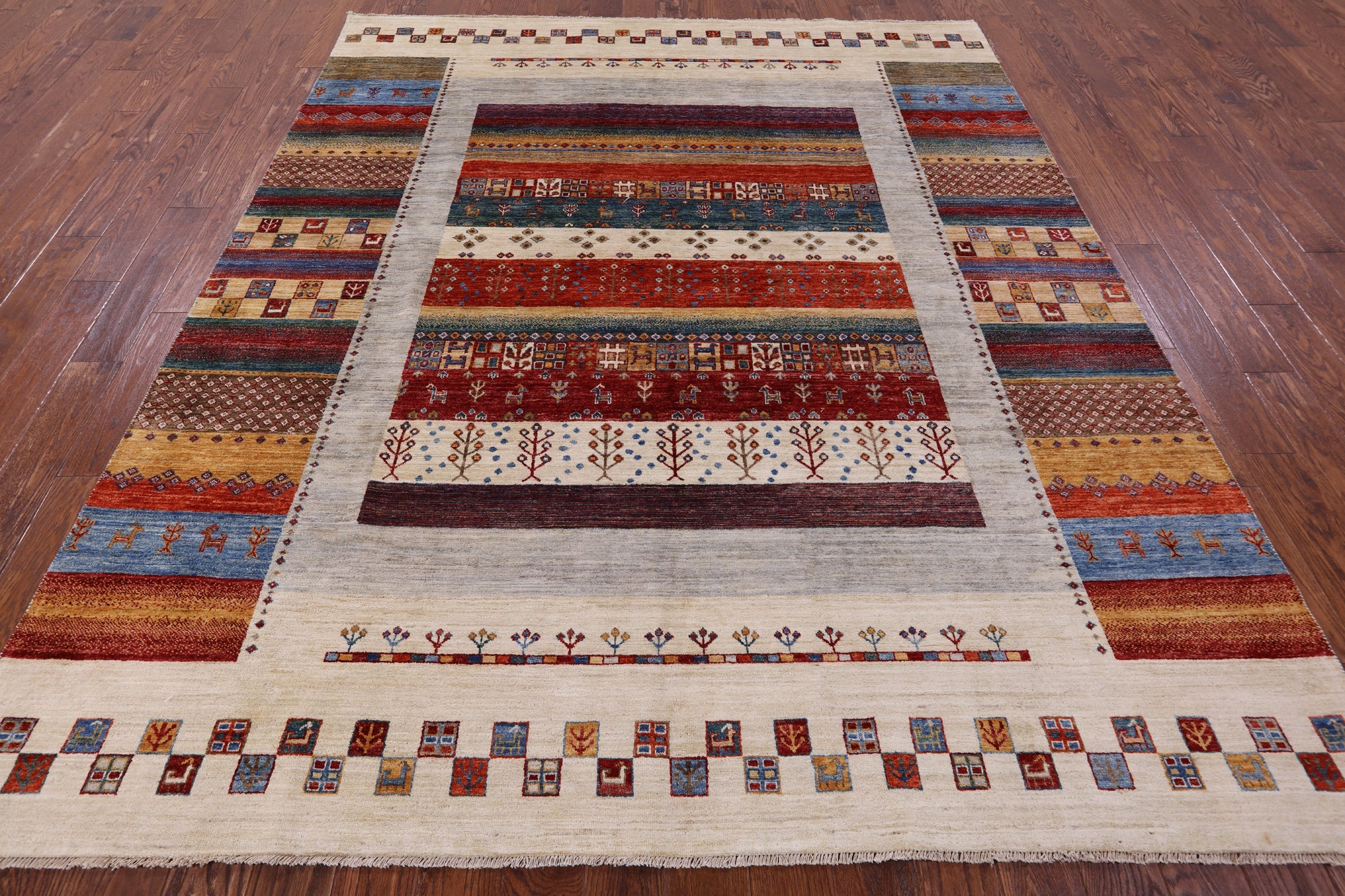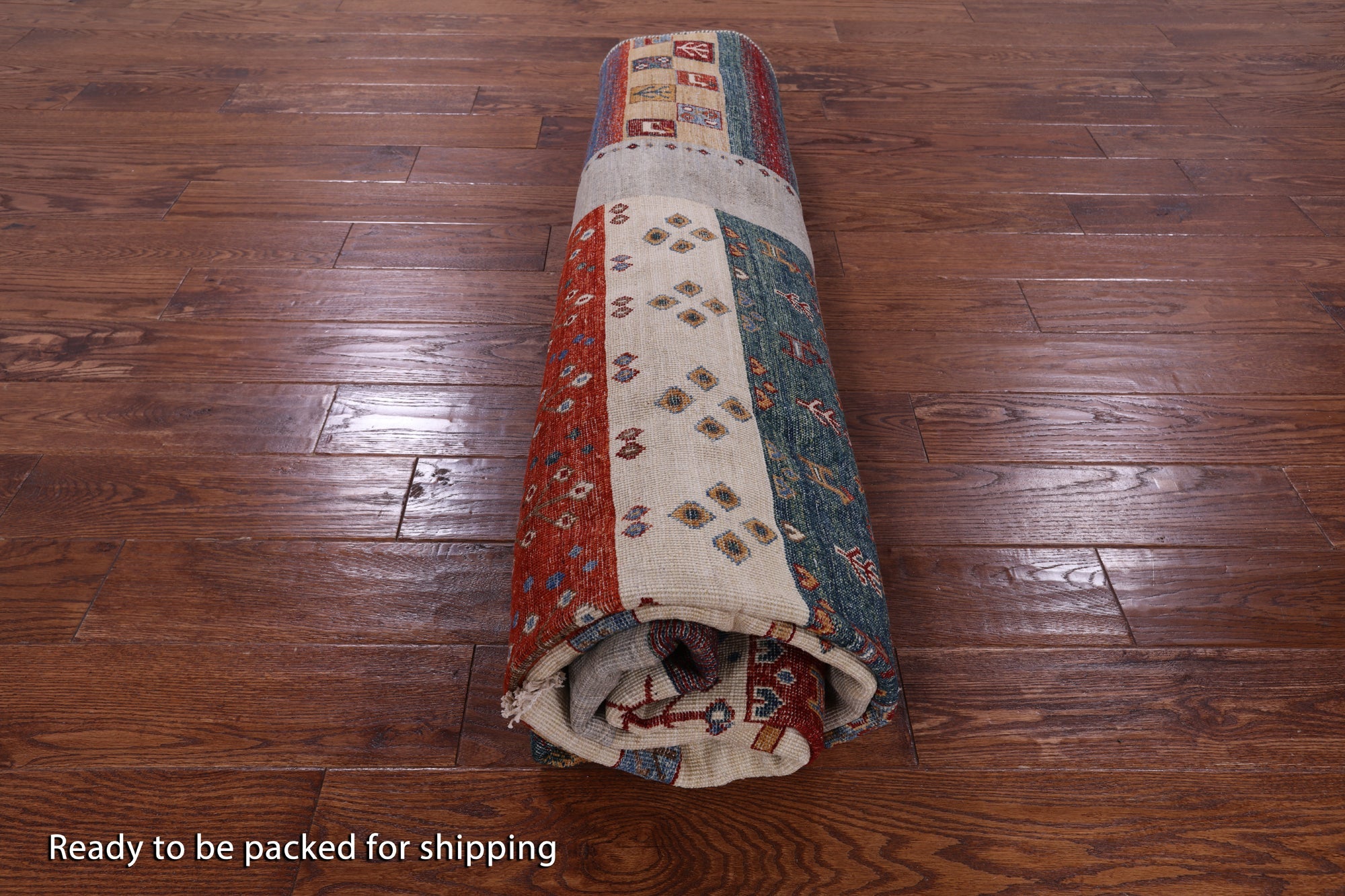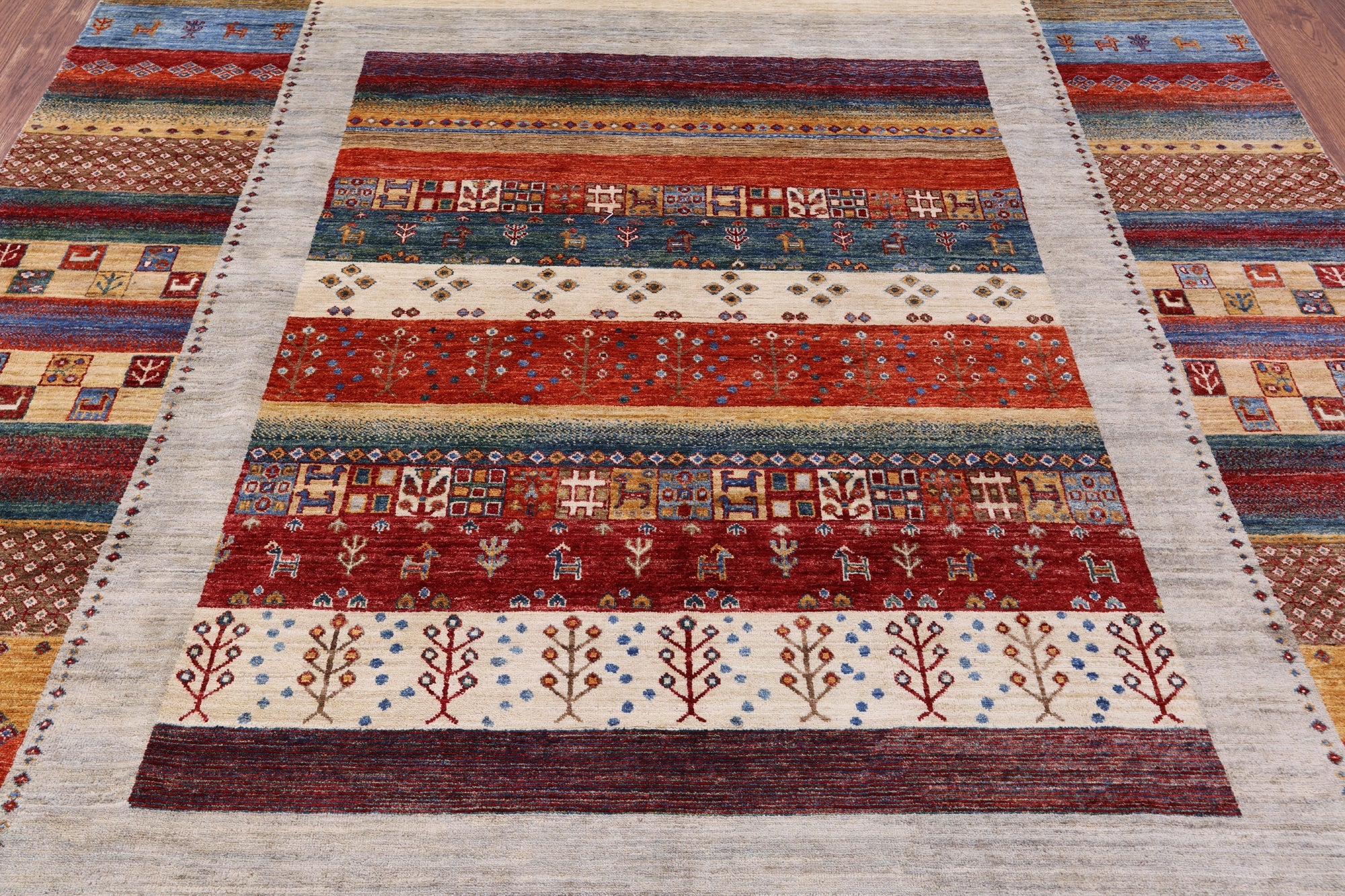Tribal Persian Gabbeh Hand-Knotted Rug 8' 0" X 9' 7" - Q9612 is backordered and will ship as soon as it is back in stock.