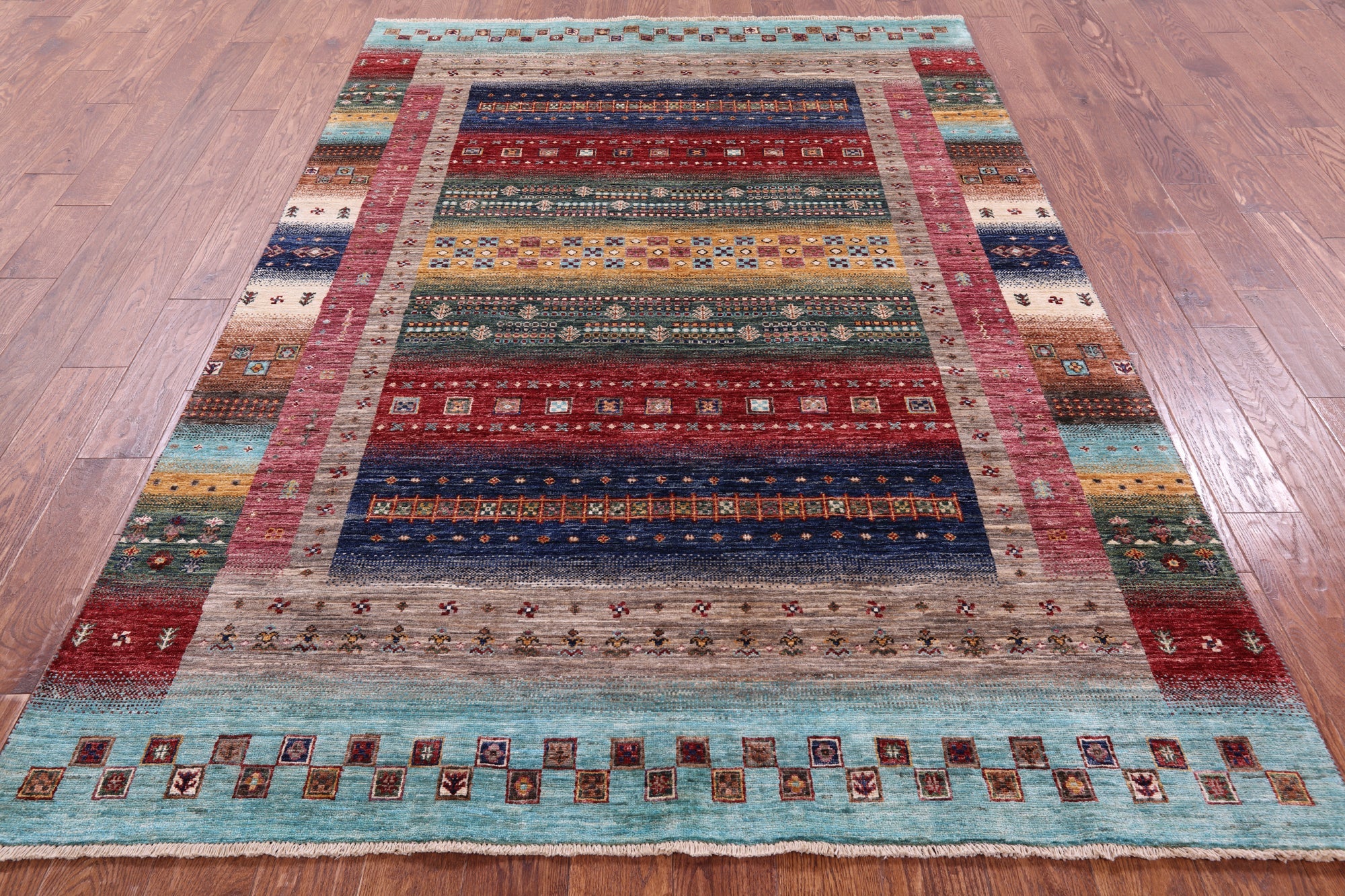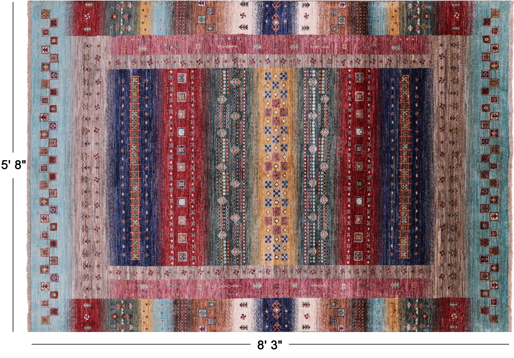5' 8" X 8' 3" Tribal Persian Gabbeh Hand Knotted Wool Rug - Q16270