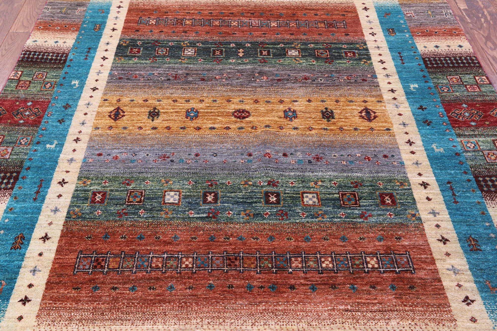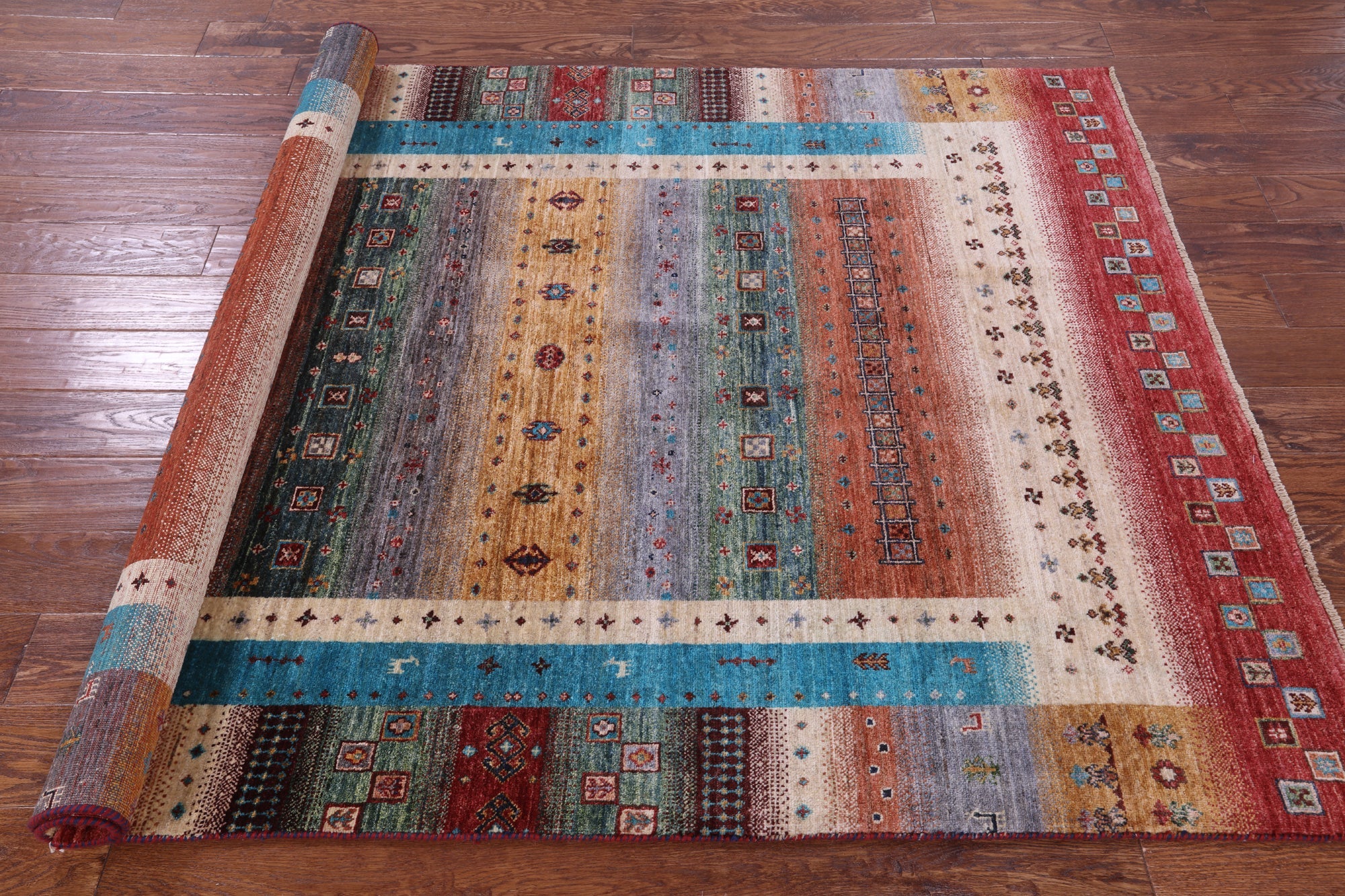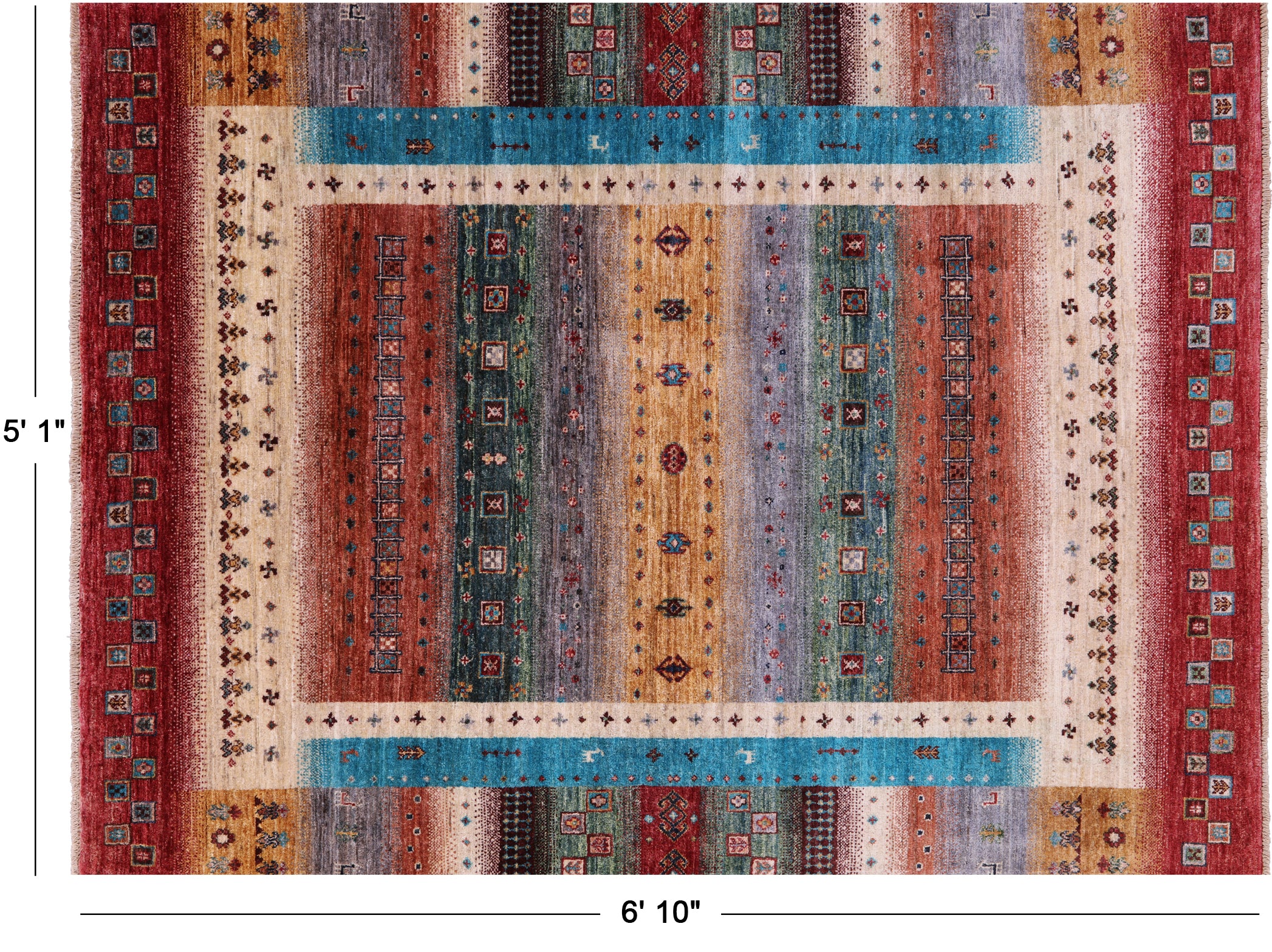 Tribal Persian Gabbeh Hand Knotted Wool Rug 5' 1" X 6' 10" - Q16520