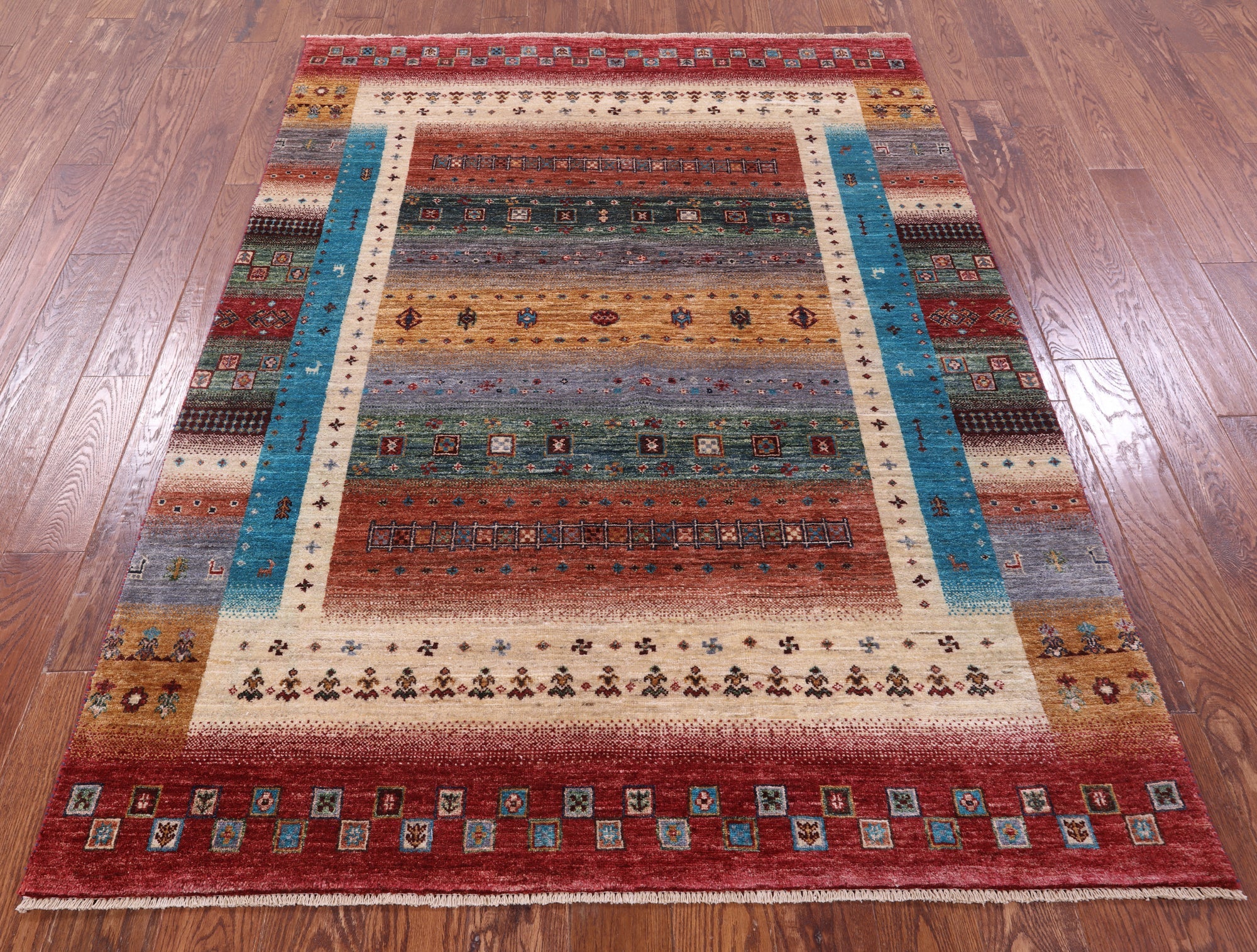 Gabbeh rugs are nothing short of simplistic and tribal, with designs consisting of primarily geometric shapes, animals, and plants. All done in a simplified way and based on the nomadic observation. Commonly brightly colored, these rugs are fun and beautiful and will add a warm touch to any home.